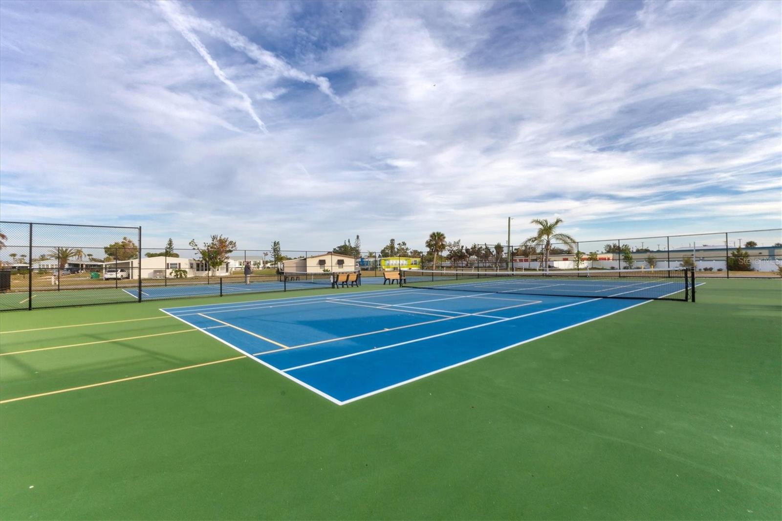 Exquisite Detail. Exceptional Care. An Active Lifestyle. Effortless Florida Living. Great rental history. Pride of ownership doesn’t begin to describe this meticulously maintained 2-bedroom home with a versatile bonus room — a residence where thoughtful updates, quality craftsmanship, and everyday comfort come together beautifully. Step inside and immediately appreciate the inviting living room, highlighted by cathedral ceilings, two domed skylights that fill the space with natural light, stylish shiplap walls, a new ceiling fan, and newly-installed LVT flooring. The nearby kitchen offers ample cabinetry and generous counter space, making it both highly functional and perfect for gathering with friends and family. Two spacious bedrooms provide peaceful retreats, while the bonus room offers ideal flexibility for visiting guests, hobbies, or a cozy den. The interior laundry room with a built-in desk offers practical convenience—ideal for managing daily tasks or working from home. The care invested in this home is evident at every turn. Major improvements completed in 2014 include the roof, A/C unit, window and door casings, electrical panel, insulated side lanai, and three large storage sheds — all with electricity (yes, three!). In 2020, additional peace-of-mind upgrades were completed, including storm shutters, a leaf-guard gutter system, new hurricane straps on the carport and beneath the home, an updated vapor barrier, an enclosed foundation, and a fabulous outdoor shower and dressing area — perfect after a day at the beach. Recent updates continue the story of meticulous stewardship: 2023 — New water heater, 2024 — New interior 6-panel doors and all-new LVT flooring throughout the main living areas, 2025 — Fresh paint in the primary bedroom, plus a new pantry closet. Abundant storage throughout the home is a rare and welcome bonus. Located in a desirable 55+ community where you own your own land, this neighborhood offers far more than amenities — it offers connection. Residents enjoy a welcoming clubhouse and pool (located at the Edgewater Club), shuffleboard, tennis, bocce ball, and a busy social calendar that keeps life interesting year-round. From water aerobics and pool exercise classes to community dinners and Texas Hold ’Em tournaments, from bocce leagues and mahjong to Bingo nights, comedy shows, poker runs, and friendly tennis matches — there is always something happening and someone to enjoy it with. Whether you prefer staying active, socializing, or simply relaxing poolside, this community makes it easy to live fully. And beyond the gates? The lifestyle continues. Just minutes away, the serene Gulf beaches of Manasota Key invite you to enjoy soft sands and breathtaking sunsets over turquoise waters. Historic Dearborn Street features farmers’ markets, lively festivals, charming boutiques, unique eateries, and a vibrant artistic atmosphere that makes Englewood special. This is more than a home — it’s a carefully curated coastal retreat paired with an engaging, active lifestyle. Come experience it for yourself. You will not be disappointed.
