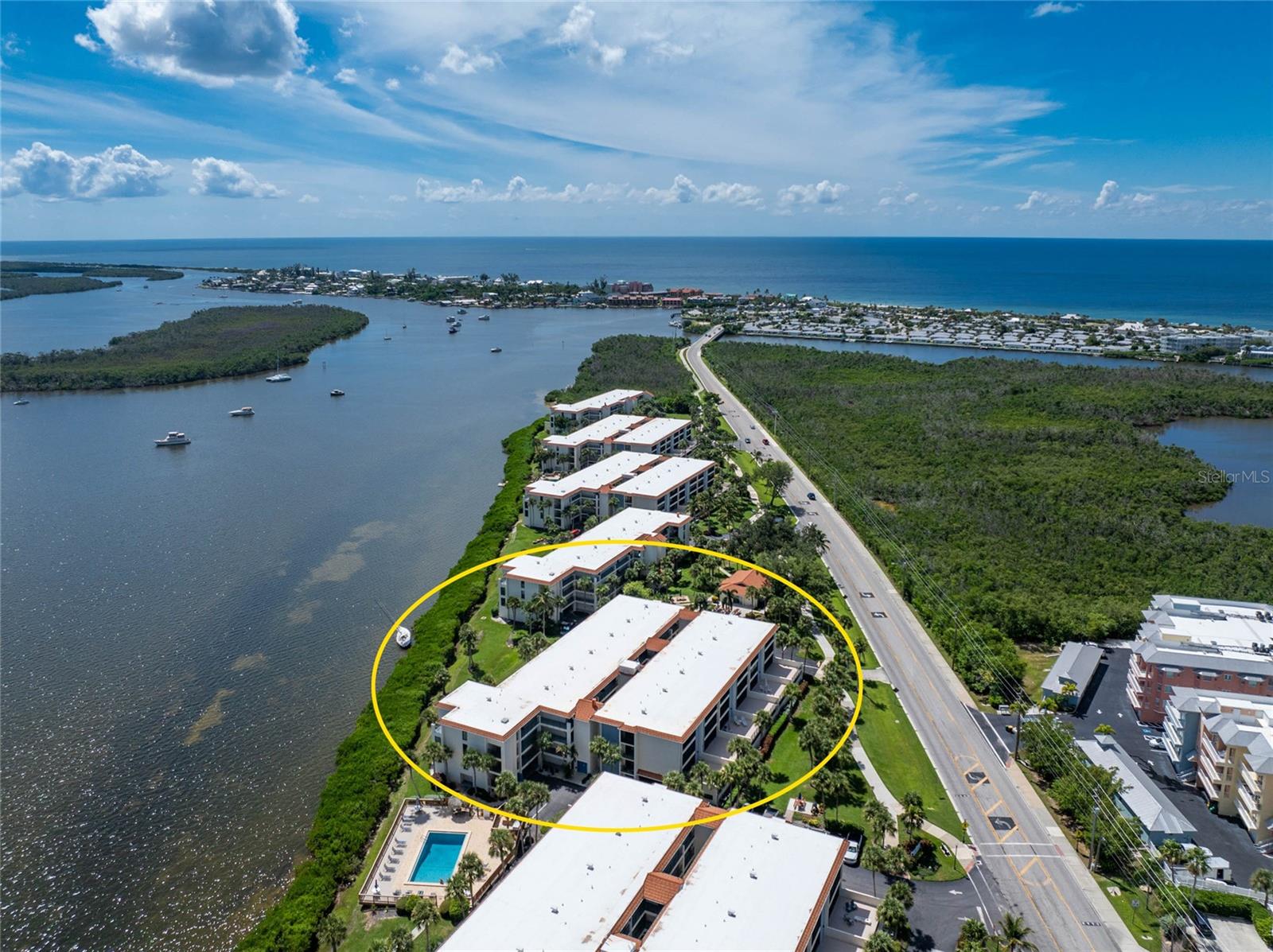 BEAUTIFULLY FURNISHED 2/2 WATERFRONT CONDO with HUGE OPEN SUNDECK! Secluded with privacy wall gives great views of Lemon Bay and the Intercoastal waterway. Sundeck is 19' long! Great for relaxing or entertaining. Watch dolphins, manatees and boaters go by. Waking up to a sunrise is a great way to start the day! Beautiful French Caribbean solid wood furniture makes this condo very comfortable - awaiting for you to make it your own! Great condo for a seasonal rental, second home or your forever home! New Air Conditioner! Association has passed the State Mandated Milestone Structural Inspection with No Repairs Needed and established required reserves. Condo amenities include elevator, covered garage parking, bicycle/kayak/SUP storage, storage unit for beach or fishing supplies, guest parking, two pools with a heat/cool system making them refreshing all year long, small dock for fishing, gas grill areas with one conveniently located outside the building, a kayak area to launch onsite, Clubhouse/Library with fun social activities and an on-site Rental Office available. Enjoy a short 1/2 mile walk from your condo home on a well maintained sidewalk to beautiful Englewood Beach with many restaurants on popular Manasota Key with two offering free shuttles from the condo! For boaters, there are 60 privately owned docks in the Sandpiper Key Yacht Club just across the road that provides direct access to Lemon Bay and the Intracoastal Waterway and even the Gulf. Normally there is a dock or two available to purchase. Come take a look!