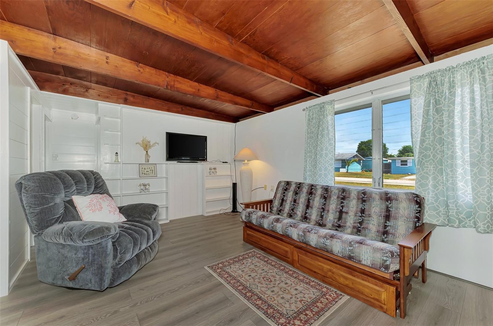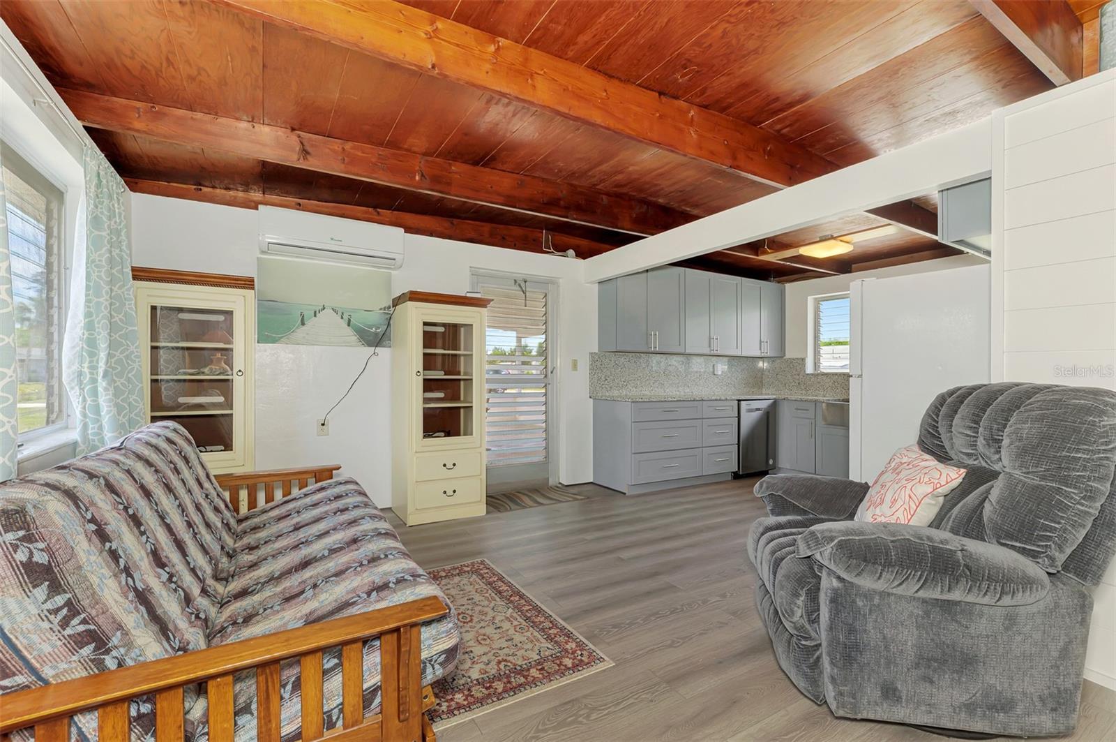 Freshly remodeled and move-in ready, this charming 1961 block home in Grove City offers the perfect blend of classic character and modern updates. This 2-bedroom, 1-bath cottage-style home has been thoughtfully renovated to create a warm, coastal-inspired living space. The updated kitchen features new cabinetry, granite countertops, and stainless steel appliances. Inside, you’ll love the shiplap walls, original wood ceilings, and built-in shelving in the living area, adding both charm and functionality while enhancing the cozy coastal feel. Enjoy extended living space with the expansive screened lanai—perfect for relaxing or entertaining year-round. Additional upgrades include a new mini-split A/C system and a new electrical panel for peace of mind. Ideal as a seasonal retreat or full-time residence, this home is conveniently located near Gulf beaches, golf courses, shopping, dining, and all that Southwest Florida has to enjoy!