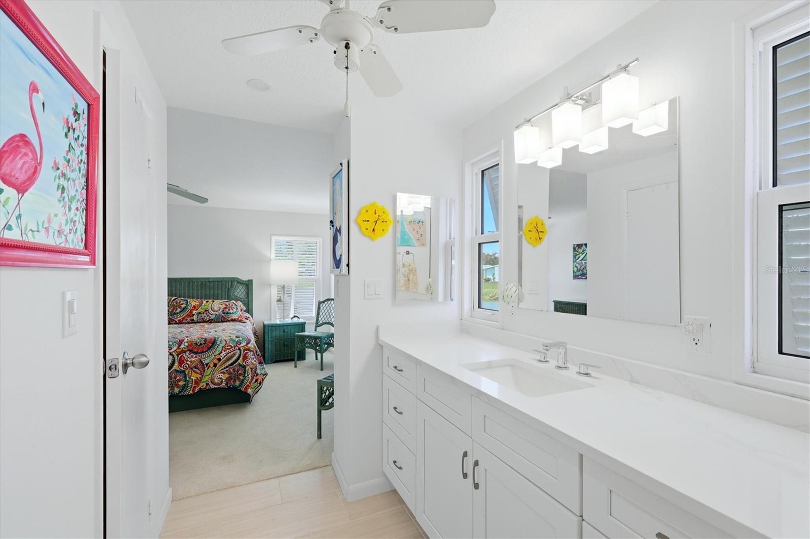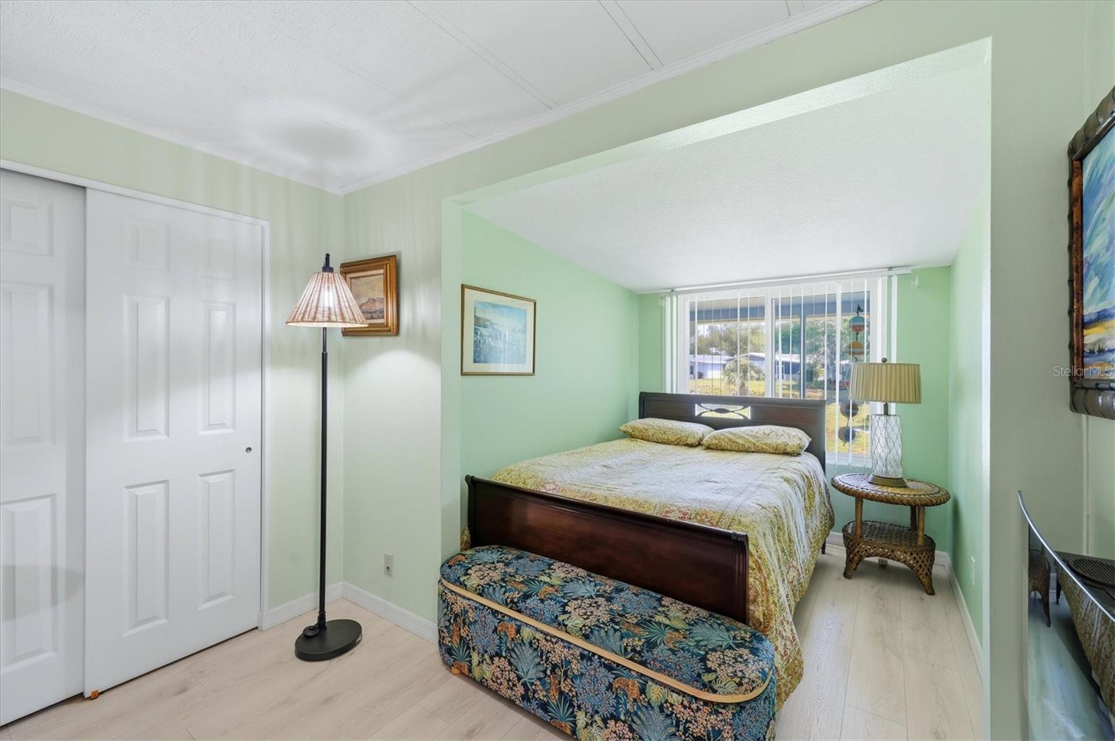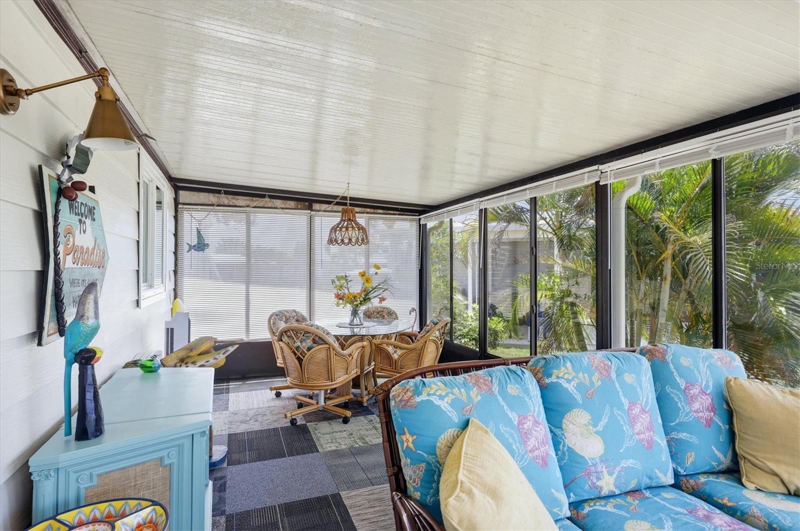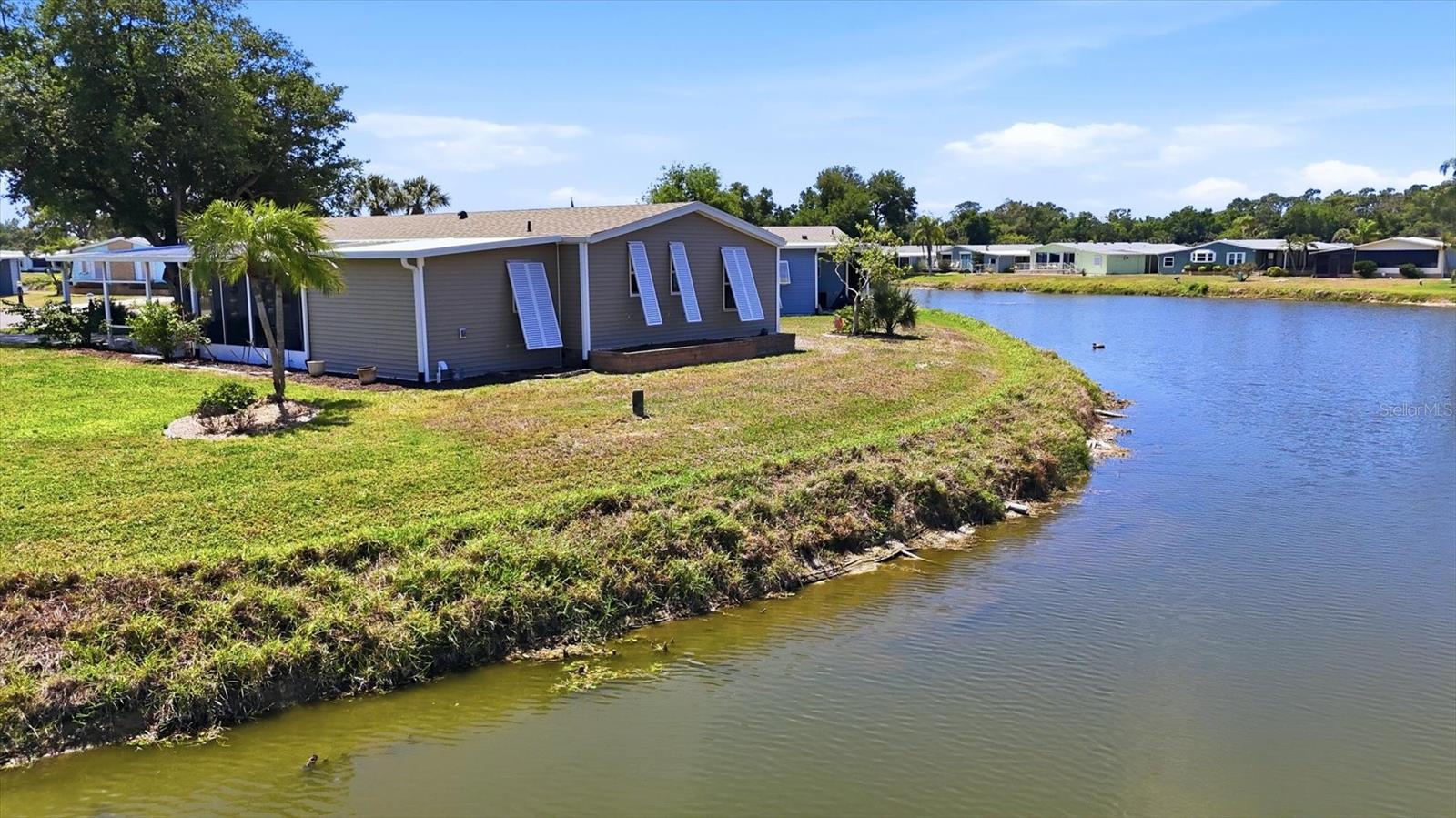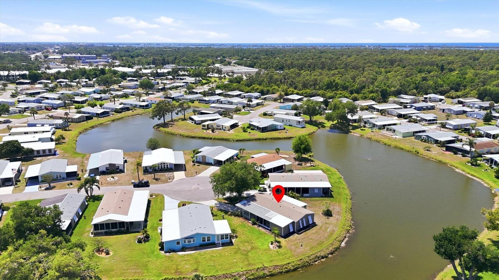 A serene lake view enhances this nicely maintained, 2-bedroom, 2-bathroom home in Tangerine Woods. This highly sought after, over 55 community, is an active and friendly place to live! For your leisurely pleasure, this community provides you with a large heated pool and clubhouse, an exercise room and library, tennis and pickleball courts, walking trails, shuffleboard and so much more! This turn-key furnished home, tucked away on a quiet cul-de-sac, has ceramic tile and carpeted floors, which offset the light and bright living, dining, and family room settings. Your front door entry welcomes you to the open, airy, and neatly decorated living and dining rooms. The spacious kitchen has an abundance of counter space and cupboards, breakfast bar, pantry, cooktop and oven, and is a chef's delight. The large beautifully furnished master bedroom, is enhanced with its wonderfully remodeled ensuite bathroom and large walk-in closet. The guest bedroom includes a barn door entry guest bathroom that has been updated and includes a tub and shower. A family room, with a built-in for your TV and media equipment, is just perfect for entertaining your guests. The screen enclosed lanai just off the family room, boasts a tranquil lake view, and offers you a comfortable second space for outdoor enjoyment and a place to unwind and relax. Off the lanai is a patio, which is ideal for your outdoor grilling. For peace of mind, this home has a new roof in 2022, new siding and new windows, and located in an X Flood Zone. Space galore is the perfect description of this home, that won't last long. Tangerine Woods is located just minutes from the quaint locally owned shops & restaurants of historic Dearborn Street, world class fishing, and many golf courses. This home offers an ideal Florida lifestyle. Schedule your showing today!