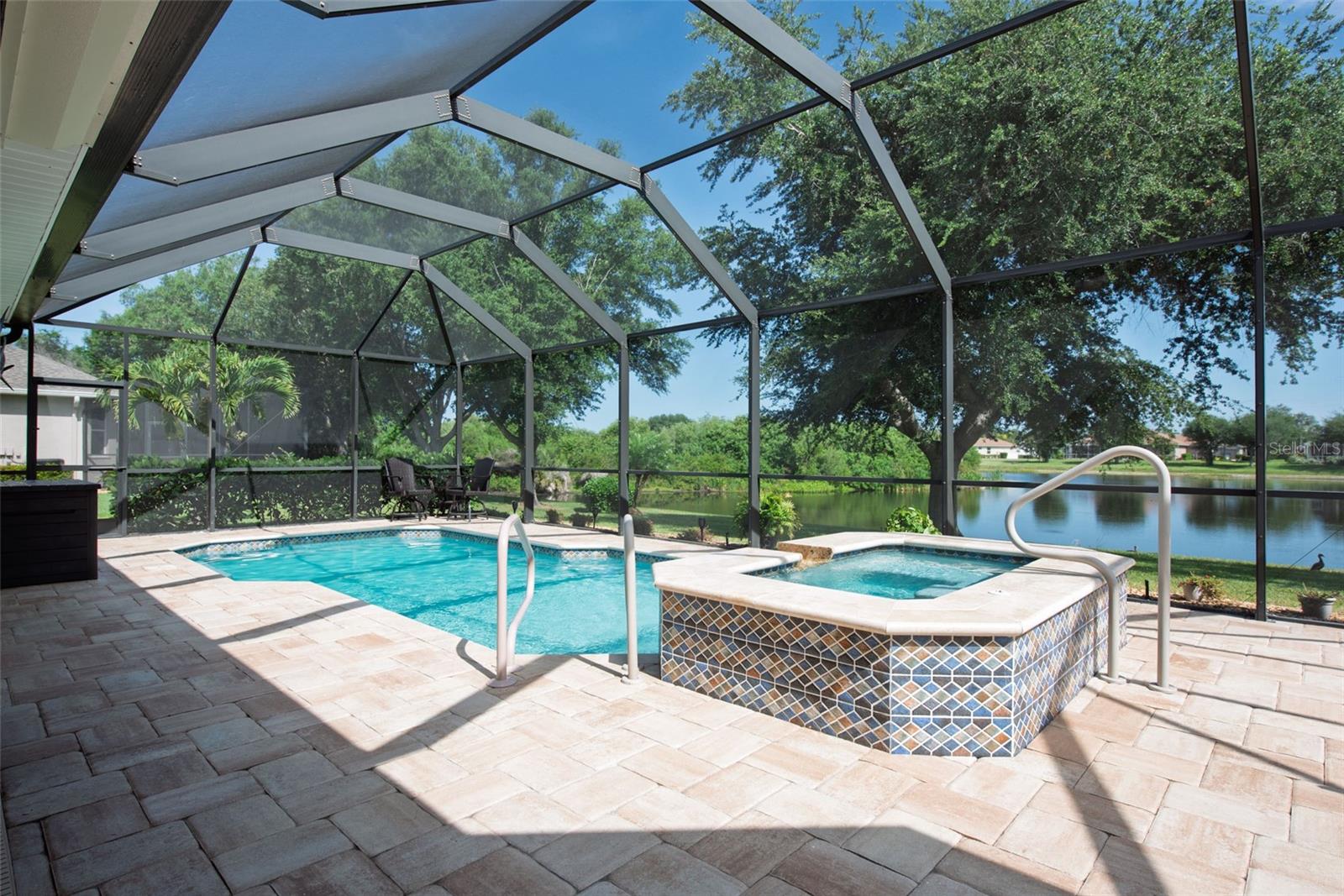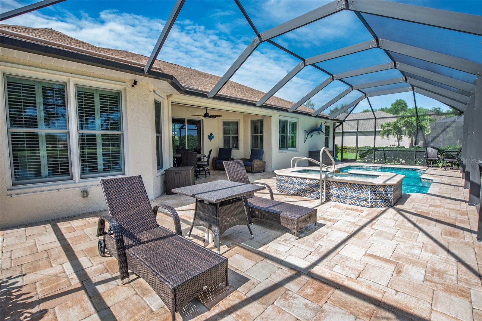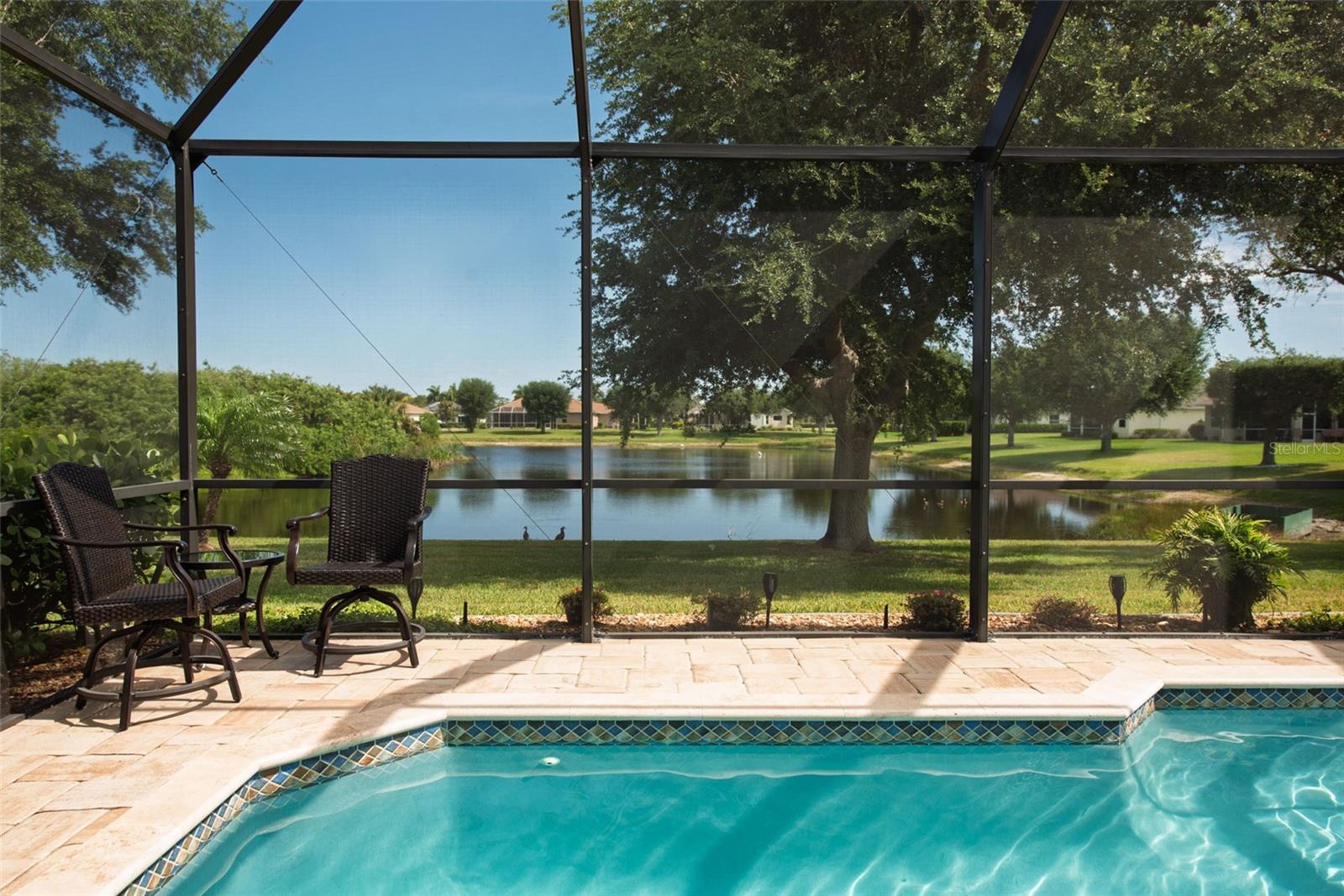 Welcome to your private oasis at 183 CLEAR LAKE DRIVE, a residence where luxury meets exceptional quality in a serene pocket of Englewood. The moment you walk in you are immediately greeted with a gorgeous, open view of the sparkling pool and cozy lake views! This home is the gold standard of meticulous care, featuring an OPEN FLOOR PLAN with SPLIT BEDROOMS to provide maximum comfort and privacy for you and your guests. The primary retreat is a true sanctuary, boasting DUAL CLOSETS and a spacious EN-SUITE BATHROOM. Every significant detail has been perfected, including a NEW ROOF (2022), a NEW HVAC SYSTEM (2023) with a transferable warranty, and brand-new ANDERSON HURRICANE IMPACT WINDOWS (2025). Sustainability meets security with a SOLAR PANEL SYSTEM, a NEW WATER HEATER (2020), and a WHOLE HOUSE GENERAC GENERATOR with wireless connectivity. For effortless protection, you will find STORMSMART ELECTRONIC SHUTTERS on the front entrance and lanai, along with NEW FRONT ENTRY DOORS featuring IMPACT GLASS and an ELECTRONIC CODED LOCK. The exterior is equally impressive with gorgeous landscaping, featuring a PAVER DRIVEWAY AND WALKWAY (resealed and re-sanded in 2025) and an IRRIGATION SYSTEM SET UP WITH RECLAIMED WATER. Step outside into your personal tropical retreat where a pristine SALTWATER POOL AND SPA (added in 2018) is framed by a POOL CAGE fully redone in 2022, providing the perfect setting for Florida’s famous sunsets. Inside, the home glows with sophistication, from the PLANTATION SHUTTERS throughout to the upgraded kitchen featuring a NEW DISHWASHER (2023) and a NEW WASHING MACHINE (2026). The tech-forward garage is a standout, WIRED FOR ELECTRIC VEHICLE (EV) CHARGING and featuring custom storage shelving and a WIFI GARAGE DOOR OPENER. For added convenience, the remote-controlled "MAGIC STAIRS" provide easy access to the attic, and your four-legged family members are kept secure with a transferable INVISIBLE PET FENCE. Imagine spending your mornings sipping coffee in the quiet comfort of a "NO SIREN" ZONE, knowing you are just minutes away from the vibrant energy of the Gulf Coast. Whether you are exploring the boutique shops and farmers markets of historic DEARBORN STREET, hiking the scenic trails of the MANASOTA SCRUB PRESERVE, or spending a sun-drenched afternoon at MANASOTA KEY and BLIND PASS BEACH, this location puts the very best of Florida living right at your fingertips. This is more than just a house; it is an invitation to a lifestyle of ease, coastal beauty, and sophisticated serenity. Come see for yourself why 183 CLEAR LAKE DRIVE is the perfect place to call home.