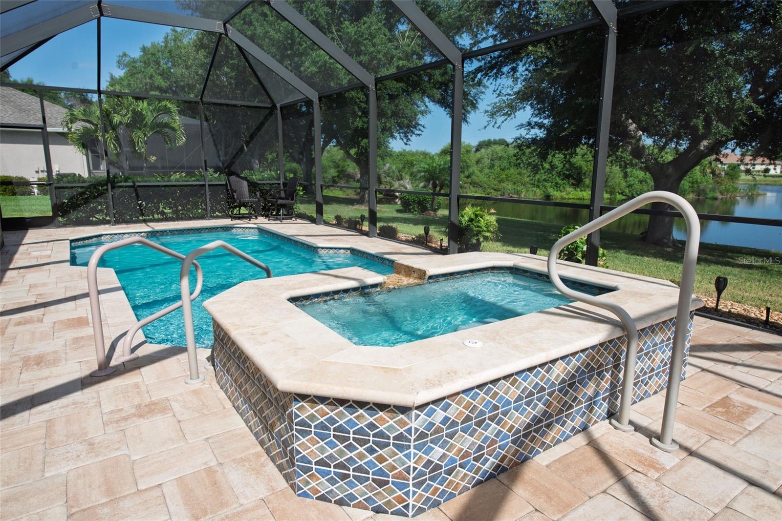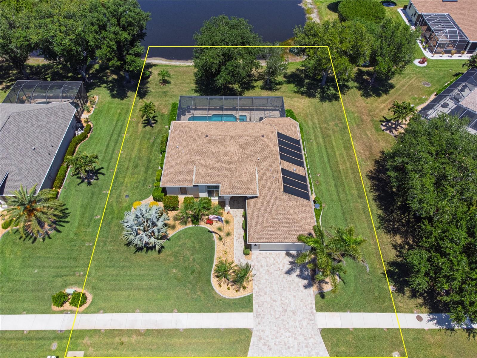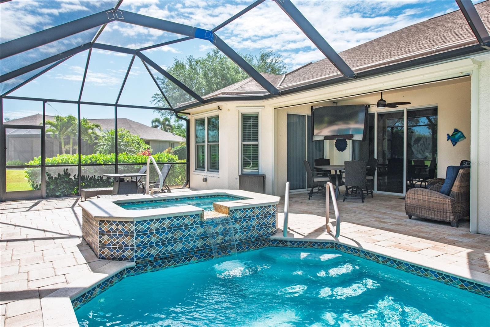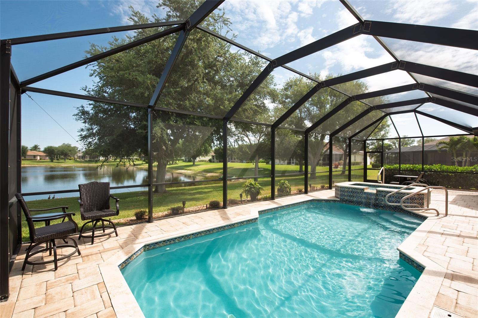 Welcome to your private oasis at 183 CLEAR LAKE DRIVE, a residence where luxury meets exceptional quality in a serene pocket of Englewood. The moment you walk in you are immediately greeted with a gorgeous, open view of the sparkling pool and cozy lake views! This home is the gold standard of meticulous care, featuring an OPEN FLOOR PLAN with SPLIT BEDROOMS to provide maximum comfort and privacy for you and your guests. The primary retreat is a true sanctuary, boasting DUAL CLOSETS and a spacious EN-SUITE BATHROOM. Every significant detail has been perfected, including a NEW ROOF (2022), a NEW HVAC SYSTEM (2023) with a transferable warranty, and brand-new ANDERSON HURRICANE IMPACT WINDOWS (2025). Sustainability meets security with a SOLAR PANEL SYSTEM, a NEW WATER HEATER (2020), and a WHOLE HOUSE GENERAC GENERATOR with wireless connectivity. For effortless protection, you will find STORMSMART ELECTRONIC SHUTTERS on the front entrance and lanai, along with NEW FRONT ENTRY DOORS featuring IMPACT GLASS and an ELECTRONIC CODED LOCK. The exterior is equally impressive with gorgeous landscaping, featuring a PAVER DRIVEWAY AND WALKWAY (resealed and re-sanded in 2025) and an IRRIGATION SYSTEM SET UP WITH RECLAIMED WATER. Step outside into your personal tropical retreat where a pristine SALTWATER POOL AND SPA (added in 2018) is framed by a POOL CAGE fully redone in 2022, providing the perfect setting for Florida’s famous sunsets. Inside, the home glows with sophistication, from the PLANTATION SHUTTERS throughout to the upgraded kitchen featuring a NEW DISHWASHER (2023) and a NEW WASHING MACHINE (2026). The tech-forward garage is a standout, WIRED FOR ELECTRIC VEHICLE (EV) CHARGING and featuring custom storage shelving and a WIFI GARAGE DOOR OPENER. For added convenience, the remote-controlled "MAGIC STAIRS" provide easy access to the attic, and your four-legged family members are kept secure with a transferable INVISIBLE PET FENCE. Imagine spending your mornings sipping coffee in the quiet comfort of a "NO SIREN" ZONE, knowing you are just minutes away from the vibrant energy of the Gulf Coast. Whether you are exploring the boutique shops and farmers markets of historic DEARBORN STREET, hiking the scenic trails of the MANASOTA SCRUB PRESERVE, or spending a sun-drenched afternoon at MANASOTA KEY and BLIND PASS BEACH, this location puts the very best of Florida living right at your fingertips. This is more than just a house; it is an invitation to a lifestyle of ease, coastal beauty, and sophisticated serenity. Come see for yourself why 183 CLEAR LAKE DRIVE is the perfect place to call home.