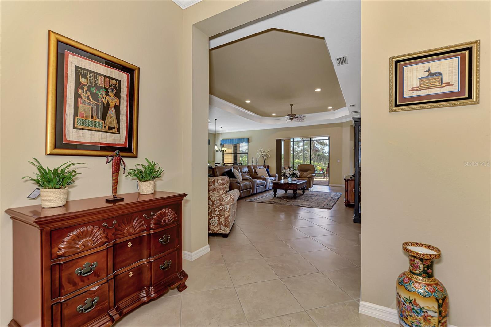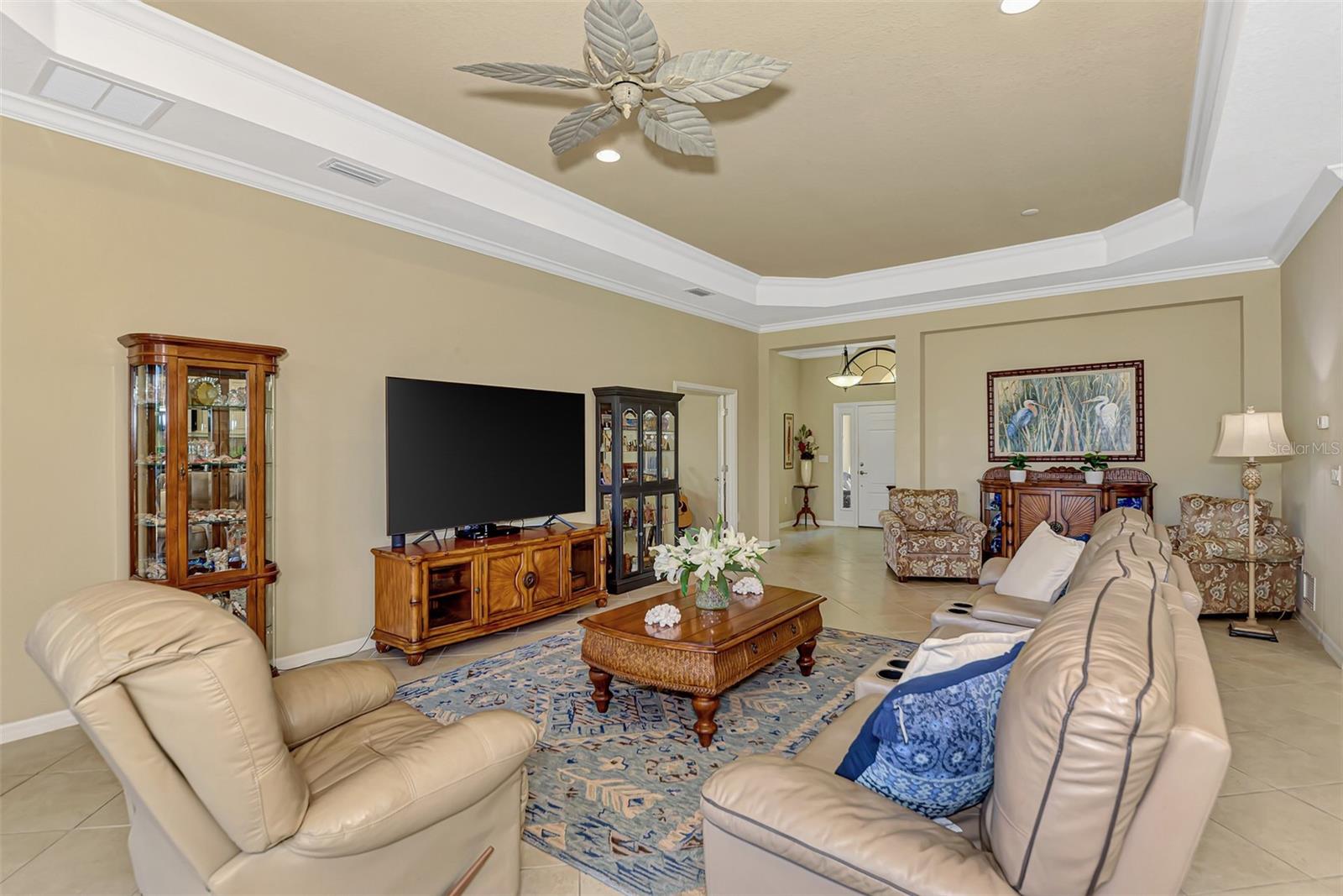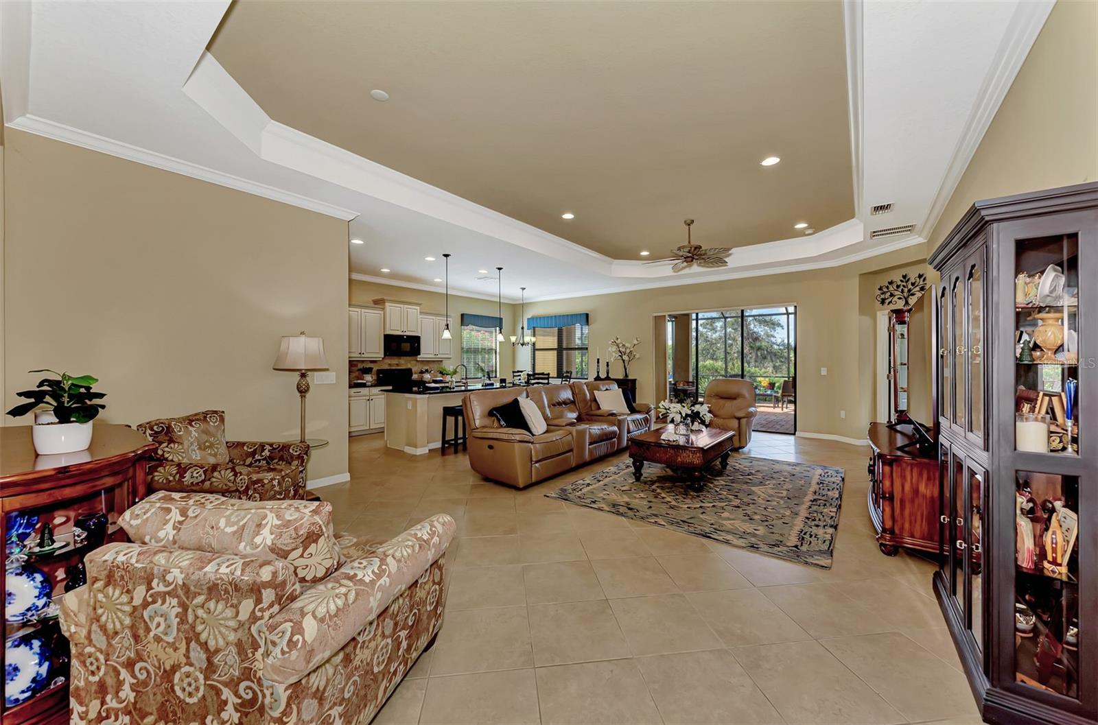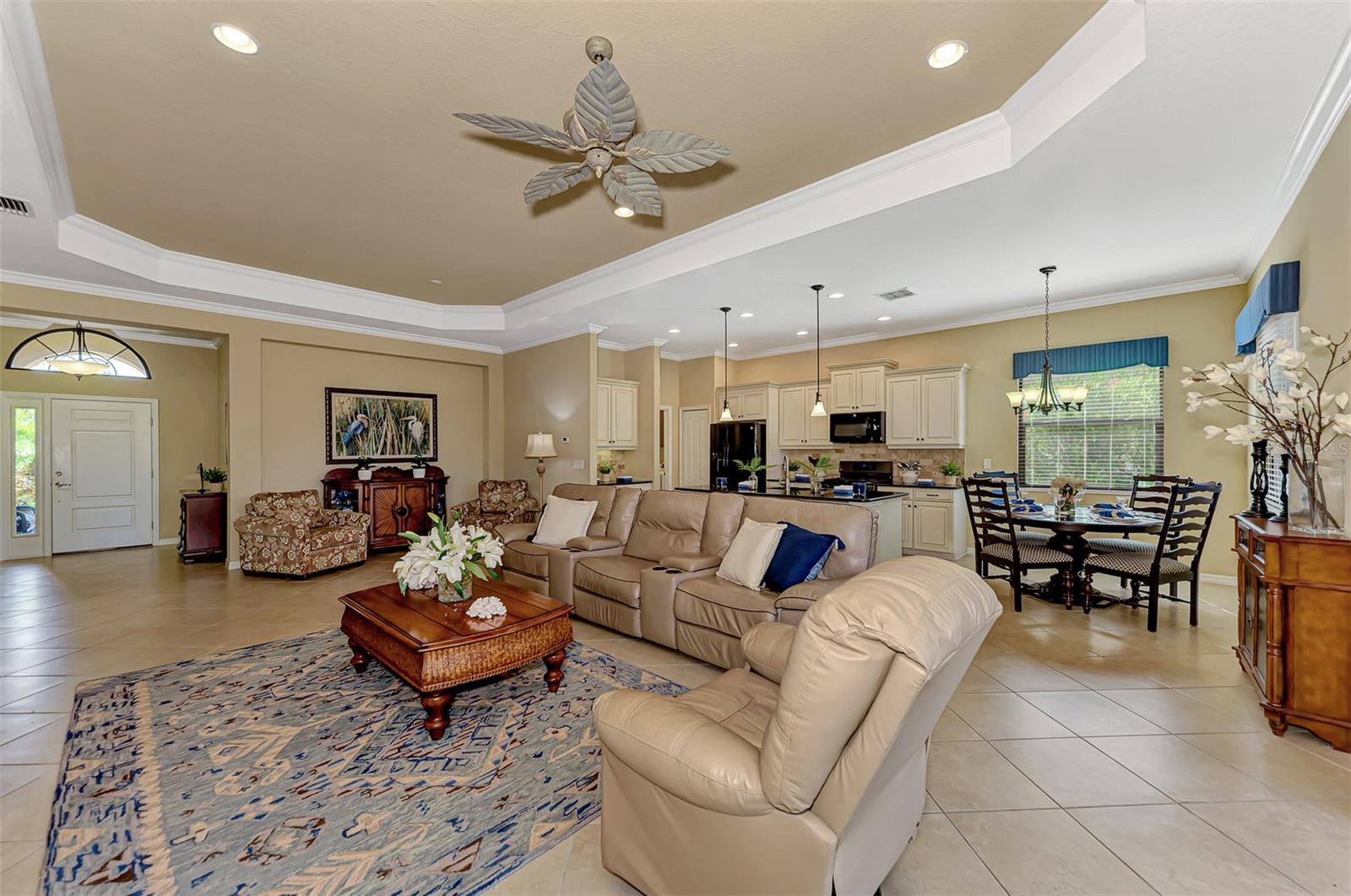 AN AMAZING BUYING OPPORTUNITY AWAITS...AS THIS IS LOWEST PRICED NEWER (2016) SINGLE FAMILY HOME IN BOCA ROYALE GOLF & COUNTRY CLUB - SELLERS ARE MOTIVATED ! Welcome to the Gated and Maintenance Free Community of Boca Royale Golf & Country Club where you will most certainly enjoy RESORT STYLE LIVING with over 1,000 acres of beautifully landscaped streets, lakes, nature preserves, an 18 hole golf course, tennis & pickleball courts, a fitness center, a community pool, a dog park and a Clubhouse with a FULL SERVICE RESTAURANT & BAR. Social Membership is included for all residents, while golf and other memberships are optional. You will most certainly be impressed with this lovely 2 BR 2 BA + DEN/OFFICE EVENTIDE MODEL CUSTOM HOME situated on an OVERSIZED LOT, GREENBELT and NATURE PRESERVE AREA with PLENTY OF ROOM TO ADD A POOL (if desired). Prior to entering this STUNNING HOME, you will truly appreciate all of the lovely and lush landscaping in the front of the home as well as the adorable covered front porch area. Upon entering this home you will immediately notice the OPEN FLOOR PLAN, with spacious 10 foot ceilings, as well as the tray ceiling in the Great Room. The large kitchen area has an eat-in kitchen area, lovely wood cabinetry, a GAS stove and granite countertops. This fabulous floorplan gives flexibility to have a Formal Dining room, if desired, although the current owners have opted to make the Dining Room area an extended part of the Living Room. The Owners Suite is a spacious 13' by 17' with a walk in closet, ensuite bath with dual sinks, and a gorgeous walk in shower. This split floorplan is perfect for company, as the guest bath is situated adjacent to the Guest Bedroom. The OVERSIZED 11' x 15' Den/Office with Beautiful Hardwood Flooring could easily be utilized as a third bedroom, if desired. The rear of this home has a spacious 8' x 26' covered lanai area which is perfect for entertaining and enjoying the private scenic preserve and greenbelt area, without any neighbors behind. The owners have even added an EXTENDED screened and paved lanai pool cage making the total outdoor screened area 550 square feet. Then to make the outdoor area even more desirable, the owners added another uncovered patio area surrounded by an abundance of beautiful tropical plants. The two car garage has been upgraded to add an additional 4 feet in length making this OVERSIZED GARAGE 25 feet by 22 feet in size. This community is located near an abundance of restaurants, and only 5 miles from three spectacular Beaches on Manasota Key and the The Gulf of Mexico. This community is a part of the lovely Wellen Park which just recently opened its Downtown Area and which hosts outdoor Music every week ,the Atlanta Braves Spring Training Stadium/Cool Today Park, Farmers Markets every Thursday on Dearborn St. and every Saturday in Downtown Venice, as well an abundance of shops and restaurants. Boca Royale is only a short 15 minute drive away from Historic Downtown Venice where there's an abundance of events and festivals all year long, as well as a Theatre, Performing Arts Center, and even more restaurants and shops. SO.. PLEASE SCHEDULE YOUR SHOWING TODAY.. so that you don't miss out on this fabulous opportunity.