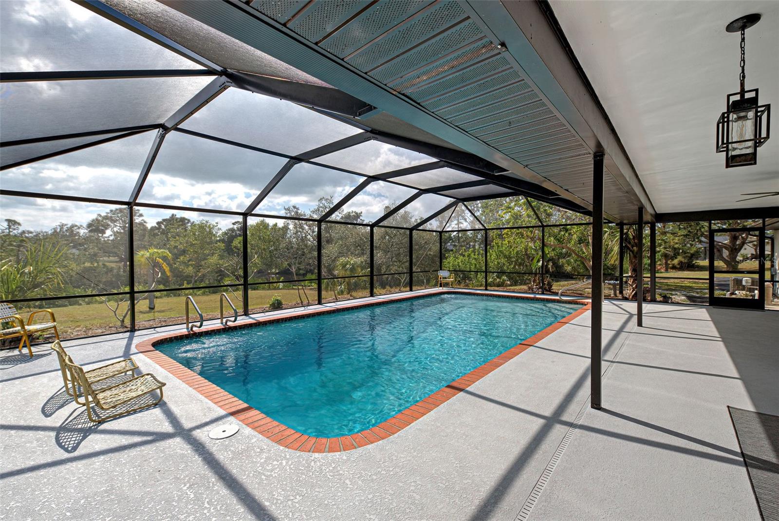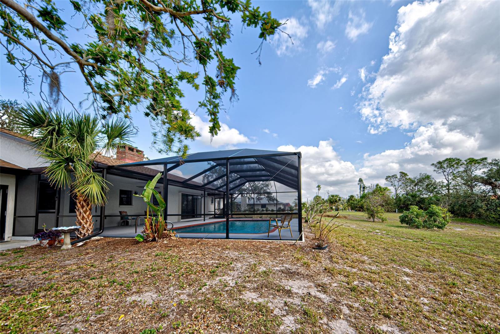 PRICE REDUCTION!! 1+ ACRE HOMESTEAD MASSIVE 3+ GARAGE. ENJOY PEACE OF MIND WITH YOUR NEW POOL CAGE (2/25) with hurricane code rating. PLUS a price reduction! What are you waiting for? MORE THAN $120k in UPGRADES and improvements makes this home a WINNER. Step away from the hustle and bustle of the city to the tranquility of this newly renovated (2024) Mid-century vibe home situated on a 1+ acre lot in Dale Lake Estates. NO HOA here or restrictions! This cul-de-sac street borders the MANASOTA SCRUB NATURE PRESERVE. Your back yard extends to the waters edge with approximately 200 ft of frontage where you can enjoy fishing, bird watching or paddle your kayak down to the Intracoastal Waterway. When you enter the home you will be drawn right out through to the family room through large sliding glass doors to the large screened lanai and swimming pool (32 x15) with beautiful views of the spacious back yard. Enjoy the glow of the double sided fireplace from the living room and into the family room. This home has been entirely upgraded. (See list of upgrades in the Attachments) The kitchen features all new Solid Wood cabinetry, Stainless appliances and Silestone Quartz countertops. The kitchen has an eat in area for casual dining and access to the formal dining room. Luxury vinyl flooring through the living room, formal dining room and kitchen. This home has freshly painted exterior and interior walls and ceilings. The home features 3 bedrooms and 3 full baths. The 3rd bath has access from the back yard off of the pool and from the garage. The bathrooms have been fully renovated including tile work, sinks, toilets, light fixtures and vanities. Each bedroom has wood parquet floors and large deep closets. The primary bedroom has a large walk in closet (7ft x 6ft) with custom shelving. Plenty of storage in the Massive 3.5-car garage (1053 sq ft) with a new Epoxy floor has n additional bump out area where you can store kayaks, paddle boards or have a work shop. The washer, dryer and laundry tub are also located in here. The home has 2 new AC units and 2 electric hot water heaters. Roof was replaced in 2022. New septic tank and drain field was just completed and the property has a well for outside watering. Public water is supplied by Englewood Water Utilities. This is everything you dreamed of. Close to everything you need! You're close to Englewood or Venice for shopping, restaurants, beaches, hospitals and the new Wellen Park community with the Atlanta Braves Spring Training facility. You can walk or bike the 2.5 miles to Manasota Beach. You are so close that you can hear the high surf from the gulf. This is a very unique home. Be sure to watch the WEB LINK 1 video. Schedule your private showing today!