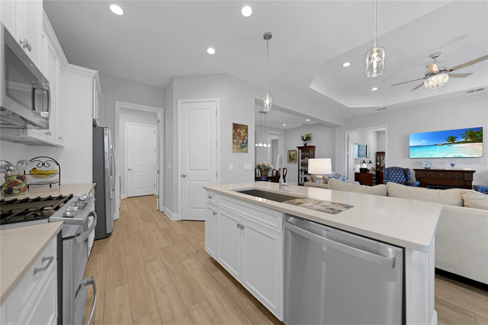 PRICED BELOW MARKET VALUE...BRING YOUR OFFERS! NO FLOOD ZONE & NO CDD! GOLF MEMBERSHIP NOT REQUIRED! Built in 2023, this BEAUTIFUL Single Family Home is a MUST SEE in the desirable Community of Boca Royale Golf & Country Club in Englewood, FL! The Endless Summer 3 home design by Neal Communities, offers 2181 sq. ft. of "SPACIOUS" living space, 3-bedroom 2-bath with a den and 2-car garage. A true cook's kitchen with Quartz countertops, upgraded stainless steel appliances, walk-in pantry, upgraded 42" cabinets, under cabinet LED lights abundant cabinet storage, tile back splash, natural gas stove, and large center island for entertaining! The kitchen is open to the Dinette area and Great Room with pocket sliding doors leading to the extended, screened lanai overlooking a conservation area! You will love the owner's suite which features an en-suite bath with two custom closets, including a walk-in, dual-sinks, private water closet, and a partial-glass enclosed walk-in tile shower. Additional Upgrades: Premium Vinyl Plank Floors; rough-in for outdoor kitchen, 8'0' Doors, laundry tub, foam insulation, epoxy garage floor, 2ft garage extension, and so much more! Located only minutes away from Manasota Key's 3 beautiful public beaches, shopping, restaurants, and so much more! Enjoy the Neal lifestyle at Boca Royale in this "Gated Community" with pristine lakes and nature preserves, social membership, fitness center, restaurant, community pool, pickle ball, tennis, 18-hole golf course, and SO MUCH MORE! Sit back, relax, and enjoy the peace & tranquility while enjoying the Florida sunshine!(back exposure NW and front exposure SE) Live the Florida lifestyle & make this your home! OWN A PIECE OF PARADISE! Check out 3D Virtual Tour #1 & Video #2 Bedroom Closet Type: Walk-in Closet (Primary Bedroom).