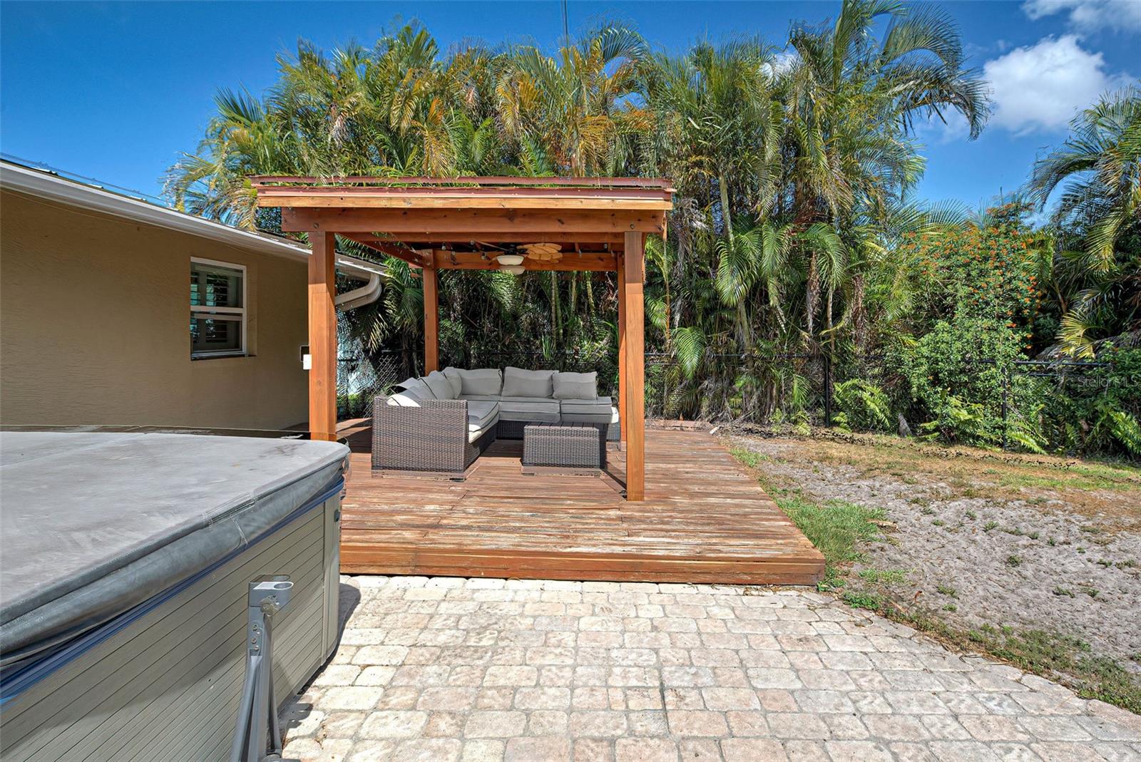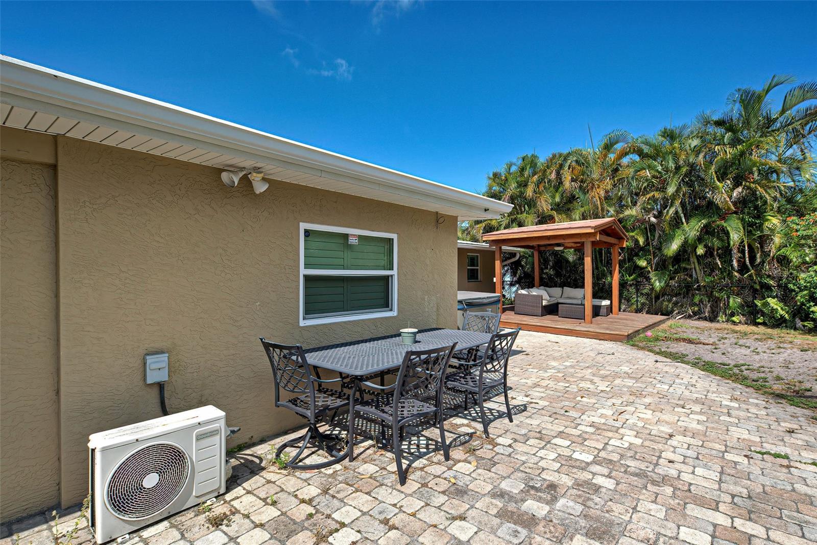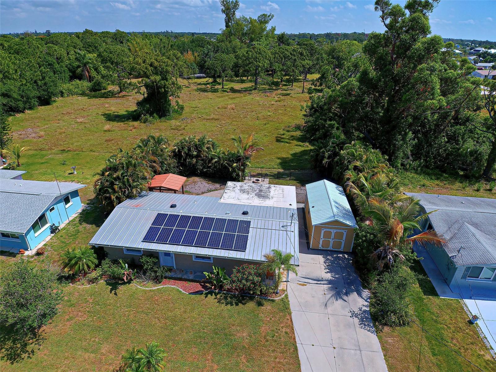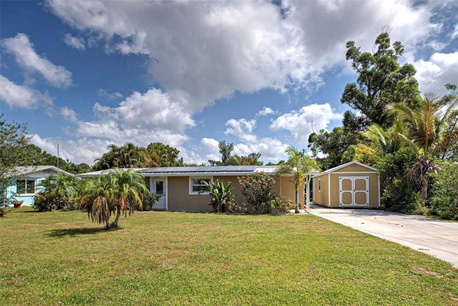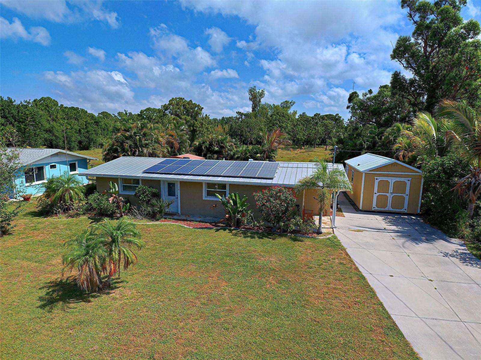 GREAT LOCATION! This home is equipped with SOLAR PANELS, TANK LESS HOT WATER HEATER, IMPACT RESISTANT windows and sliding glass doors and a METAL ROOF (2012) and wait till you see the LARGE SHED (12X24) perfect for a work shop, a he/ she shed and still has plenty of storage room to spare. This unit is insulated and has a portable AC installed! House is located on a quiet private road. Fenced back yard has a large entertainment space all paved with a HOT TUB and fire pit, makes it perfect for enjoying the Florida lifestyle. The home was updated a few years ago by the previous owner who's goal was to make it energy efficient. The home has Plantation Shutters throughout and offers 2 bedrooms, 2 baths and a bonus room that can be used as a den/office or add a closet and it becomes a perfect 3rd bedroom or guest suite with sliding doors that lead to the outdoor entertainment area. This room has its own MiniSplit (for AC & heat) IN ADDITION to being an energy efficient home, the location is incredible. So much to enjoy is within walking distance. Restaurants, grocery stores, and shopping. One of the top rated beaches, Manasota Beach is right in/heat) Englewood. Go enjoy swimming, sunbathing, boating or finding that perfect sea shell. The historic district of Englewood has quaint shops, a weekly Farmers Market, a Playhouse for local talent to shine, a library and plans are underway to revitalize downtown. Indian Mounds Park has a large boat launch open to the public and a great park to open up your beach chair and you can even drop your kayak or paddle board in right there. Venice and Port Charlotte our neighboring towns are only 25 minutes away. Wellen Park is just up the road off 776 and has The Atlanta Braves Spring Training Facility and offers special events year round. So much to do in the area if that's what you choose. NO HOA or restrictions so bring your toys. You have GOT TO SEE THIS HOME to appreciate what it offers. It can be a full time home and the perfect winter retreat to get out of those cold winters up north. Come on, what are you waiting for?
