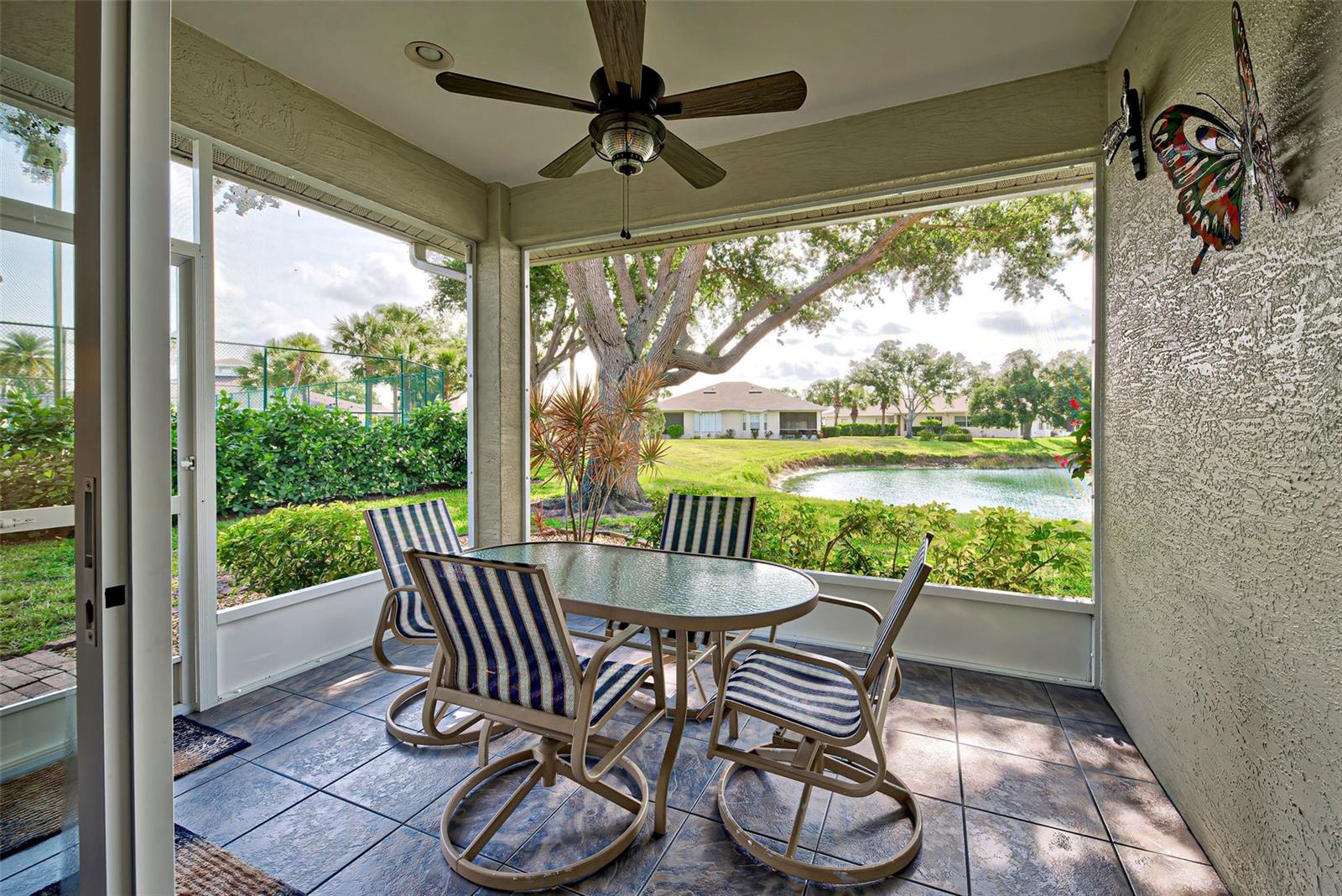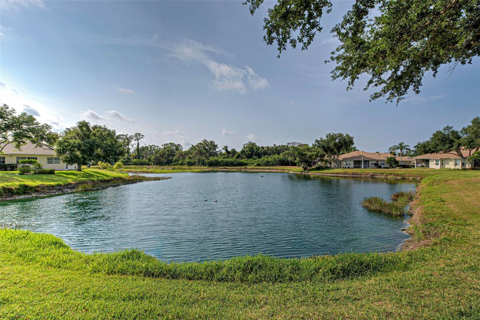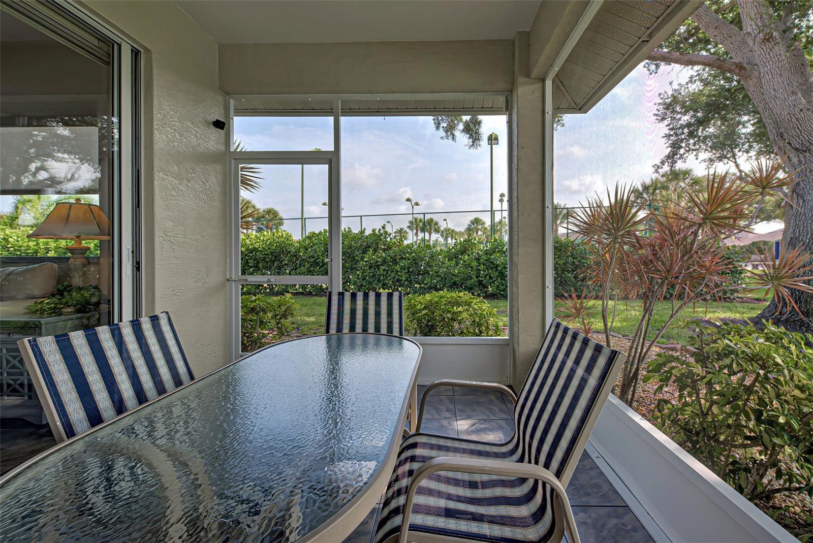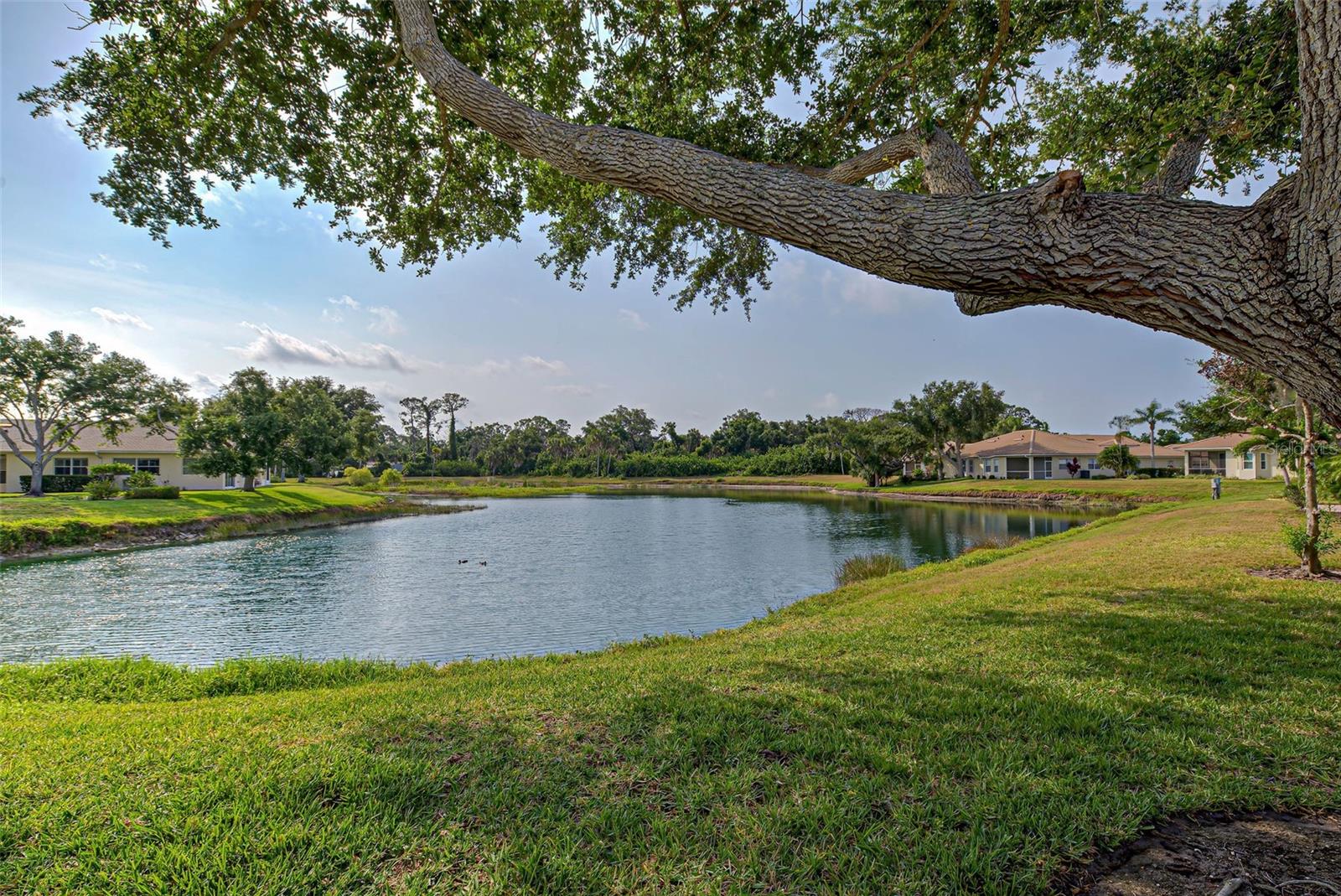 Great PRICE WITH A FANTASTIC SETTING! This is the villa you have been waiting for! Your new home/vacation home is just minutes, to some of our areas best beaches on the West Coast of Florida. This Villa was built on one of the prime lot locations in the beautiful community of Oak Forest. The home has a fantastic view and is conveniently located next to the pool and amenities. This makes your walk to the pool seconds away, but has the privacy you would want, created from the mature landscaping that has been planted. This Spotless villa has been truly loved and it shows. As you arrive, you will find a Brick Paver patio, surrounded with an elegant metal gate with fencing. This 2 bedroom 2 bath villa has tile in the main living areas and carpeted bedrooms. As you enter the home the dining room is situated directly to the side of the well equipped kitchen. The kitchen appliances were replaced in 2021 and the disposal was replaced 2024. This villa has a family room and a living room with a Split Floor Plan! You will find the villa has updated landscaping and the garage floor has been fully epoxied with a lifetime finish in 2020. In our warmer summer months, use your automatic, remote controlled venetian blinds for added shade. Installed in 2023. Water heater was installed in 2020. Updated Lanai screen and A/C was replaced in 2018. This home gets a lot of light and feels bright and airy. Oak Forest has a heated community pool, fitness center, tennis courts and Bocce Ball too. You will find numerous restaurant's and shopping just around the corner and minutes to beautiful Manasota or Englewood Beach. Come and see for yourself and call for your private tour today!