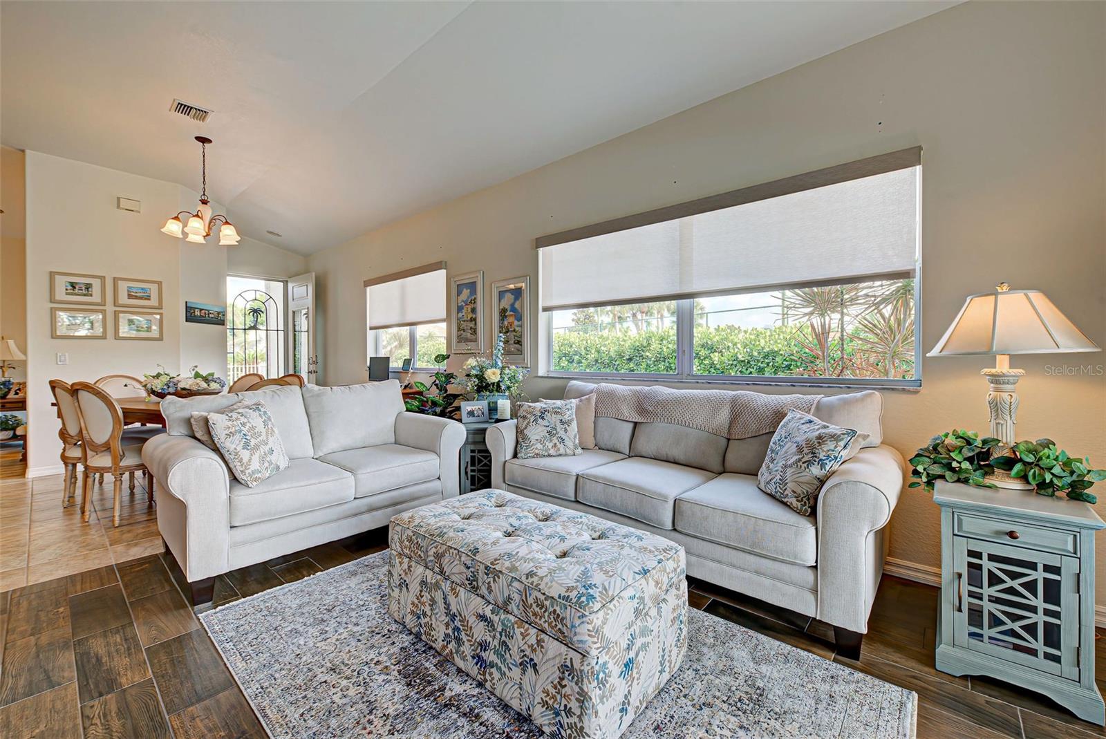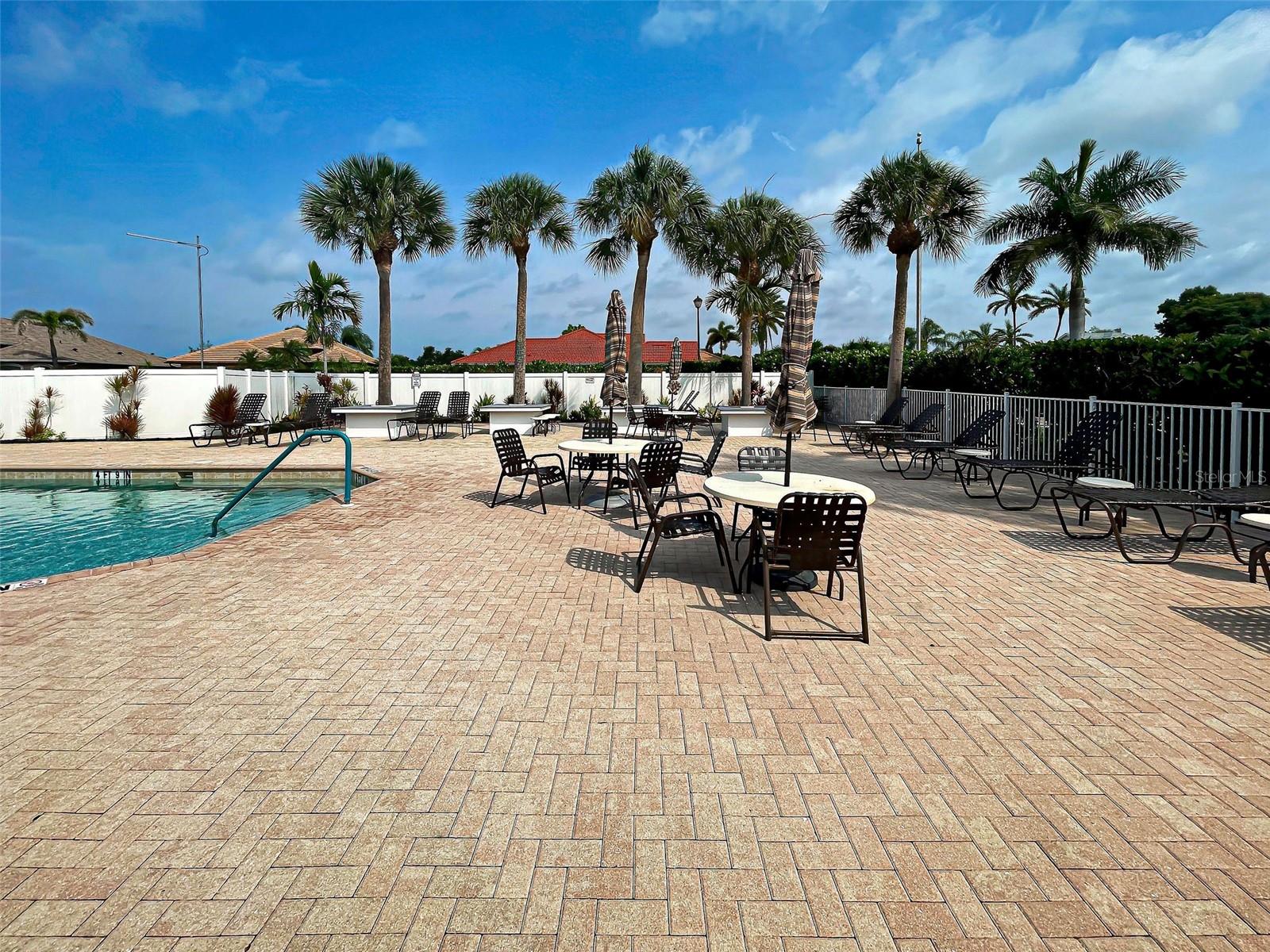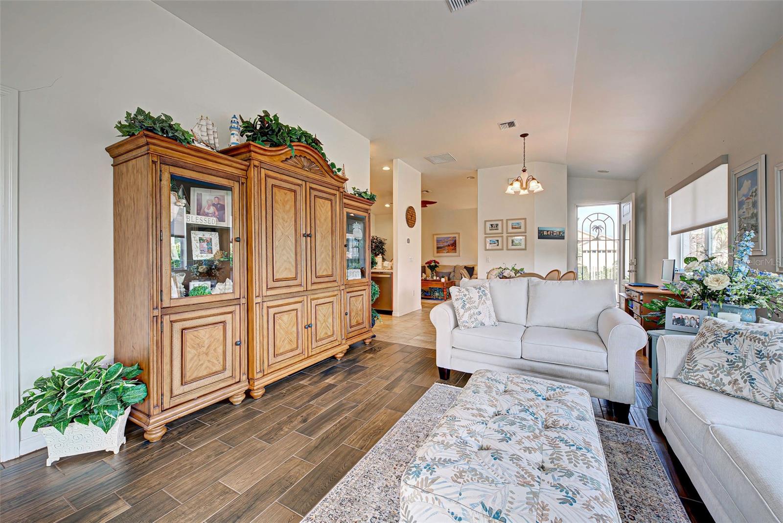 Great PRICE WITH A FANTASTIC SETTING! This is the villa you have been waiting for! Your new home/vacation home is just minutes, to some of our areas best beaches on the West Coast of Florida. This Villa was built on one of the prime lot locations in the beautiful community of Oak Forest. The home has a fantastic view and is conveniently located next to the pool and amenities. This makes your walk to the pool seconds away, but has the privacy you would want, created from the mature landscaping that has been planted. This Spotless villa has been truly loved and it shows. As you arrive, you will find a Brick Paver patio, surrounded with an elegant metal gate with fencing. This 2 bedroom 2 bath villa has tile in the main living areas and carpeted bedrooms. As you enter the home the dining room is situated directly to the side of the well equipped kitchen. The kitchen appliances were replaced in 2021 and the disposal was replaced 2024. This villa has a family room and a living room with a Split Floor Plan! You will find the villa has updated landscaping and the garage floor has been fully epoxied with a lifetime finish in 2020. In our warmer summer months, use your automatic, remote controlled venetian blinds for added shade. Installed in 2023. Water heater was installed in 2020. Updated Lanai screen and A/C was replaced in 2018. This home gets a lot of light and feels bright and airy. Oak Forest has a heated community pool, fitness center, tennis courts and Bocce Ball too. You will find numerous restaurant's and shopping just around the corner and minutes to beautiful Manasota or Englewood Beach. Come and see for yourself and call for your private tour today!