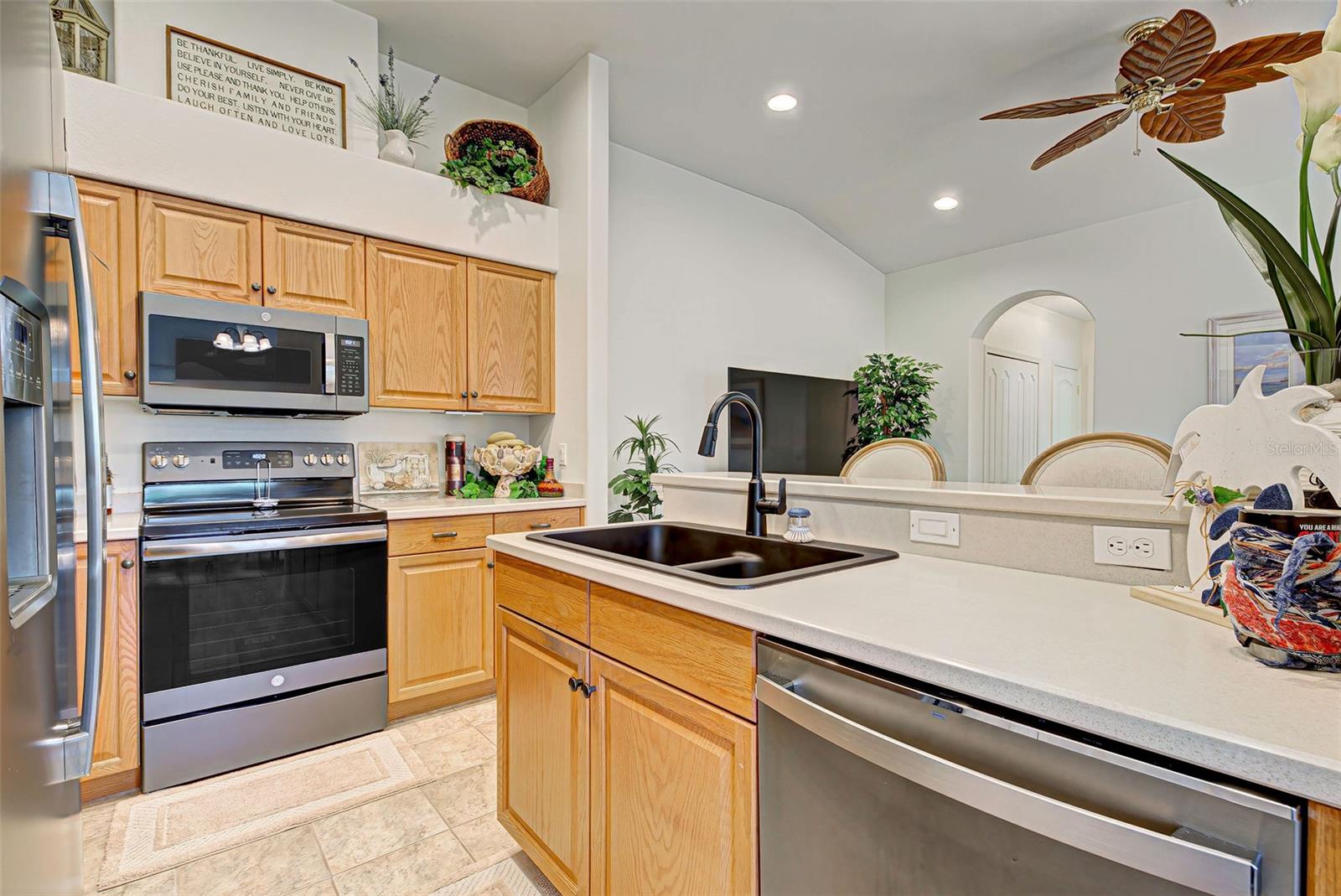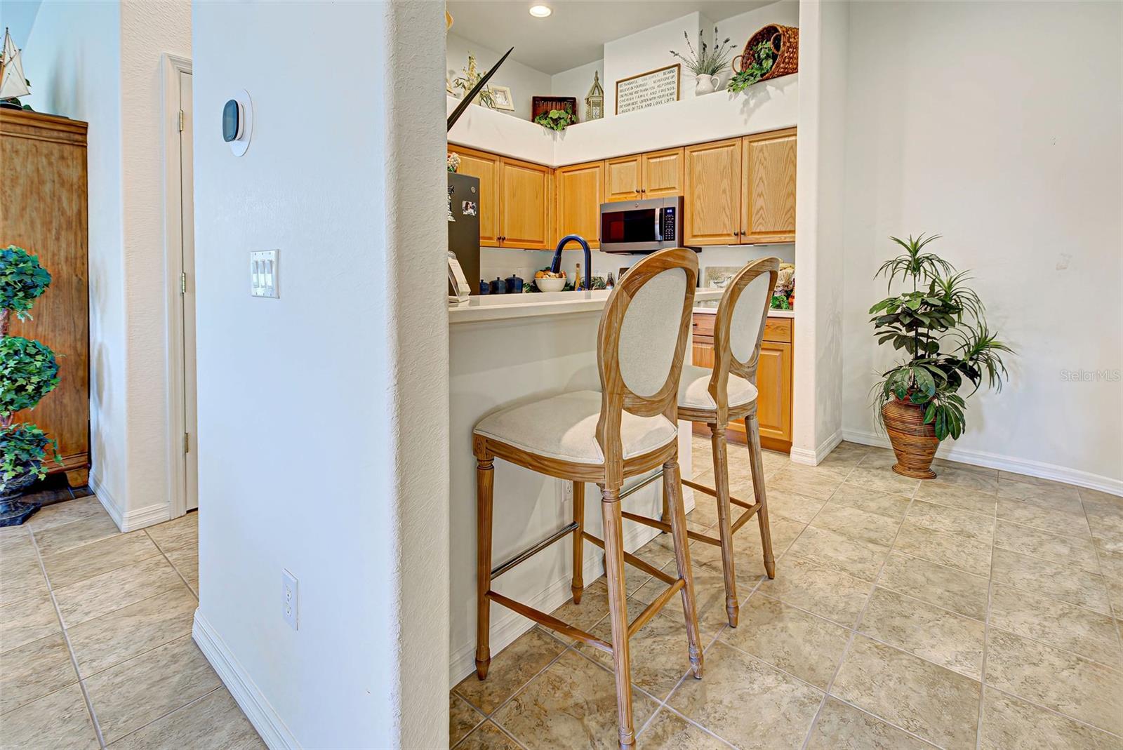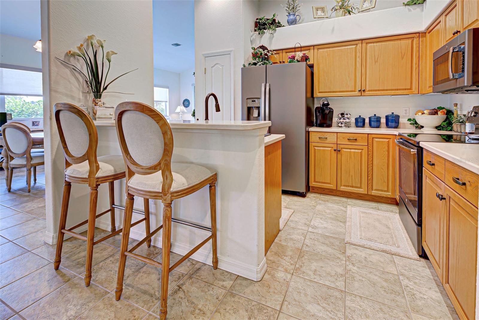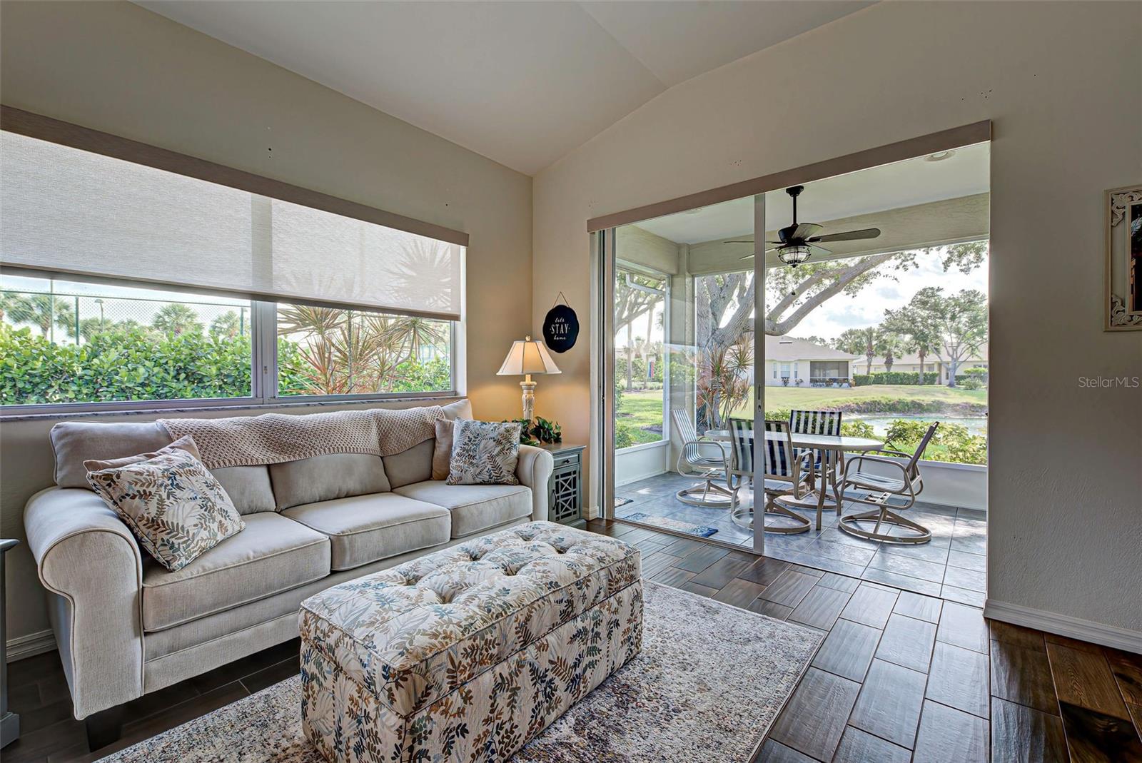 Great PRICE WITH A FANTASTIC SETTING! This is the villa you have been waiting for! Your new home/vacation home is just minutes, to some of our areas best beaches on the West Coast of Florida. This Villa was built on one of the prime lot locations in the beautiful community of Oak Forest. The home has a fantastic view and is conveniently located next to the pool and amenities. This makes your walk to the pool seconds away, but has the privacy you would want, created from the mature landscaping that has been planted. This Spotless villa has been truly loved and it shows. As you arrive, you will find a Brick Paver patio, surrounded with an elegant metal gate with fencing. This 2 bedroom 2 bath villa has tile in the main living areas and carpeted bedrooms. As you enter the home the dining room is situated directly to the side of the well equipped kitchen. The kitchen appliances were replaced in 2021 and the disposal was replaced 2024. This villa has a family room and a living room with a Split Floor Plan! You will find the villa has updated landscaping and the garage floor has been fully epoxied with a lifetime finish in 2020. In our warmer summer months, use your automatic, remote controlled venetian blinds for added shade. Installed in 2023. Water heater was installed in 2020. Updated Lanai screen and A/C was replaced in 2018. This home gets a lot of light and feels bright and airy. Oak Forest has a heated community pool, fitness center, tennis courts and Bocce Ball too. You will find numerous restaurant's and shopping just around the corner and minutes to beautiful Manasota or Englewood Beach. Come and see for yourself and call for your private tour today!
