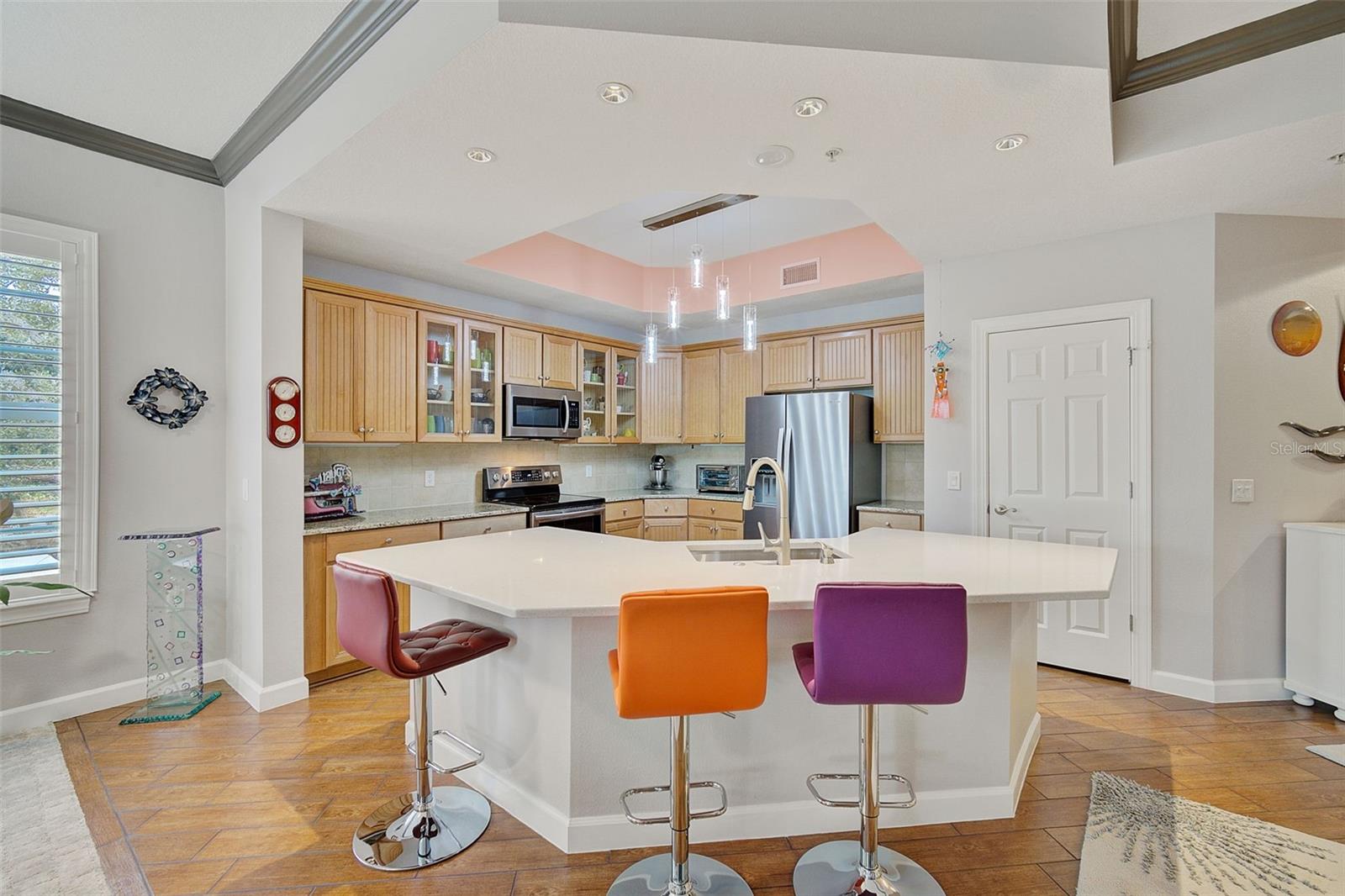 Welcome to your dream condo at The Hammocks in Cape Haze! This spacious 3-bedroom end unit offers a perfect blend of modern luxury and natural beauty. Step into a haven of comfort with a contemporary kitchen featuring a custom quartz island, the perfect spot for entertaining. This home features two generously sized guest rooms, each boasting ample closet space and an abundance of natural light. Between them you will find an updated hallway bathroom which adds a touch of modern elegance to this home. Immerse yourself in the luxury of contemporary design and functionality, where every detail has been carefully curated to provide both style and convenience. Just down the hall is a laundry closet complete with a utility sink, tucked away for practicality and efficiency, the laundry closet brings a touch of modern functionality to your daily routine. The living room has a beautiful view of the pond and there is plenty of storage within the custom 15 foot wall entertainment unit (which also has custom lighting built into it). Indulge in the ultimate retreat within this luxurious residence, boasting a large master bedroom that defines comfort and elegance. Step into a haven of tranquility, where the spaciousness of the master bedroom is accentuated by not one, but two closets, offering an abundance of storage and organizational possibilities. The master suite sets the stage for relaxation and sophistication, with its expansive layout providing a perfect balance of privacy and openness. As you enter the ensuite master bathroom, be prepared to be captivated by the opulence that unfolds. Two separate vanities provide ample space for morning routines, ensuring a sense of individualized luxury. There is a beautiful soaking tub and an upscale tiled shower with seamless glass. One of the property's standout features is the private lanai, providing the ideal setting for enjoying mesmerizing afternoon sunsets over the tranquil pond. This peaceful view creates a serene ambiance, making it the perfect spot to unwind and appreciate the beauty of your surroundings. The Hammocks is not just a residence; it's a lifestyle. Nestled in a gated community, residents enjoy exclusive access to a clubhouse, a resort-style pool that beckons relaxation, a fitness center for staying active, and tennis courts for the sports enthusiasts. The community's amenities cater to diverse interests, ensuring there's something for everyone.