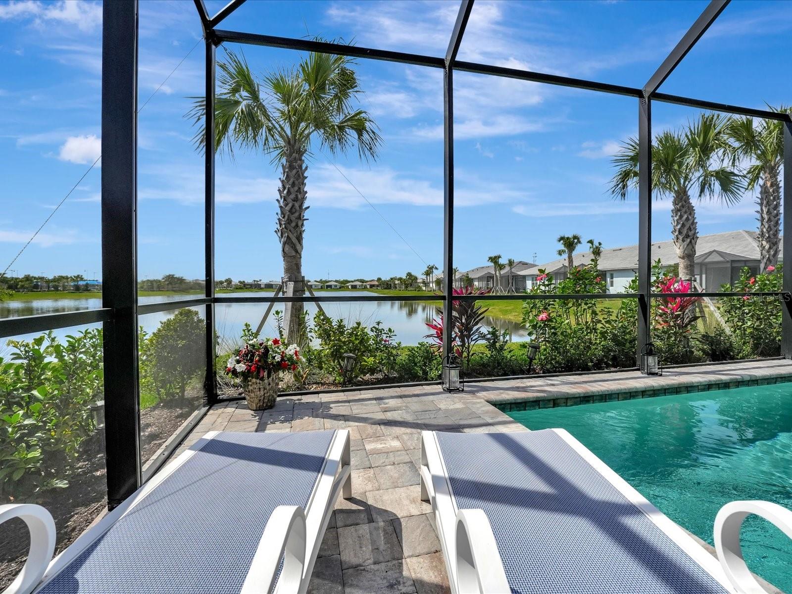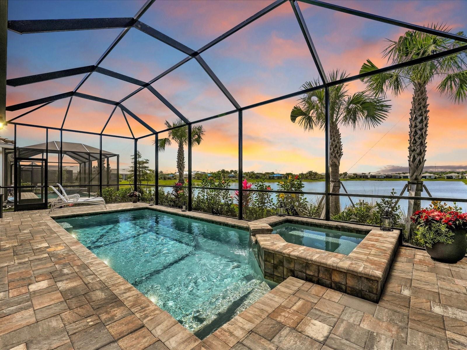 Perfectly Priced Waterview Home in Beachwalk - Prime West-Facing Location! Discover the pinnacle of coastal living at Beachwalk by Manasota Key, an exclusive new community designed for active lifestyles. Boasting a host of resort-style amenities including a saltwater pool, hot tub, clubhouse, state-of-the-art fitness center, fire pit, and much more, Beachwalk offers unparalleled luxury and convenience. With 10 pickleball courts, 5 tennis courts, 6 bocce ball courts, a community garden, and a dedicated dog park, every day brings new opportunities for recreation and relaxation. Look forward to upcoming attractions including a tiki-style poolside bar and grill, set to open this year, with a formal dining restaurant on the horizon. Situated less than 2.5 miles from Manasota Beach and close to historic downtown Venice, Beachwalk combines natural beauty with urban convenience. This natural gas community features an affordable HOA and no CDD fees, ensuring a lifestyle of ease and affordability. Step into this newly constructed 3-bedroom, 2.5-bathroom home, offering 2,100 square feet of meticulously designed living space. The gourmet kitchen is a chef's dream with Quartz countertops, 42-inch cabinets, and KitchenAid stainless steel appliances, including a 5-burner gas cooktop. Enjoy porcelain tile flooring throughout, 10-foot ceilings, 8-foot interior doors, plantation shutters, and an epoxy floor in the extended garage. Abundant storage solutions include built-in cubbies, walk-in closets, and custom cabinets. This home features an upgraded FM3 façade with a contemporary etched glass door and bay window in the front guest bedroom. Outside, the home is adorned with a paver-style driveway, low-maintenance tile roof, upgraded lighting, and beautifully landscaped grounds. Delight in breathtaking waterfront views and stunning sunsets from your private lanai, complete with a saltwater pool and spa. Technological enhancements abound with built-in Sonos speakers in the gathering room and lanai, Sonos amplifiers (convey), Wi-Fi access points, High Speed Fiber Internet, MyQ Garage Door system, Zodiac iAqualink Pool Automation, Cat-6 jacks, and pre-installed TV mounts. Additional features include six new Hunter ceiling fans, tray ceilings, and plumbing/gas hookup for an outdoor kitchen. Whirlpool Washer & Dryer are also included for added convenience. Why build new and go through all the hassles of the building process and warranty issues, when you can buy this incredibly upgraded home for less. Experience the ultimate in Southwest Coastal Florida living - schedule your private tour of this exceptional Beachwalk home today!