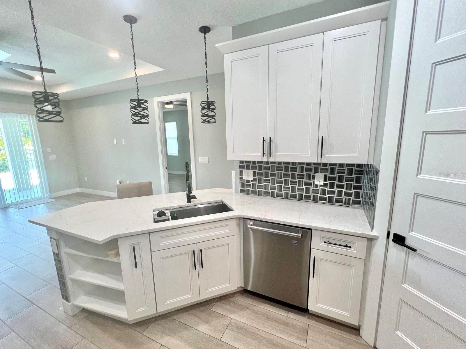 Beautiful 2020 built house just 5 miles from Englewood Beach. This 3/2/2 plus a Bonus Room (Office / Flex Room) pool home is packed with features. Interior includes, high ceilings, tray ceilings, ceiling fans, ceramic tile throughout, built in shelving in office, stainless appliances in the kitchen, contemporary trim package and more, custom tile in bathrooms, free standing tub, quartz counter tops, soft close cabinet hardware, 42" cabinets with crown molding, pantry closet, cabinets in Laundry Room and so much more. Exterior features include gutters all around, beautiful heated salt water pool with plenty of deck space, rear porch, impact hurricane windows, sliding glass doors, extra parking for a boat or RV and more. Conveniently located to Winchester Blvd with quick access to Englewood Beach, Wellen Park and I-75. Come an envision yourself in this beautiful property. Schedule your private showing Today! Lot to the left of the house is available for purchase for a separate price.