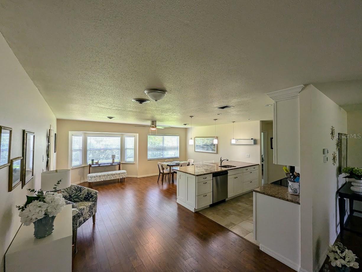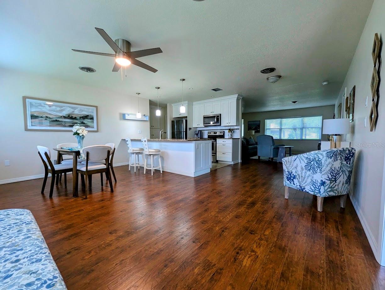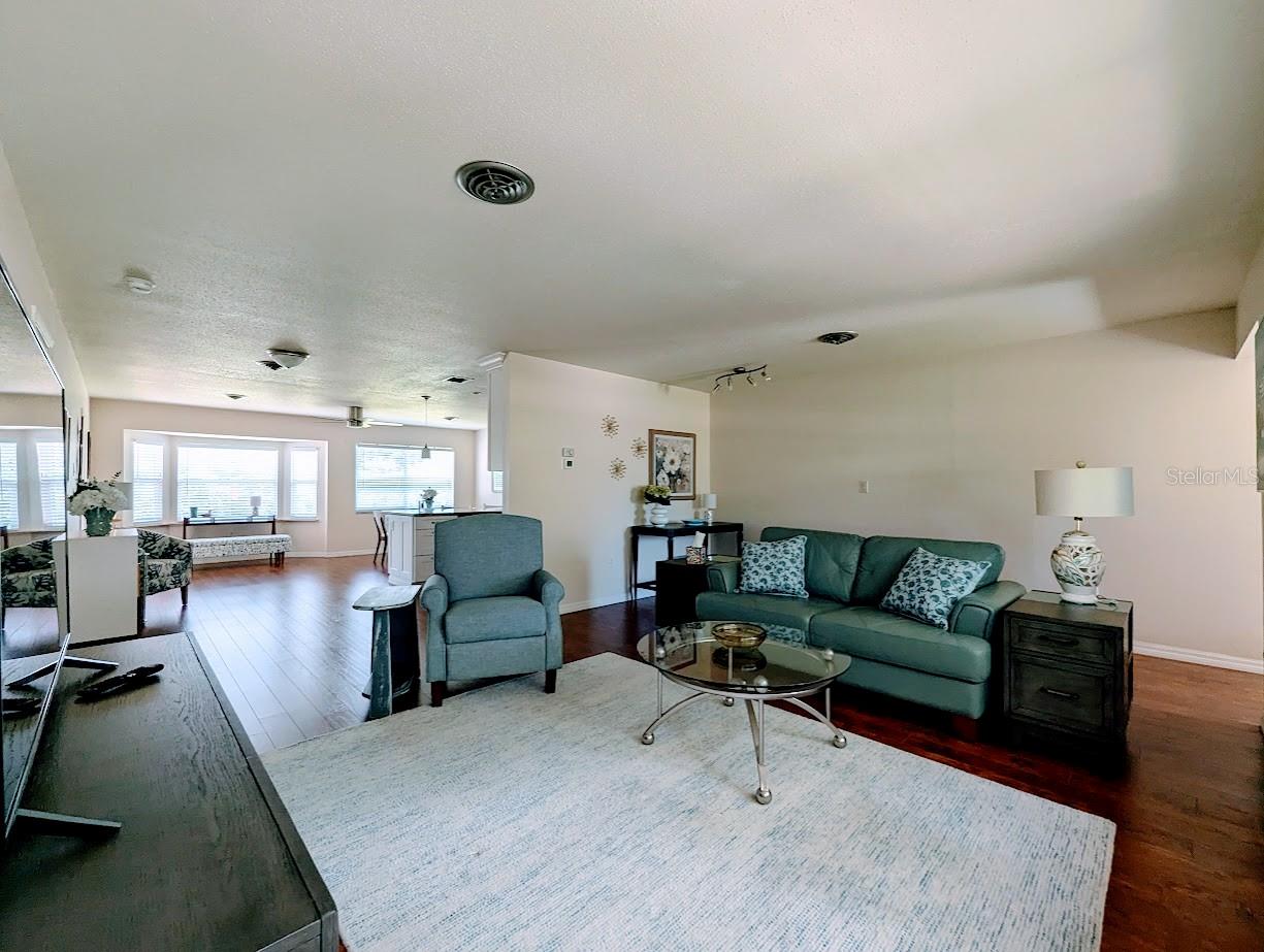 LOCATION LOCATION!! NOT IN A FLOOD ZONE. The OPTIONAL HOA is only $60/YEAR (if you opt into it). Only about 10 minutes drive to Lemon Bay and Manasota Beach. Recently updated, very inviting and move-in ready home is in a peaceful park-like setting. 2 bedroom, 2 bathroom, 2-car garage, split floor plan with additional study/flex room, located on private road in the quiet and desirable community of Bay Vista. Primary bedroom has an en suite full bath, large walk-in closet and plenty of space for a king size bedroom set. Spacious second bedroom has plenty of space for 2 twin beds, night stand, dresser, has a walk-in closet, and pocket door enabling en suite privacy for second bedroom with the second full bath. Third room is currently set up as a study with couch, and triple sliding glass door overlooking the peaceful and lush back yard, with paver patio, where you can enjoy your morning coffee, or stargaze in the evening as you BBQ or stoke a bonfire. It is very easy to simply rest and relax in this quiet neighborhood, perhaps on the front porch in the shade of the mature oak tree out in front. Open living room, dining room, lounge, and fully appointed, dine-in kitchen with breakfast bar complete the interior. Washer & dryer are in garage for your convenience. The property abuts Lemon Bay Park, where you can enjoy the peace and serenity of nature, and all that Florida wildlife and foliage has to offer, along the many walking trails. Only 10 min drive to Gulf Beaches near Manasota Key. It's an easy walk, bike, or golf cart ride to Historic Dearborn street, in Old Downtown Englewood, where there's always something interesting going on - farmers market/art shows/ great coffee shop, live music, car shows, many events and friendly . Just a short drive to numerous golf courses, restaurants, shopping centers, and other area attractions. Less than an hour to both the Punta Gorda and Sarasota/Bradenton airports, and a little over an hour to Fort Myers airport. Offered unfurnished, but all furnishings are available. Just move-in and start enjoying the Florida lifestyle. A must see!