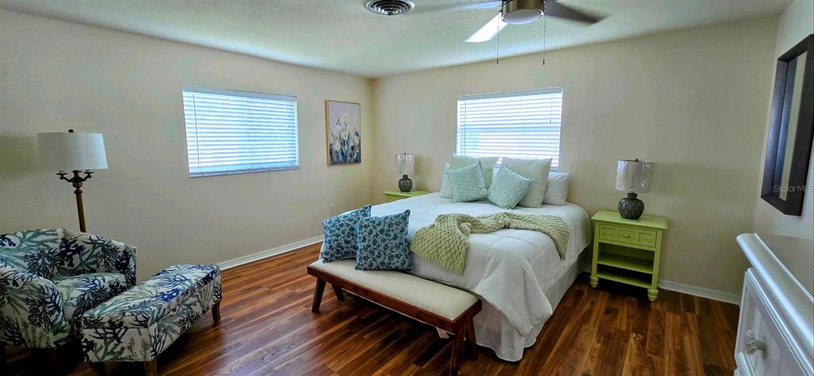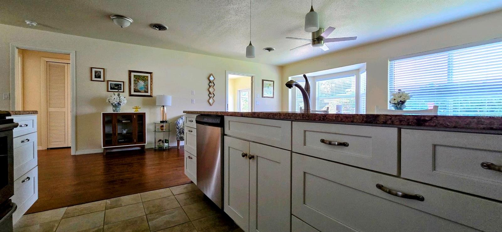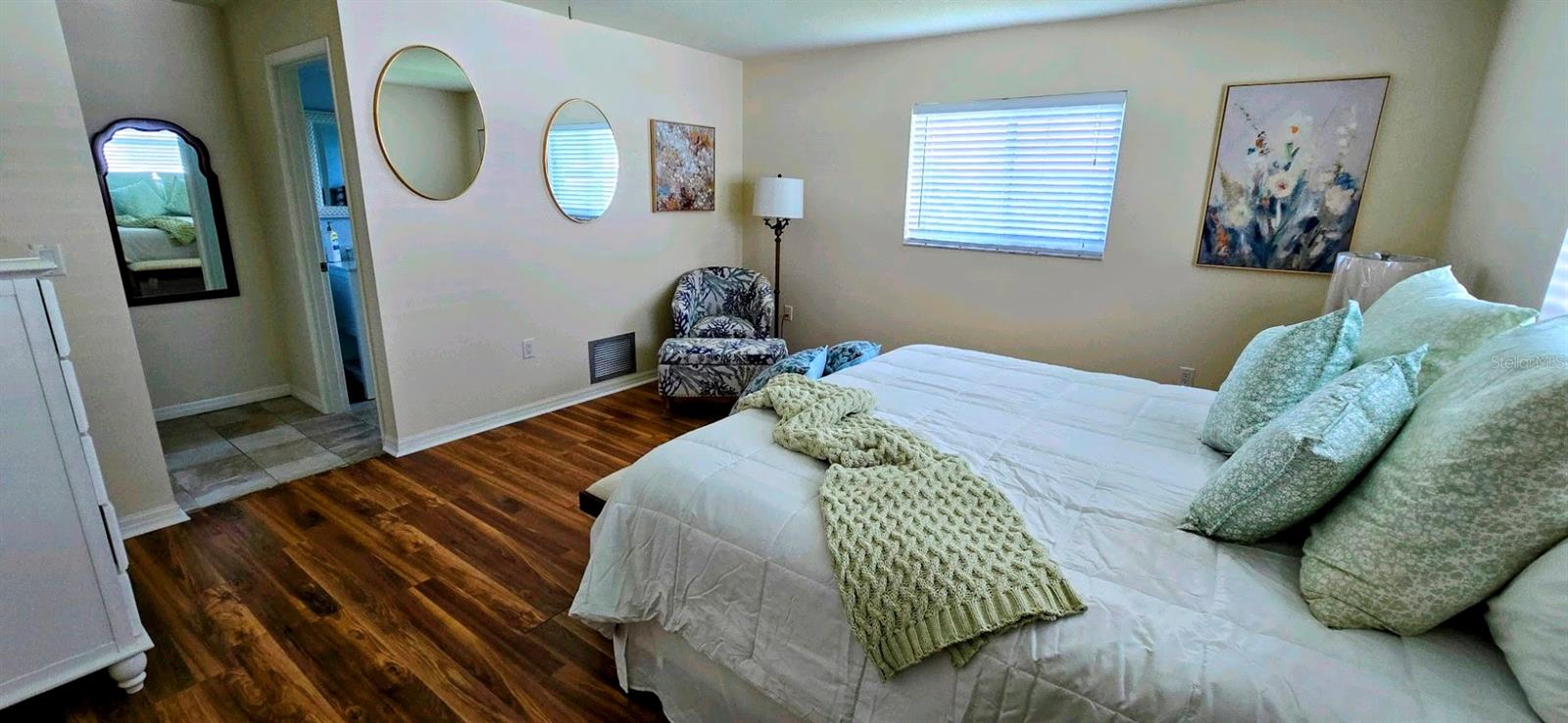 LOCATION LOCATION!! NOT IN A FLOOD ZONE. The OPTIONAL HOA is only $60/YEAR (if you opt into it). Only about 10 minutes drive to Lemon Bay and Manasota Beach. Recently updated, very inviting and move-in ready home is in a peaceful park-like setting. 2 bedroom, 2 bathroom, 2-car garage, split floor plan with additional study/flex room, located on private road in the quiet and desirable community of Bay Vista. Primary bedroom has an en suite full bath, large walk-in closet and plenty of space for a king size bedroom set. Spacious second bedroom has plenty of space for 2 twin beds, night stand, dresser, has a walk-in closet, and pocket door enabling en suite privacy for second bedroom with the second full bath. Third room is currently set up as a study with couch, and triple sliding glass door overlooking the peaceful and lush back yard, with paver patio, where you can enjoy your morning coffee, or stargaze in the evening as you BBQ or stoke a bonfire. It is very easy to simply rest and relax in this quiet neighborhood, perhaps on the front porch in the shade of the mature oak tree out in front. Open living room, dining room, lounge, and fully appointed, dine-in kitchen with breakfast bar complete the interior. Washer & dryer are in garage for your convenience. The property abuts Lemon Bay Park, where you can enjoy the peace and serenity of nature, and all that Florida wildlife and foliage has to offer, along the many walking trails. Only 10 min drive to Gulf Beaches near Manasota Key. It's an easy walk, bike, or golf cart ride to Historic Dearborn street, in Old Downtown Englewood, where there's always something interesting going on - farmers market/art shows/ great coffee shop, live music, car shows, many events and friendly . Just a short drive to numerous golf courses, restaurants, shopping centers, and other area attractions. Less than an hour to both the Punta Gorda and Sarasota/Bradenton airports, and a little over an hour to Fort Myers airport. Offered unfurnished, but all furnishings are available. Just move-in and start enjoying the Florida lifestyle. A must see!