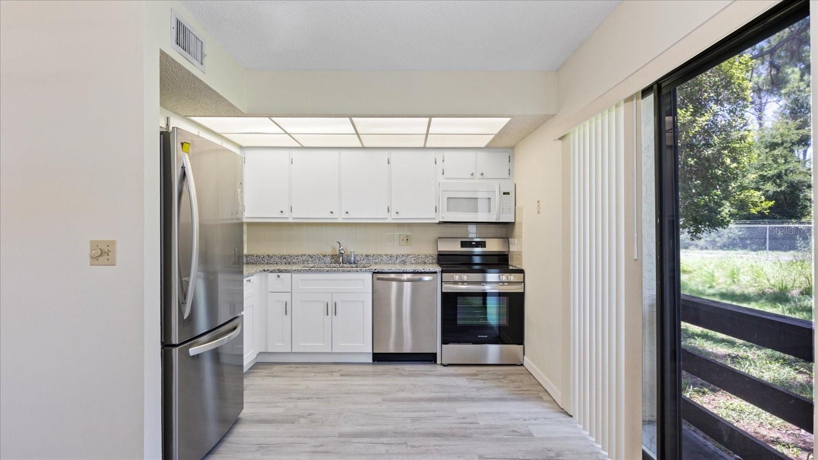 Welcome to Quails Run Condominiums a desirable 55+ community in beautiful Englewood, FL. This stunning 2-bedroom 2-bathroom condo offers a perfect blend of modern upgrades and serene surroundings. Just 5 miles from 3 beautiful beaches, this home is ideal for those seeking a relaxed coastal lifestyle. Inside you'll find new kitchen appliances, cabinets, and vinyl plank flooring, complemented by granite countertops and new window treatments. The bedroom closets feature built-ins for added convenience. Both bathrooms have been recently renovated, ensuring a fresh and contemporary feel. The back lanai overlooks a peaceful green belt, providing a tranquil retreat. Please note, some photos have been virtually staged to showcase the potential of this beautiful condo. Don't miss out on this fantastic opportunity to make Quails Run your new home!