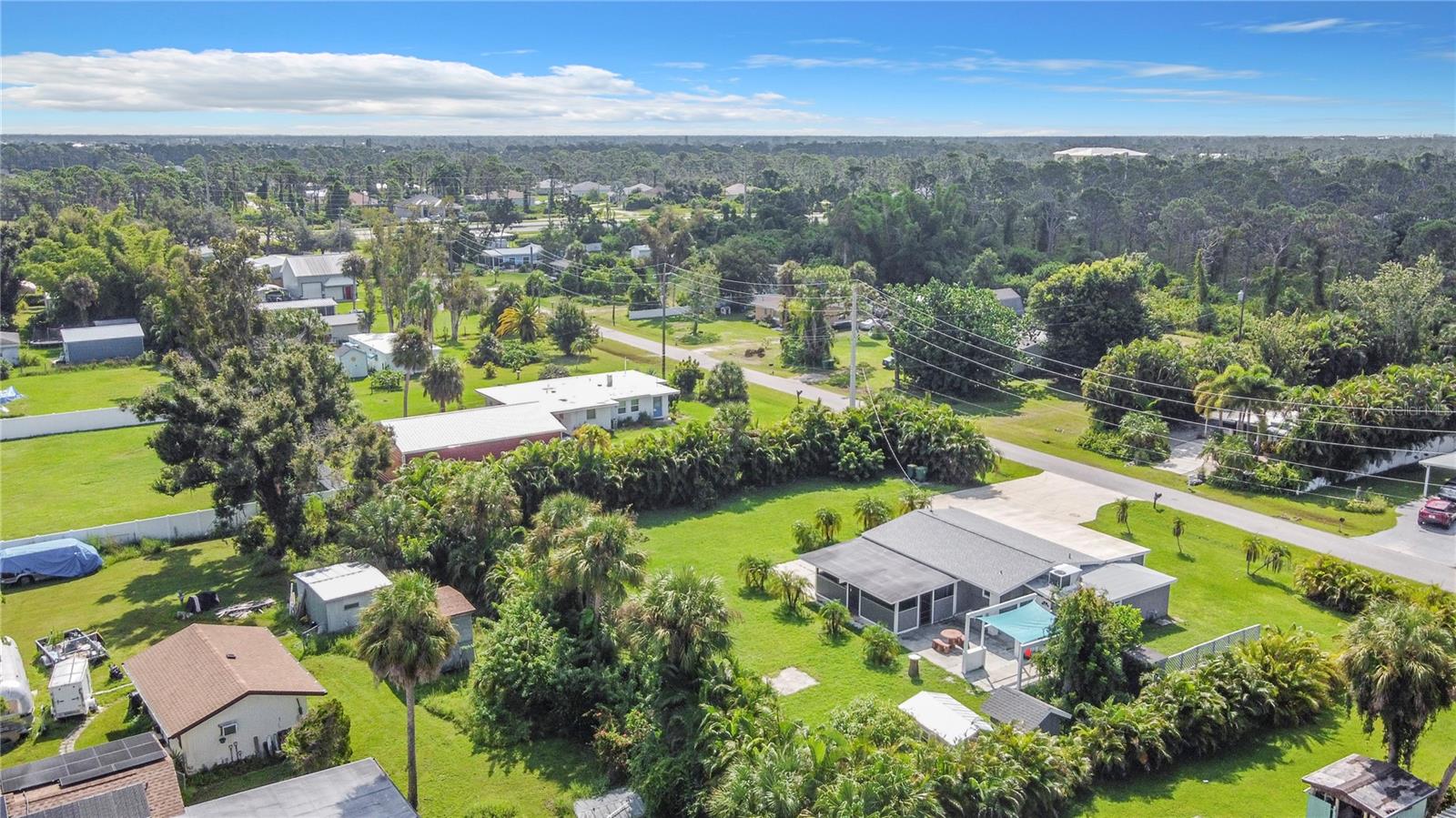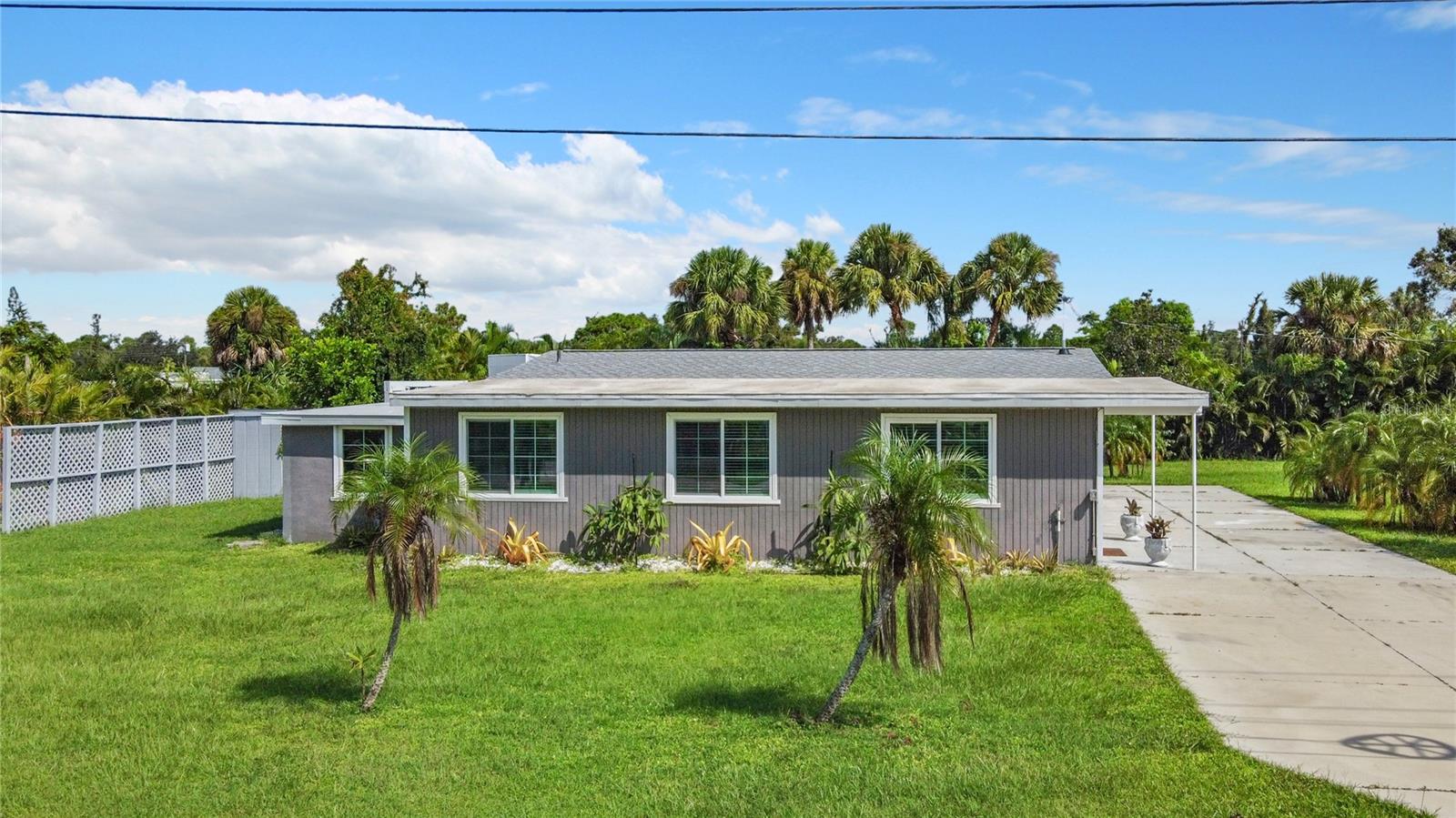 This beautifully revitalized 4-bed, 2-bath Florida home on a spacious half-acre lot offers modern updates and classic charm. Featuring a new roof, updated kitchen, new laminate floors throughout, and all-new appliances, this move-in ready gem includes a rescreened rear porch, a renovated exterior patio, and two exterior sheds for added storage. Fresh paint, both inside & out, makes this home shine; the large concrete driveway provides ample parking for all your toys, and the property is lined with palms for added seclusion. Located in a quiet neighborhood close to Englewood's beaches and attractions, this home is perfect for full-time or part-time living.