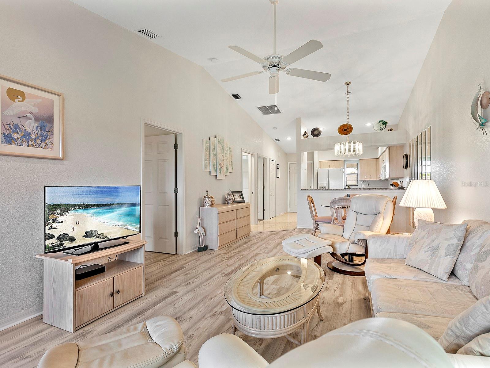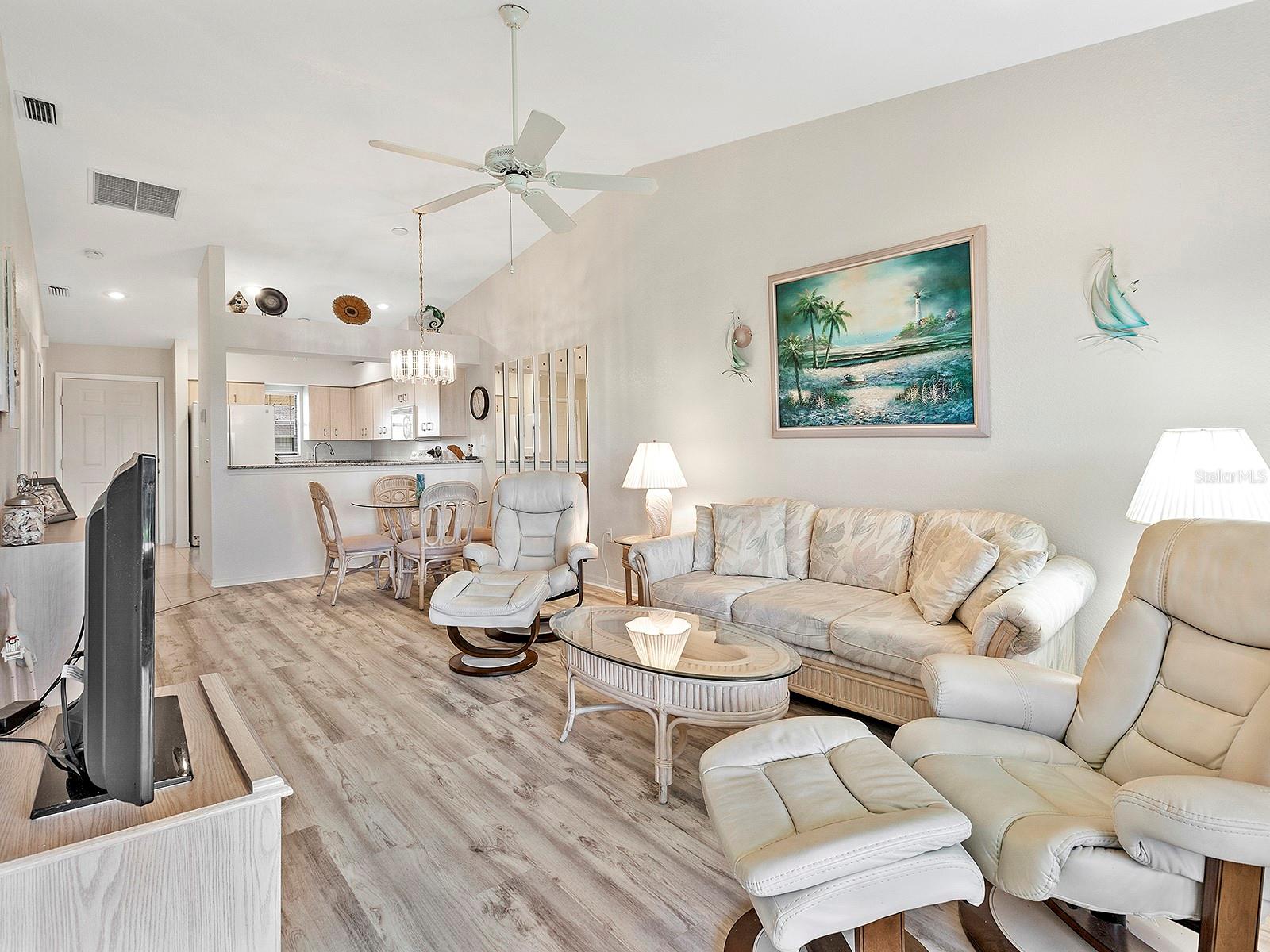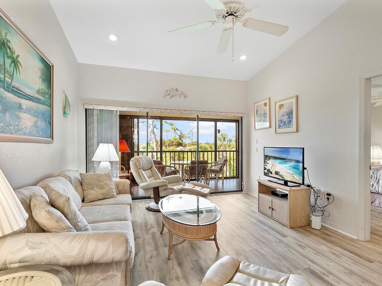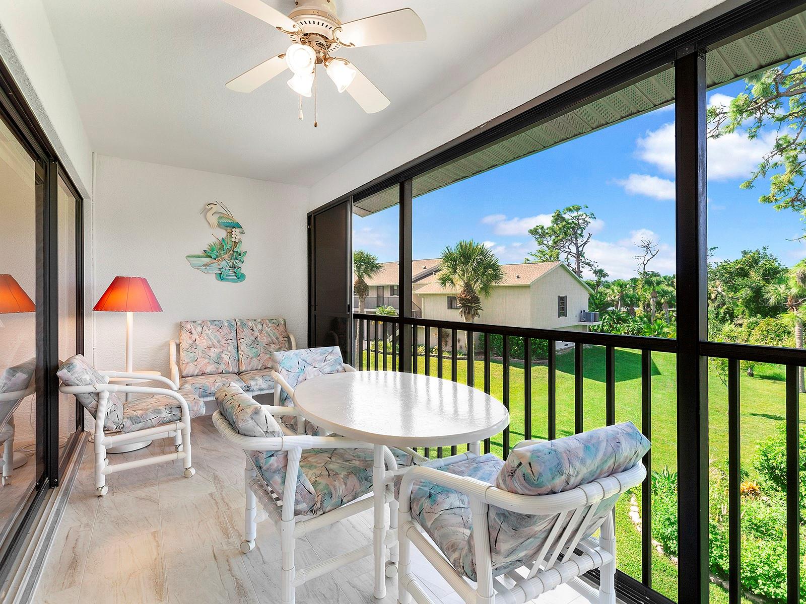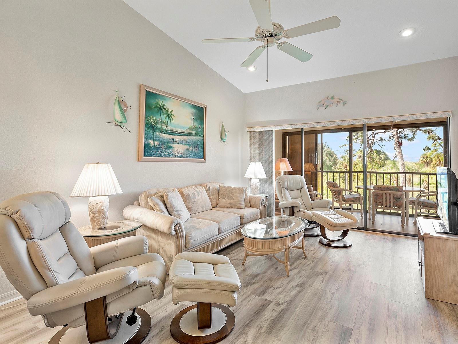 The lowest priced home with a garage in Forest Park! This charming home with cathedral ceilings is bright, sparkling clean, and ready for new owners. One of its most outstanding features is the full two-car garage—an uncommon and highly sought-after feature in condominium living—adding exceptional convenience and value. Thoughtfully updated, the home includes a brand new roof and soffits (2023), a new hot water heater (2024), elegant luxury vinyl tile flooring (2024), and striking granite countertops in the kitchen (2024). The expansive screened balcony, complete with new screens, provides a tranquil space to relax, offering unobstructed views of lush, county-owned land—a perfect retreat for morning coffee or evening sunsets. Forest Park's picturesque setting is accentuated by its beautifully manicured, tree-lined streets, mature landscaping, and recently painted buildings, all contributing to the neighborhood’s charm. Residents enjoy access to a variety of amenities, including a heated swimming pool, a well-appointed clubhouse, pickleball and tennis courts, and shuffleboard. With these offerings, the community creates an ideal environment for relaxation and recreation. Conveniently located just minutes from the pristine beaches of Boca Grande, premier shopping, fine dining, and top medical facilities, this home delivers the perfect combination of size, luxury, and location. Whether you're seeking a peaceful retreat or a well-connected base for an active lifestyle, this property offers it all. Don't miss out on this rare opportunity to own a home that provides exceptional value and a lifestyle that is second to none.