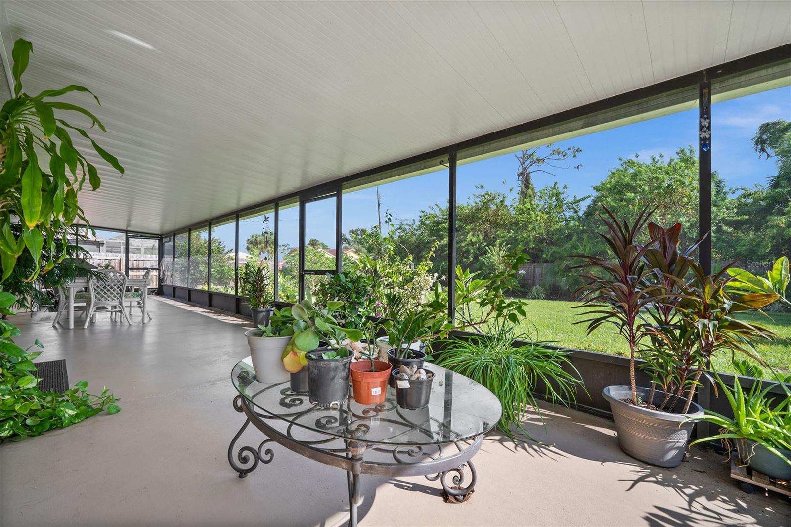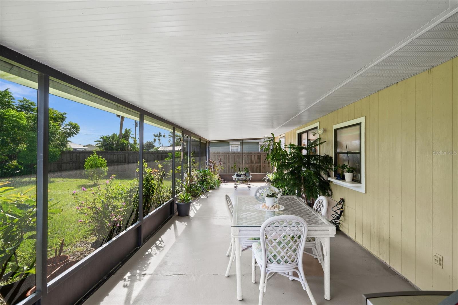 Welcome to this charming 2-bedroom, 2-bathroom home in Englewood, FL, offering both comfort and convenience! Step inside to find beautiful bamboo flooring throughout the living area, with tiled wet areas for easy upkeep. The vaulted ceiling in the living room creates an open, airy feel, while the large 11x50 lanai with a kitchen pass-thru is perfect for entertaining. The eat-in kitchen features stainless steel appliances, including a fridge, oven, and microwave, along with updated front and screen doors leading to the patio. The master bedroom boasts a spacious walk-in closet and an ensuite bathroom with a tub-shower combo and new toilet. A second bathroom includes a shower and new toilet as well. The home also features a dedicated 6x8 laundry room with cabinets, a washer and dryer, and an attached 1-car garage. Outside, enjoy the privacy of a fenced backyard with lush Areca palms, all while benefiting from recent updates like a 2020 A/C, a 2-year-old water heater, and a 2014 roof. Plus, the property is not in a flood zone, offers city water, and the septic system was pumped last year. With furniture included, this home is truly move-in ready!