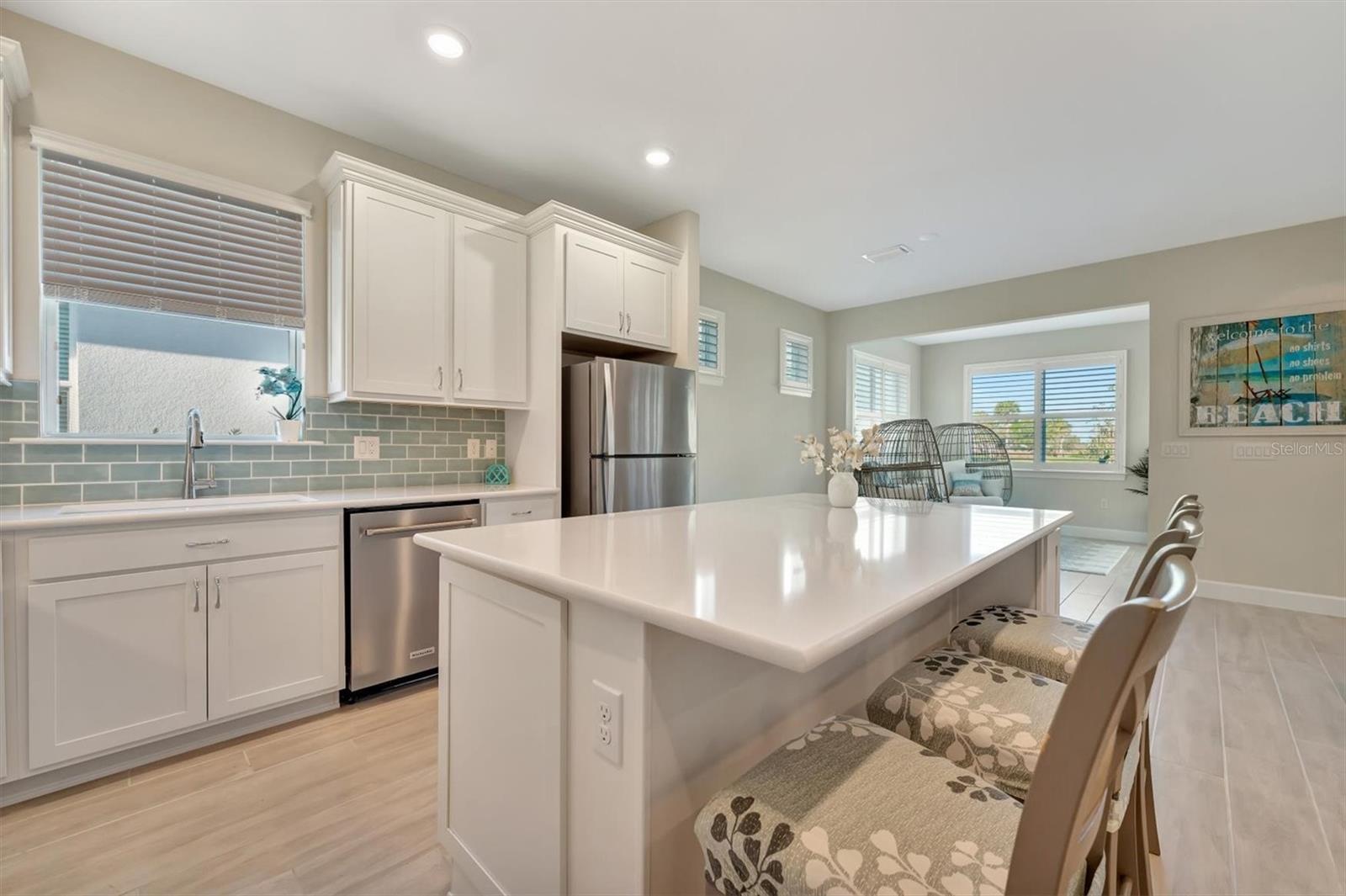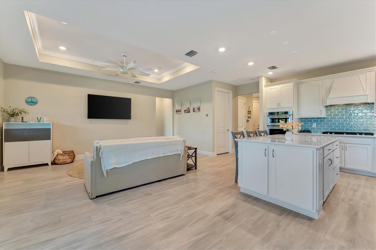 Welcome to Florida living at its Best! Don’t be stressed waiting for new construction, buy this 'like new' built in 2022 Prosperity model home situated on one of Beachwalk by Manasota Key's first fully finished street in this highly sought after gated community. Awesome Location! NO DAMAGE AT ALL WITH ANY OF THE HURRICANES. ONLY 2.5 MILES TO THE BEACH! Offering 3 bedroom 2 bath & a sun room overlooking the beautiful lake. Love to entertain? This large kitchen offers it all. 42" white cabinets, lovely center island, Quartz countertops plus a full stainless steel 'Whirlpool' appliance package that is attached to the gathering room with a separate dining area. Don't forget about the additional Sunroom which adds to the wealth of space. Upgraded laundry room with sink & extra cabinets, Sit & enjoy the tranquility of the Waterview from your extended lanai and bring the outside in and where you can watch the amazing sunrises every morning. Plenty of room for a Pool. Retreat to the owner’s spacious ensuite featuring a large bathroom with double sinks, granite counters, wall to ceiling tiles in the XL walk-in shower, tray ceilings & walk-in closet. Home comes complete with lots of upgrades - Level 6 plank tiling throughout the home, Natural gas heating & cooking, high ceilings with 8’ doors, Smart home, 4ft extension garage with Epoxy flooring, attic with pull down stairs, fenced yard, alarm system with mounted cameras, tankless hot water heater & Plantation shutters & blinds. The Country Club style amenities cater to your own personality. Featuring the resort style pool with a waterfall, beach entry and attached lap pool with multiple swim lanes. Take a stroll on the boardwalk overlooking the pool & the lake. The 21 sports courts for Pickleball, Tennis & Bocce Ball and the state of the art Fitness Center are perfect for the athlete in you, also classes are offered. Coming soon: Cafe ´ for sandwiches/refreshments and a brand new community 'poolside' Restaurant. Additional perks are a small & large dog park, community garden beds, a veteran’s memorial garden, miles of trails and a FULL TIME ACTIVITY DIRECTOR. Close to shopping, delicious restaurants, beaches and all the activities SW Florida has to offer. Don’t miss out on living in paradise on the beautiful quiet street. Please call for your private showing!