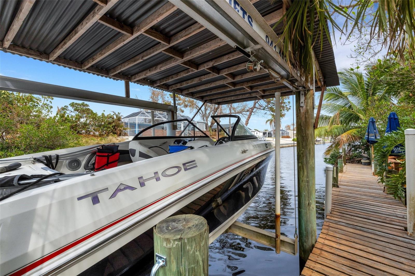 Discover your dream waterfront oasis with this exquisite canal-front home, perfectly situated with direct boat access to Lemon Bay and the Gulf of Mexico. Offering 3 spacious bedrooms, 2 baths, an office/den, and an oversized two-car garage, this beautifully appointed property has everything you need for comfortable living and entertaining. Enjoy the recently resurfaced heated pool, a 60-foot dock with a covered 10,000-pound boat lift, and, included with the property, a 2016 20-foot Tahoe boat in excellent condition, powered by a 150 Mercury 4-stroke motor – ready for all your on-the-water adventures! <br> <br> Dock your boat in your backyard and reach the open blue waters of the Gulf of Mexico within minutes. Set on over a quarter-acre, the large lot boasts lush, native Florida landscaping, featuring vibrant bromeliads, blooming plumerias, and a mature Valencia mango tree, creating a private, tropical retreat. The spacious garage, with 12-foot ceilings and a 10-foot-high door, can accommodate larger vehicles and offers ample storage space for your equipment and gear. <br> <br> Inside, this home is equipped with modern amenities, including newer appliances such as a dishwasher, stove, refrigerator, microwave, washer, and dryer – all designed for ease and efficiency. The kitchen features convenient slide-out drawers and plenty of storage, ideal for the avid cook. Recent updates ensure peace of mind, with a new garage roof (2024) and a new AC unit (2022). The main bathroom has been elegantly remodeled with a walk-in shower, adding a luxurious touch. <br> <br> Step outside to find the perfect space for relaxation, with a sparkling heated pool and an outdoor shower for refreshing after a day of boating. The 60-foot dock, complete with a boat lift and new motor, makes getting on the water effortless. This home is just two miles from Englewood Beach, with easy access to local restaurants and boutique shops in downtown Englewood. Only 15 minutes from the pristine beaches of the Gulf, this home is ideal for boating enthusiasts and beach lovers alike. <br> <br> Blending luxury, practicality, and convenience, this canal-front home is perfect for a year-round residence or a serene vacation escape. Don’t miss the chance to make this slice of paradise your own!