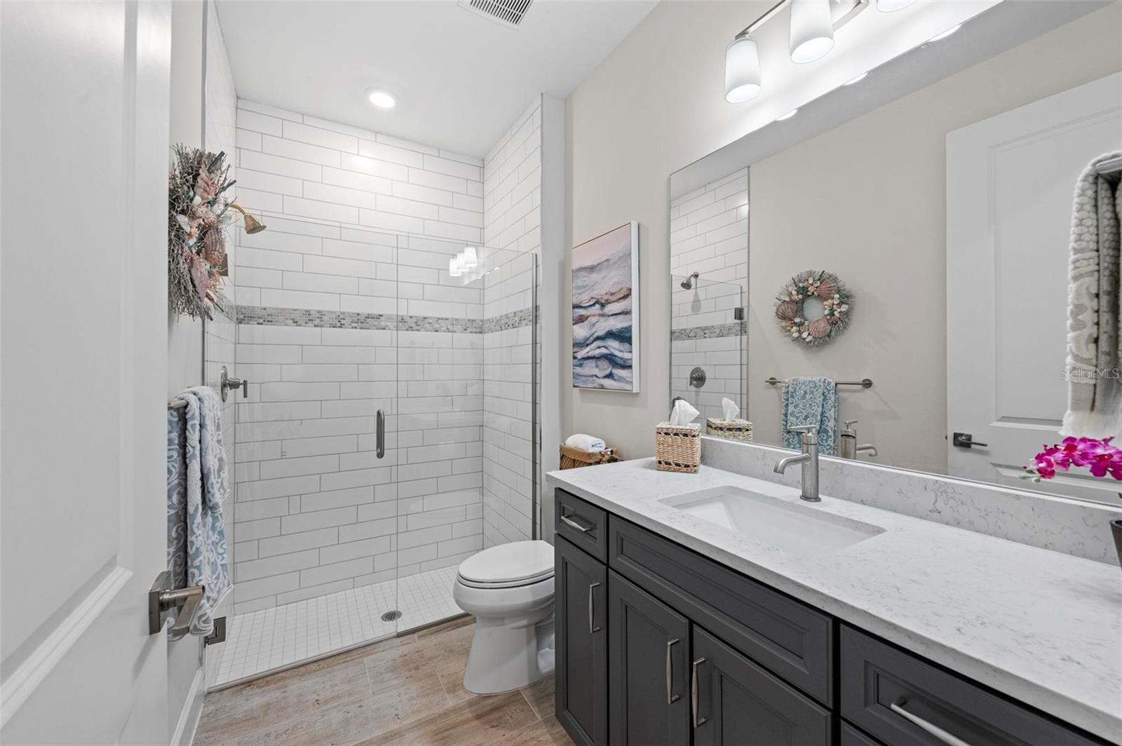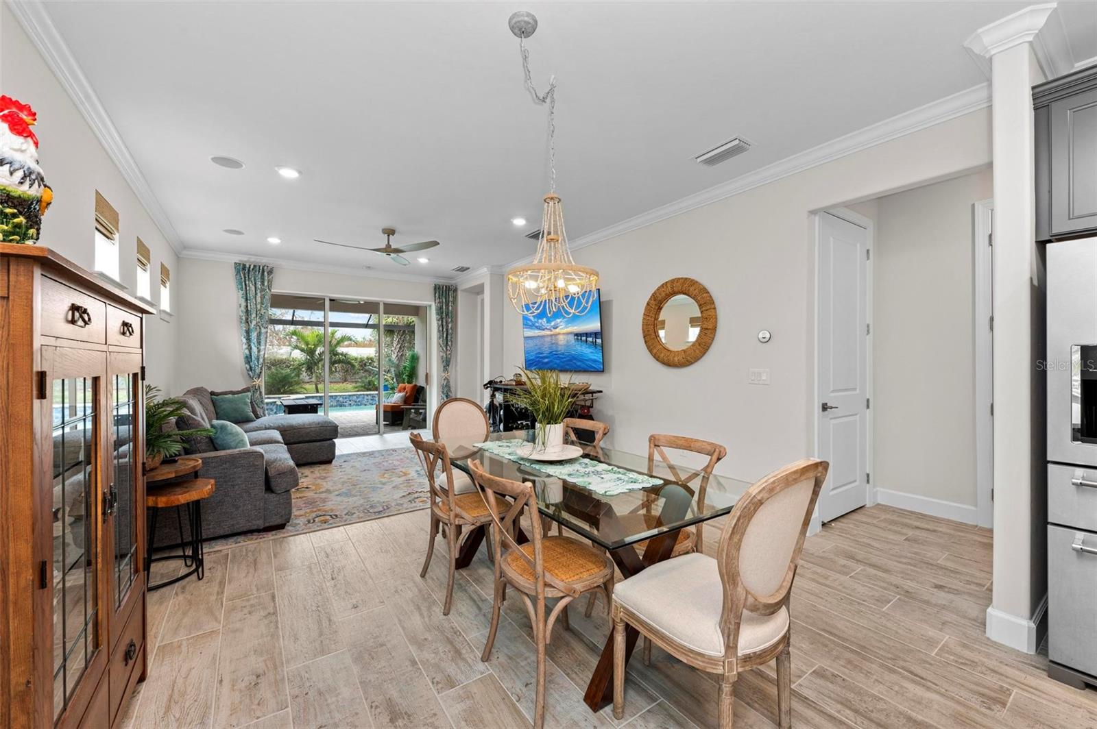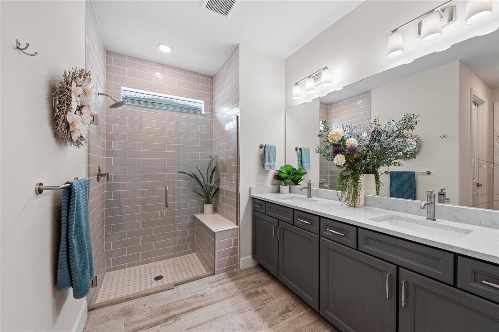 REDUCED** SELLERS MOTIVATED**TURNKEY FURNISHED and $200K in Upgrades in This Stunning Home! The sellers have truly thought of everything in this beautifully upgraded home located in Beachwalk of Manasota Key. Starting with an extended pavered driveway, a screened-in entry, and lush landscaping featuring 11 elegant palms, this property offers incredible curb appeal. Inside, you’ll find ceramic Level 6 wide plank tile flooring throughout, complemented by crown molding and custom touches such as rounded corner walls and upgraded lighting. The gourmet kitchen is perfect for entertaining, and the glass front door and custom windows add elegance throughout. Kitchen has large island with beautiful and smooth cashmere oro quartz (matte), upgraded Kitchenaid appliances, 5 Burner GAS Stovetop, custom backsplash, cabinet hooded vent and upgraded dark gray cabinetry with soft close and pull out drawers. The upgraded laundry room includes built-in cabinets and a sink, while the guest bath features a luxurious walk-in shower. Master en suite has upgraded gray dual vanity, walk in shower with subway tile to ceiling and glass frameless door. Glass french doors on den or 3rd bedroom alos with walk in closet. Home also boasts 5" baseboards and 8' solid interior doors. The garage offers a 4-foot extension with overhead racks for additional storage. The home is equipped with a tankless water heater and smart home features for modern convenience. Step outside to your very own lanai oasis, complete with a $125K heated saltwater pool and spa, a clear view screen, and a 4-foot lanai extension—perfect for relaxing and enjoying Florida living at its finest. Guard Gated and Resort style community complete with: RESORT STYLE POOL with lap lanes, SPA, TENNIS, BOCCE BALL, PICKLEBALL, FITNESS CENTER, COFFEE/SMOOTHIE BAR, and soon it's very own RESTAURANT/TIKI BAR (early 2025). Make friends easily in this very social community where golf carts can be driven to area beaches and you are only minutes from Downtown Wellen Park to the East, Downtown Venice Avenue to the North or Downtown Dearborn Street to the South!