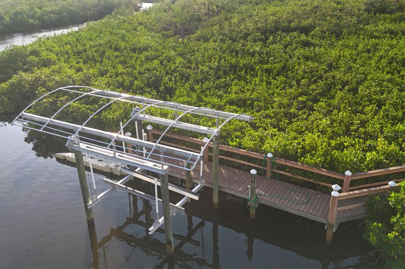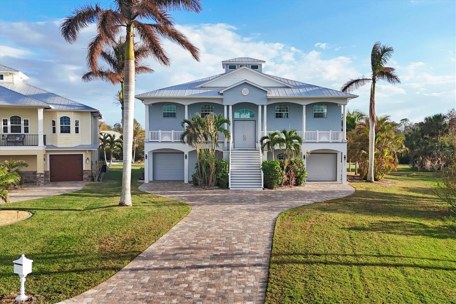 Motivated Seller! A Luxury Statement of Waterfront Living! POOL HOME! FULLY FURNISHED! Public Water and Public Sewer! GREAT ELEVATION! GATED!ONE OF THE KIND!It is located in Hidden Waters, a gated waterfront subdivision on Oyster Creek. NEW impeccable 2-Story Key West Style Beauty nestled along Oyster Creek behind the gates of the exclusive Hidden Waters Subdivision. Spacious custom 4 BR, 3½ BA home with contemporary flair built to the newest hurricane and energy efficiency standards. Solid concrete foundation with fully enclosed 2+ car garage. Elegant split entry stairs leading to spacious, wide open living area with gas fireplace and glass sliders opening to the huge 56x13 ft. A 2-story cage embraces the heated 34-foot pool, Jacuzzi & outdoor gas fire pit. Kitchen with bar island next to dining area. Also on main floor: office with French doors, powder room, large laundry and a spacious master suite with drop-dead gorgeous bath w/shower & tub, plus two custom WICs. Downstairs are 3 guest bedrooms, 2 bath & a lounge. All downstairs bedrooms with custom WIC & direct access to pool & large sundeck. Same neutral 20” tile throughout the whole house, all doors and sliders 8 ft. high, & all bedrooms with tray ceilings. There is a little beach area with Coconut Palms, a bond fire pit, & a long walk way leading through a mangrove belt to the private boat dock with a new 7000 LB boatlift. Short 3600-foot boat ride to the Intracoastal Waterway & beaches. Discover the nearby pristine Gulf beaches, where you can bask in the sun, partake in water activities, or simply relish the tranquility of the ocean. Embark on nautical adventures from the conveniently located marinas, allowing you to explore the region's captivating waterways and nearby islands. Fishing enthusiasts will delight in the world-class fishing opportunities, while golf enthusiasts can indulge in a variety of renowned golf courses.Englewood is known for its thriving shopping and dining scene, featuring a diverse range of retail centers, boutiques, and restaurants. Immerse yourself in the vibrant downtown area, boasting charming shops, art galleries, and entertainment venues. The city hosts numerous cultural events, festivals, and community gatherings throughout the year, ensuring there's always something exciting happening. Beyond the city's amenities, this vacant lot offers proximity to breathtaking nature parks and preserves. Englewood also boasts excellent educational institutions, reliable medical facilities, and convenient transportation options. The city's welcoming community and strong sense of belonging make it an ideal place to establish roots and create lasting memories. Experience the best of Florida living, with nearby beaches, golf courses, and outdoor recreational activities just a short drive away. Don't miss out on the chance to own this extraordinary home.