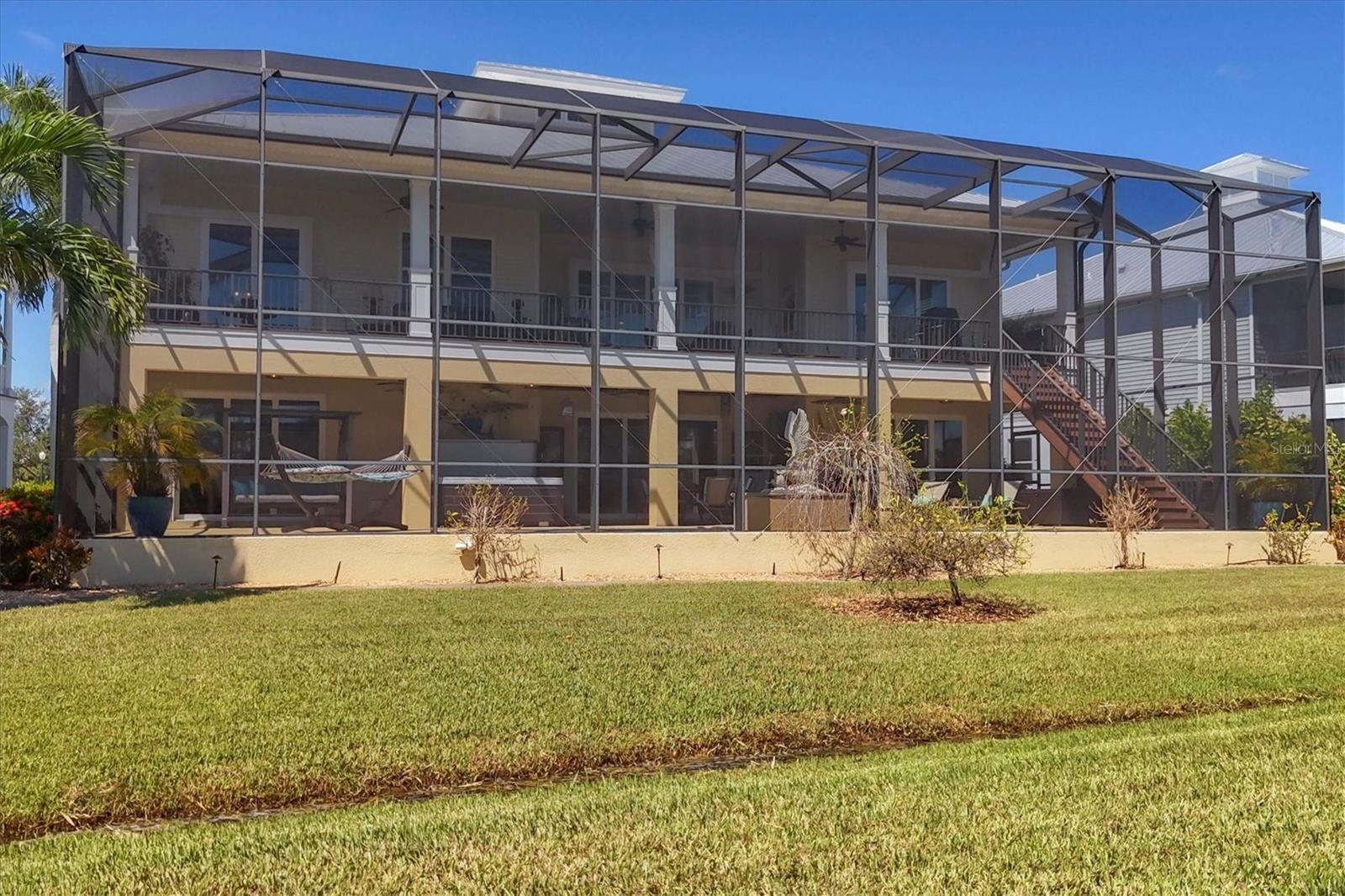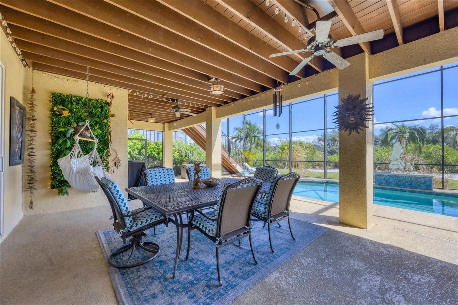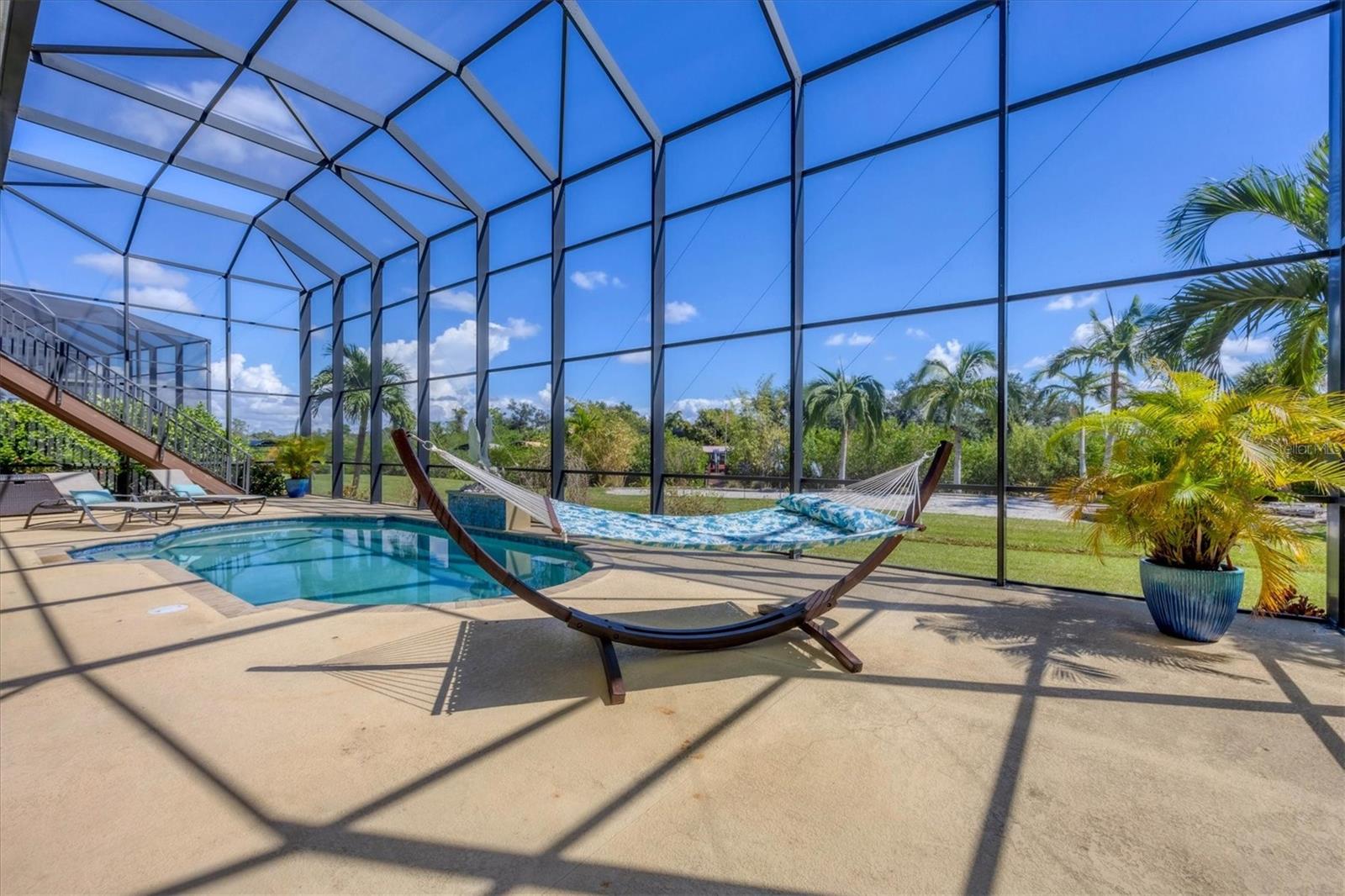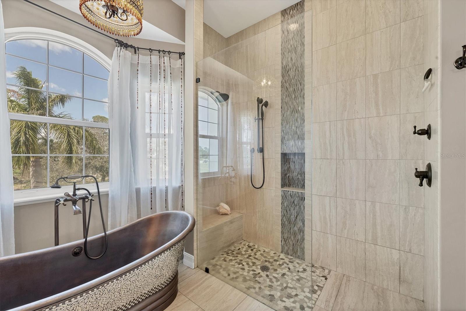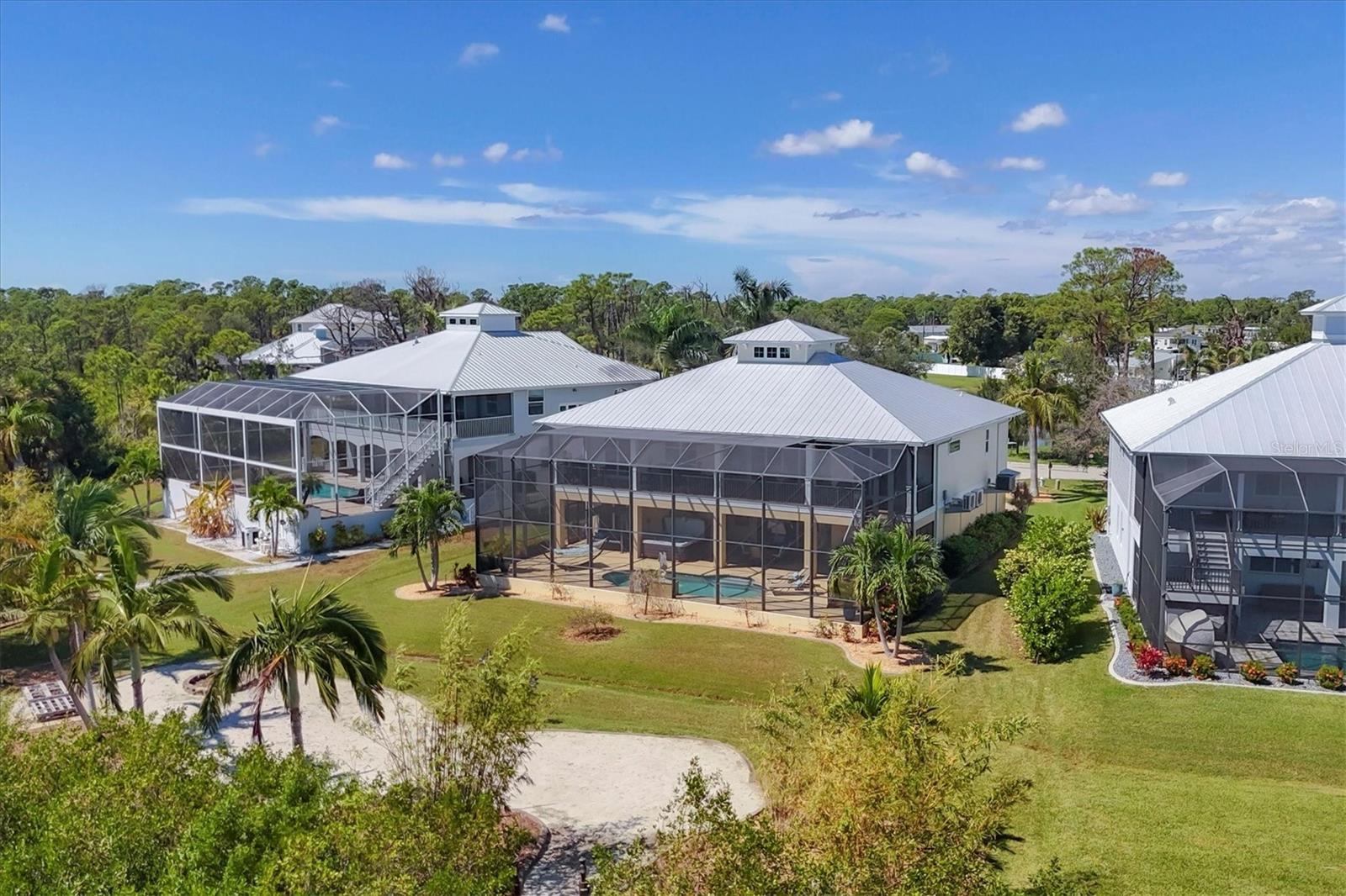 Welcome to Hidden Waters, an exclusive gated community featuring just 19 exceptional properties. This stunning executive retreat, crafted by the renowned custom builder Antony Fiore, truly exemplifies luxury living. Set on over half an acre, this home boasts a magnificent saltwater heated pool and an impressive 180 feet of water frontage along the picturesque Oyster Creek. The property includes a 30-foot dock and a 10,000-pound boat lift, giving you direct access to the Intracoastal Waterway and the Gulf of Mexico—perfect for world-class fishing, boating, and sunbathing. Every detail of this residence has been meticulously designed, ensuring that no expense was spared in creating your own personal paradise. Welcome home! As you approach the welcoming front entrance, you'll be greeted by a spacious paver driveway surrounded by lush tropical landscaping. The grand staircase evokes the timeless charm of classic southern architecture, reminiscent of the grandeur seen in "Gone with the Wind." This stunning entry sets the tone for the luxurious living that awaits inside. Entering the home from the ground-level entry, you'll discover a modern elevator and a staircase leading to the main living level. Alternatively, you can enjoy the spacious three-car garage and a 1,300-square-foot bonus room, complete with a half bath and breathtaking views of the tropical landscaping, heated pool, and sandy beach fire pit. Upon reaching the main living area, you're greeted by stunning custom African Acacia wood flooring that flows seamlessly throughout the home, including the bedrooms. The living room features a striking Dominican Coral stone wall, complete with an electric fireplace and built-in TV insert, making it a perfect gathering space. This well-appointed 3 Bedroom plus Den with a murphy Bed is a big plus. A magnificent ceiling cupola adds an elegant touch to the ambiance. The gourmet kitchen is a chef's dream, featuring a beautiful shell backsplash, a large Quartzite island, stainless steel appliances, a built-in microwave, and a wine cooler. Retreat to the Grand Master Suite, where you'll find a spectacular copper soaking tub fit for royalty, a frameless glass shower, and double vanities, creating a serene and luxurious personal oasis. The expansive upper porch, stretching 60 feet, is the perfect spot to relax, entertain, or simply unwind while taking in the stunning views of your meticulously manicured estate. Your Pebble Tec pool adds to the luxurious outdoor experience. Safety is paramount here, with all doors and windows featuring impact-resistant glass for peace of mind. Just a few steps down the cul-de-sac, you can access the beautiful Oyster Creek Park, offering a serene escape with miles of walking paths through nature. Enjoy the perfect blend of luxury living and natural beauty right at your doorstep!
