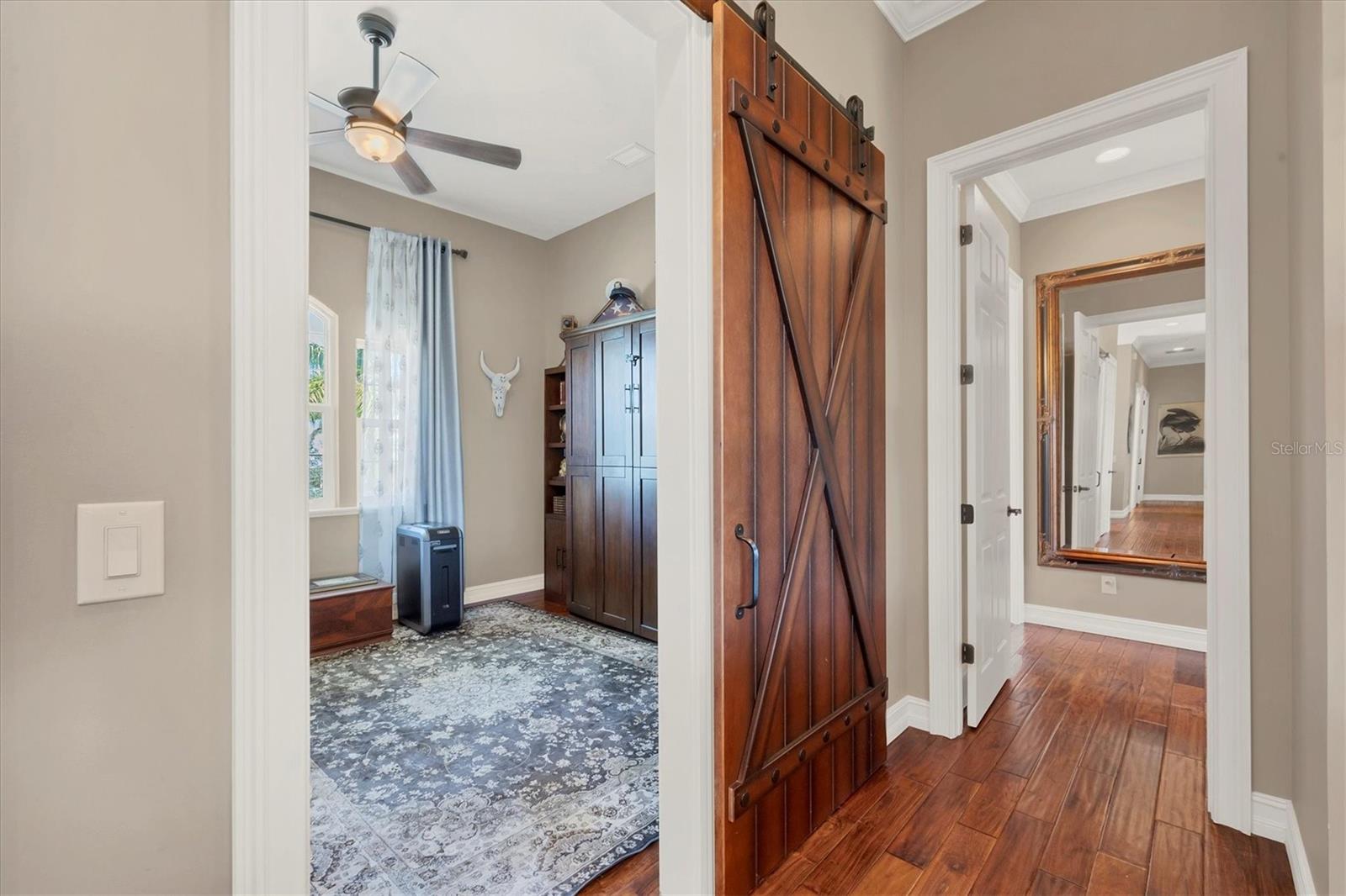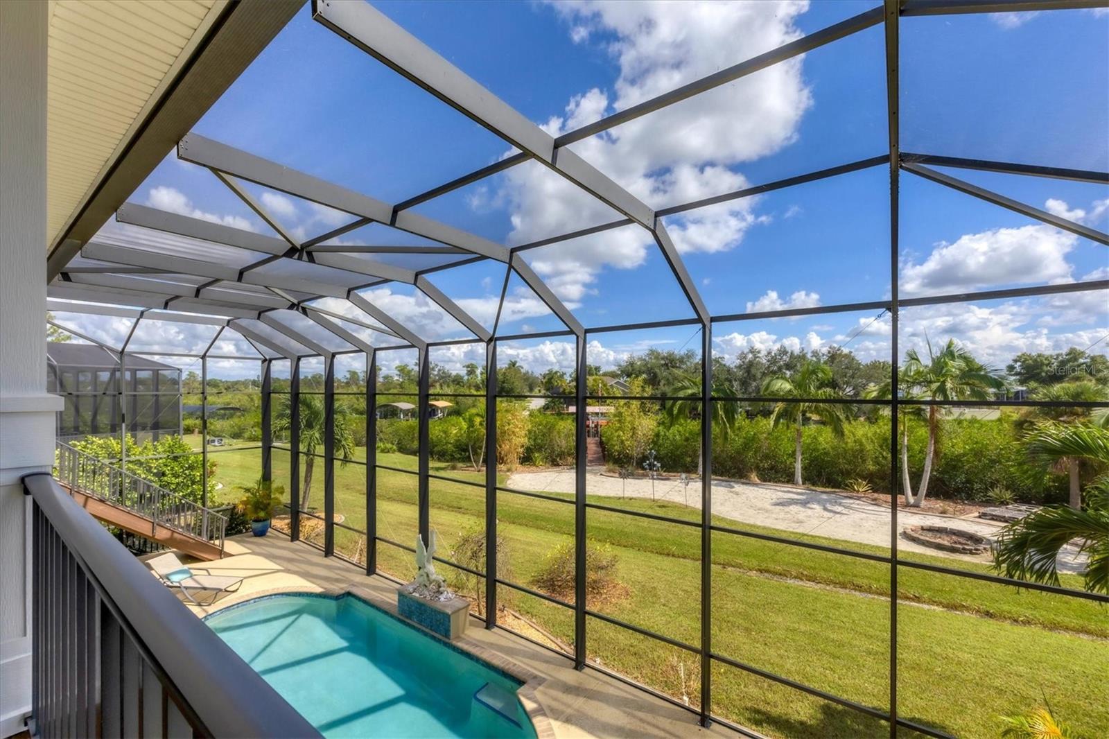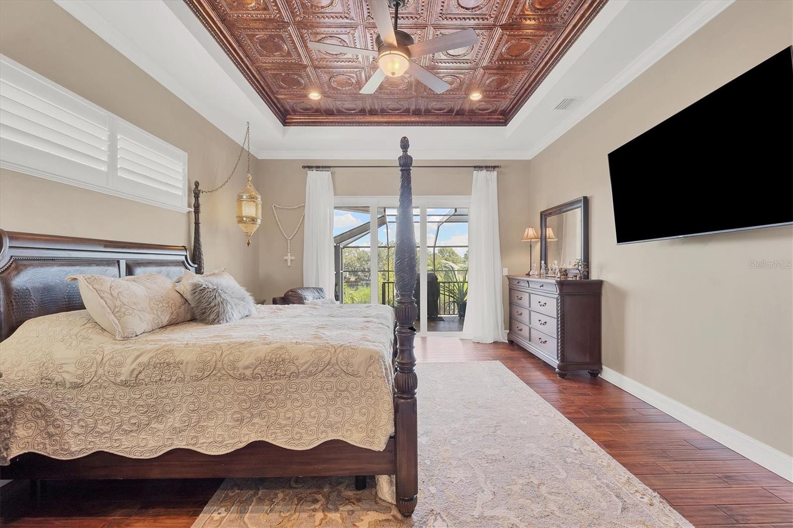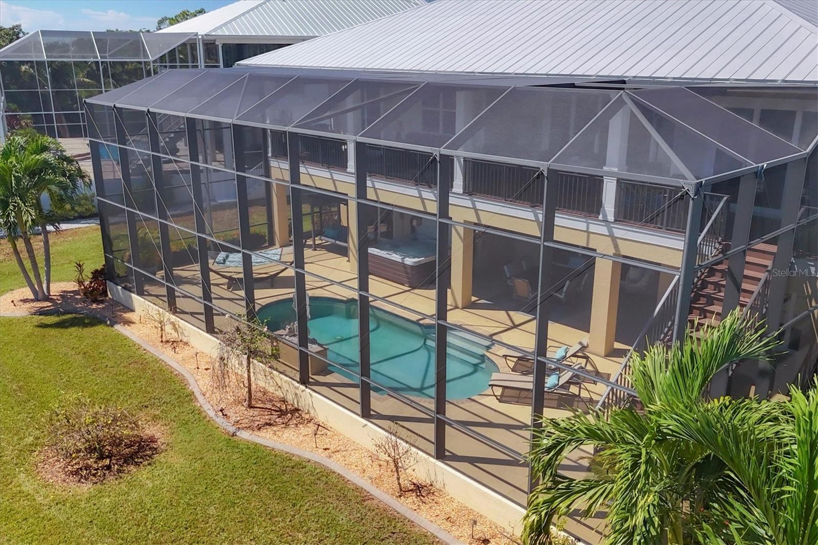 Welcome to Hidden Waters, an exclusive gated community featuring just 19 exceptional properties. This stunning executive retreat, crafted by the renowned custom builder Antony Fiore, truly exemplifies luxury living. Set on over half an acre, this home boasts a magnificent saltwater heated pool and an impressive 180 feet of water frontage along the picturesque Oyster Creek. The property includes a 30-foot dock and a 10,000-pound boat lift, giving you direct access to the Intracoastal Waterway and the Gulf of Mexico—perfect for world-class fishing, boating, and sunbathing. Every detail of this residence has been meticulously designed, ensuring that no expense was spared in creating your own personal paradise. Welcome home! As you approach the welcoming front entrance, you'll be greeted by a spacious paver driveway surrounded by lush tropical landscaping. The grand staircase evokes the timeless charm of classic southern architecture, reminiscent of the grandeur seen in "Gone with the Wind." This stunning entry sets the tone for the luxurious living that awaits inside. Entering the home from the ground-level entry, you'll discover a modern elevator and a staircase leading to the main living level. Alternatively, you can enjoy the spacious three-car garage and a 1,300-square-foot bonus room, complete with a half bath and breathtaking views of the tropical landscaping, heated pool, and sandy beach fire pit. Upon reaching the main living area, you're greeted by stunning custom African Acacia wood flooring that flows seamlessly throughout the home, including the bedrooms. The living room features a striking Dominican Coral stone wall, complete with an electric fireplace and built-in TV insert, making it a perfect gathering space. This well-appointed 3 Bedroom plus Den with a murphy Bed is a big plus. A magnificent ceiling cupola adds an elegant touch to the ambiance. The gourmet kitchen is a chef's dream, featuring a beautiful shell backsplash, a large Quartzite island, stainless steel appliances, a built-in microwave, and a wine cooler. Retreat to the Grand Master Suite, where you'll find a spectacular copper soaking tub fit for royalty, a frameless glass shower, and double vanities, creating a serene and luxurious personal oasis. The expansive upper porch, stretching 60 feet, is the perfect spot to relax, entertain, or simply unwind while taking in the stunning views of your meticulously manicured estate. Your Pebble Tec pool adds to the luxurious outdoor experience. Safety is paramount here, with all doors and windows featuring impact-resistant glass for peace of mind. Just a few steps down the cul-de-sac, you can access the beautiful Oyster Creek Park, offering a serene escape with miles of walking paths through nature. Enjoy the perfect blend of luxury living and natural beauty right at your doorstep!