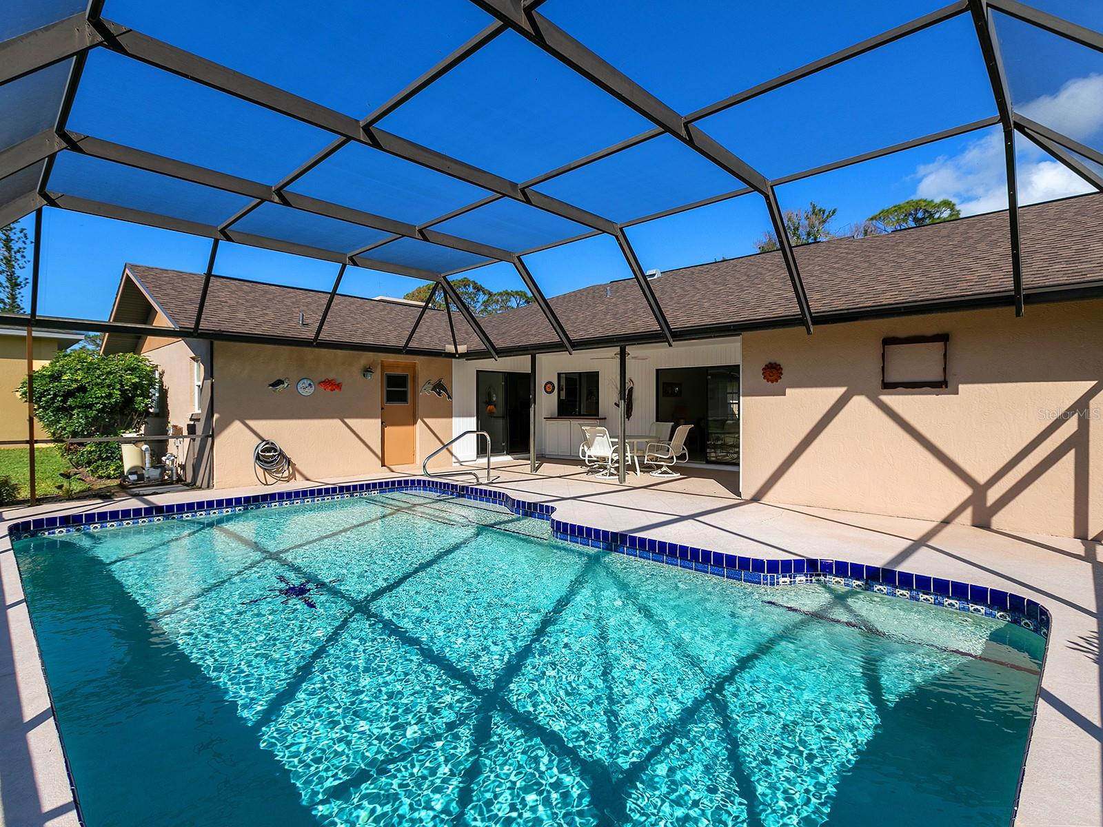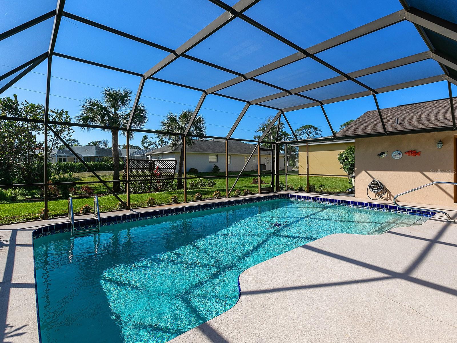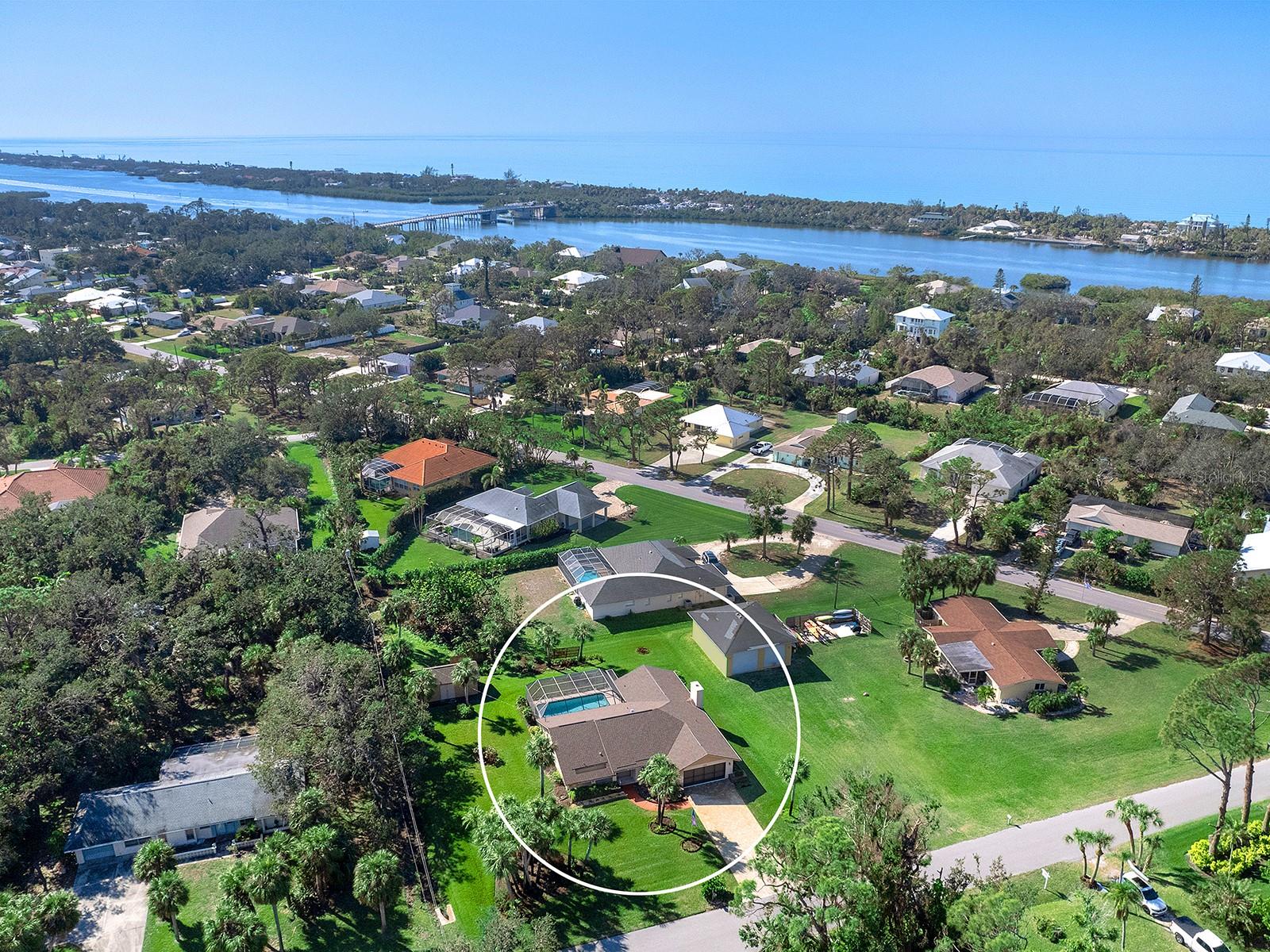 On nearly half-an-acre and less than one mile from Manasota Beach, this two-bedroom, two-bath pool home is sure to please. Some of the upgrades include a new air conditioner in 2024, a new roof in 2022, a large shed with electric in the beautiful backyard, granite counters in the kitchen and accordion shutters on the front door. Buyers will love this split-bedroom floorplan, with a huge primary suite and walk-in closet, a guest wing providing a large and private bedroom and guest bath accessible from the pool area as well. The family room showcases striking exposed wood beams and a wood-burning fireplace, creating a warm and inviting atmosphere. In a peaceful, friendly neighborhood, this home is just minutes from the shopping and dining options on Jacaranda Boulevard, historic downtown Englewood and downtown Wellen Park, plus top-rated medical facilities, and world-class fishing and golf. Don't miss this exceptional opportunity to own a home in one of the area's desirable locations.