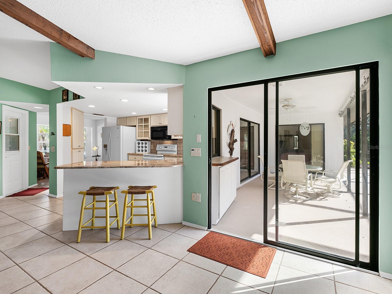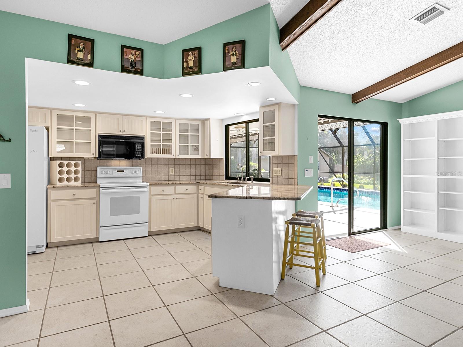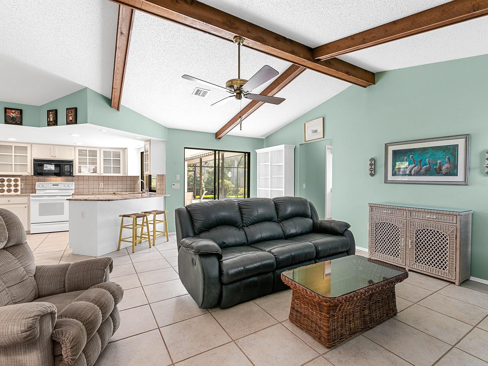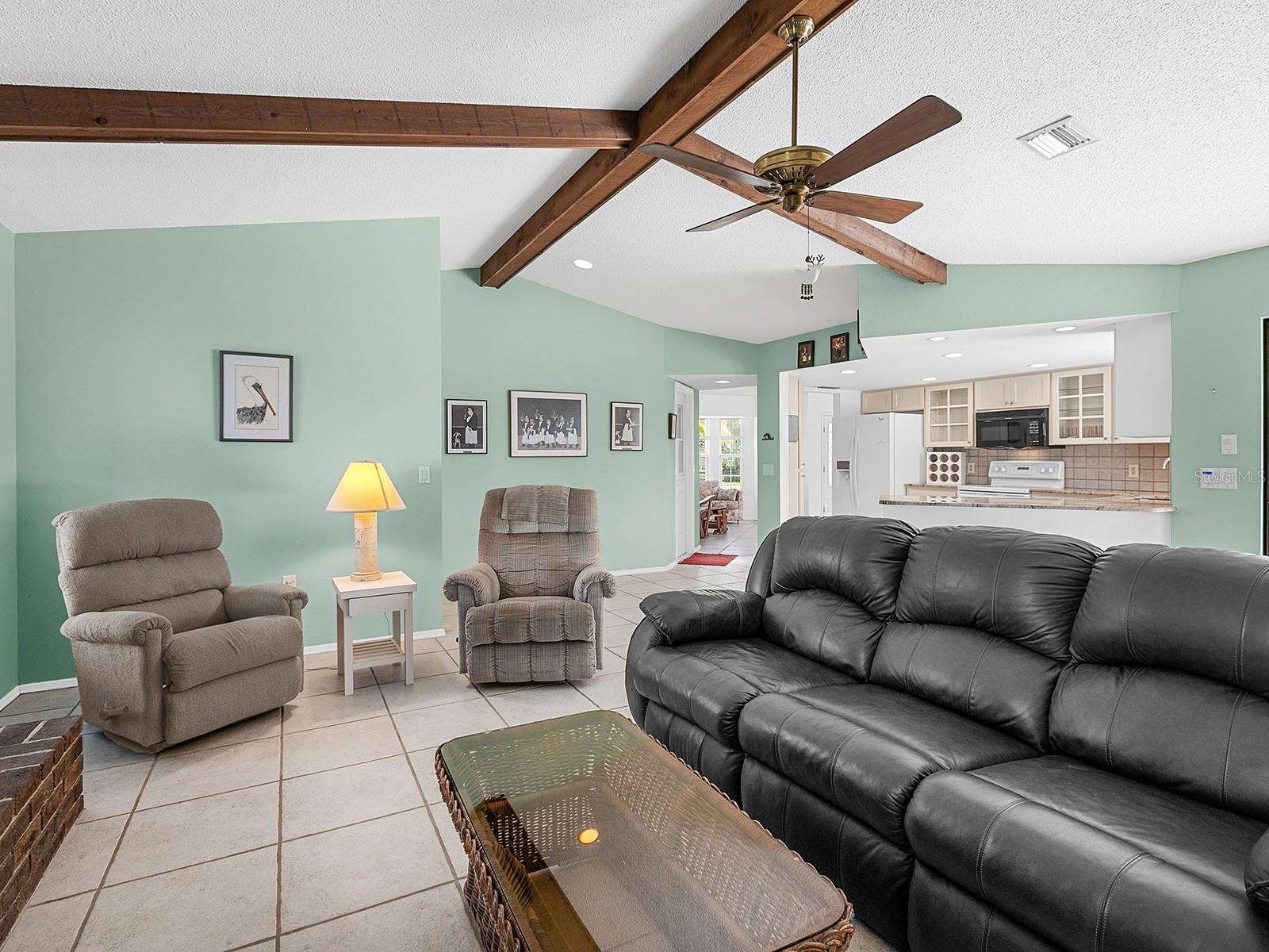 On nearly half-an-acre and less than one mile from Manasota Beach, this two-bedroom, two-bath pool home is sure to please. Some of the upgrades include a new air conditioner in 2024, a new roof in 2022, a large shed with electric in the beautiful backyard, granite counters in the kitchen and accordion shutters on the front door. Buyers will love this split-bedroom floorplan, with a huge primary suite and walk-in closet, a guest wing providing a large and private bedroom and guest bath accessible from the pool area as well. The family room showcases striking exposed wood beams and a wood-burning fireplace, creating a warm and inviting atmosphere. In a peaceful, friendly neighborhood, this home is just minutes from the shopping and dining options on Jacaranda Boulevard, historic downtown Englewood and downtown Wellen Park, plus top-rated medical facilities, and world-class fishing and golf. Don't miss this exceptional opportunity to own a home in one of the area's desirable locations.