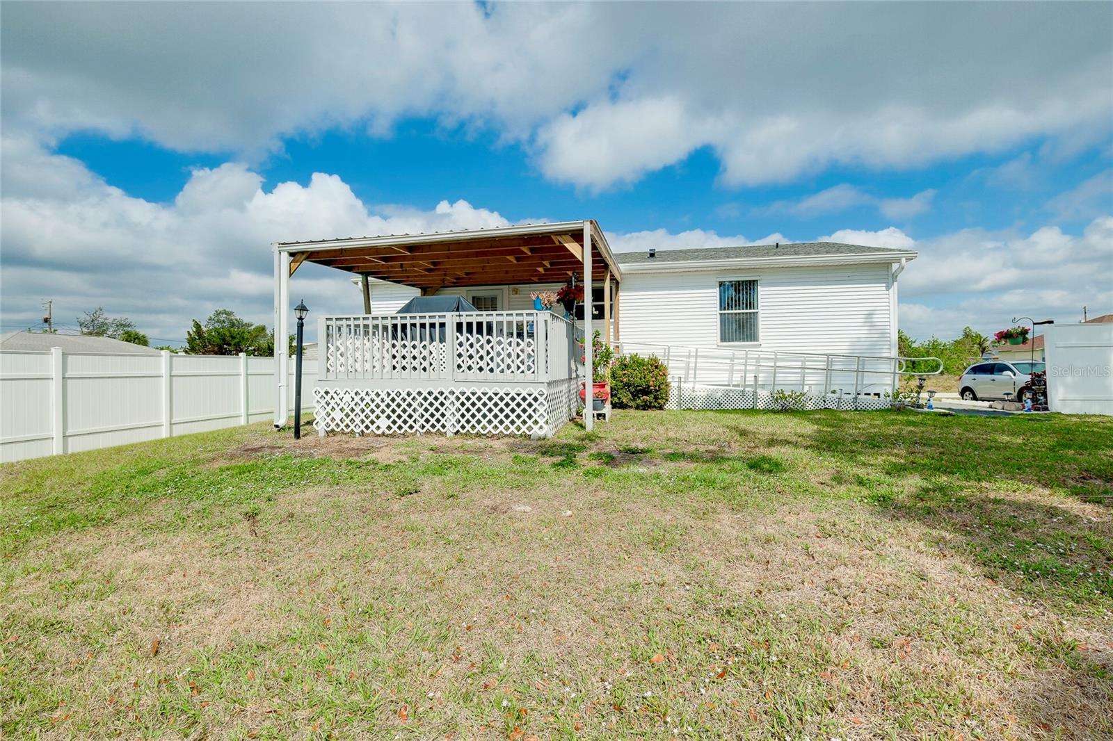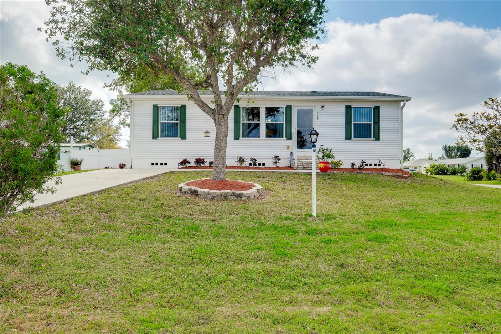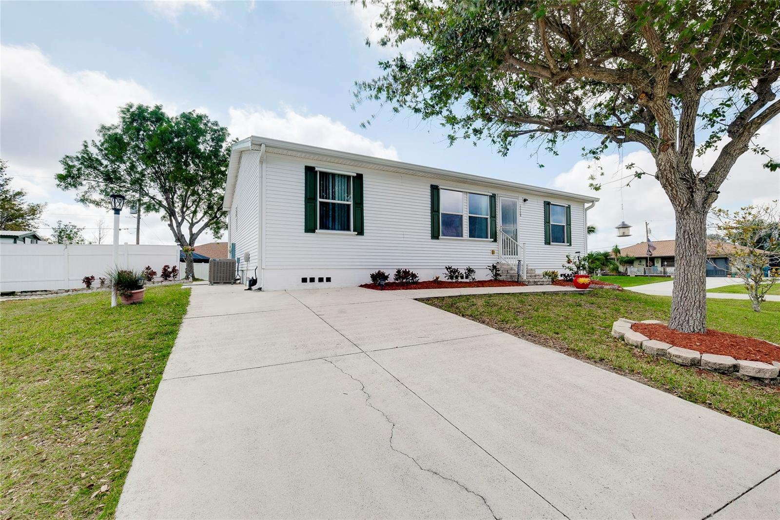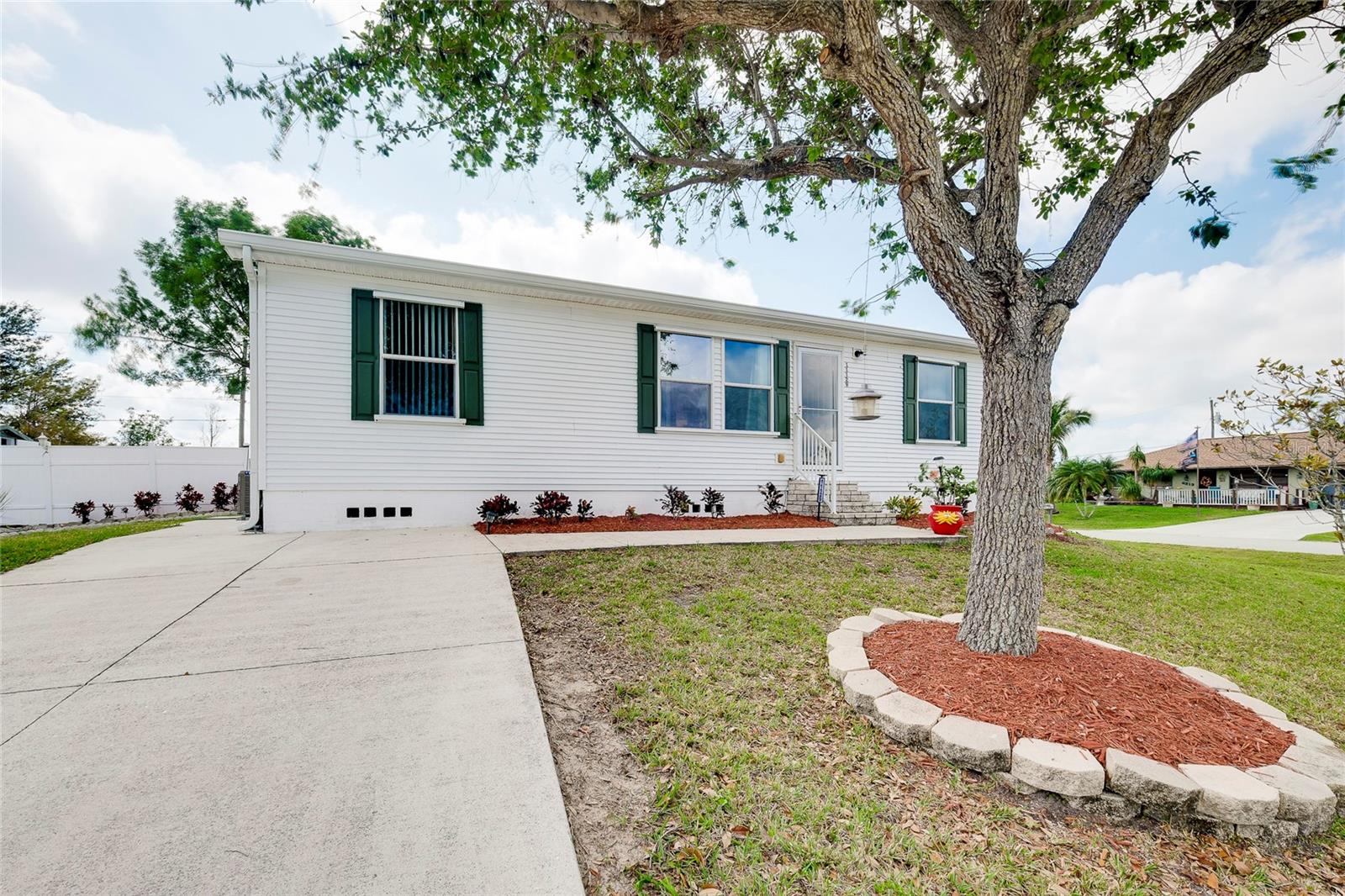 This charming 3-Bedroom Modular Home on a Double Corner Lot – Move-In Ready! Perfect Snowbird retreat or your perfect starter home. Discover this well-maintained 3-bedroom, 2-bathroom modular home, built in 2005 on a permanent foundation, situated on a spacious double corner lot in an established, quiet neighborhood. This home offers peace of mind with a new roof and new A/C in 2021, plus newer windows for energy efficiency this home was designed to withstand up to 150 mph wind. Inside, you'll find a vaulted ceiling in the main living area, creating a bright and open feel. The split floor plan provides privacy, while the open kitchen, dining, and living space makes entertaining a breeze. Enjoy outdoor living on the rear deck, complete with a wheelchair ramp on the side for easy access. Do you need space for hobbies? here are two workshops, one with A/C to work on your hobbies / Crafts. Fenced yard for privacy Located close to Port Charlotte, Englewood, North Port, and Venice as well as Wellen Park, top-rated hospitals, restaurants, shopping, and Gulf beaches—all within a 5-10 minute drive. Want to go to the Gulf beaches? You are only 10-minute drive. This property is not in a flood zone and sits on high elevation for added security. Don’t miss out on this fantastic opportunity! Call today for more details or to schedule a showing. Most of the furniture can be included