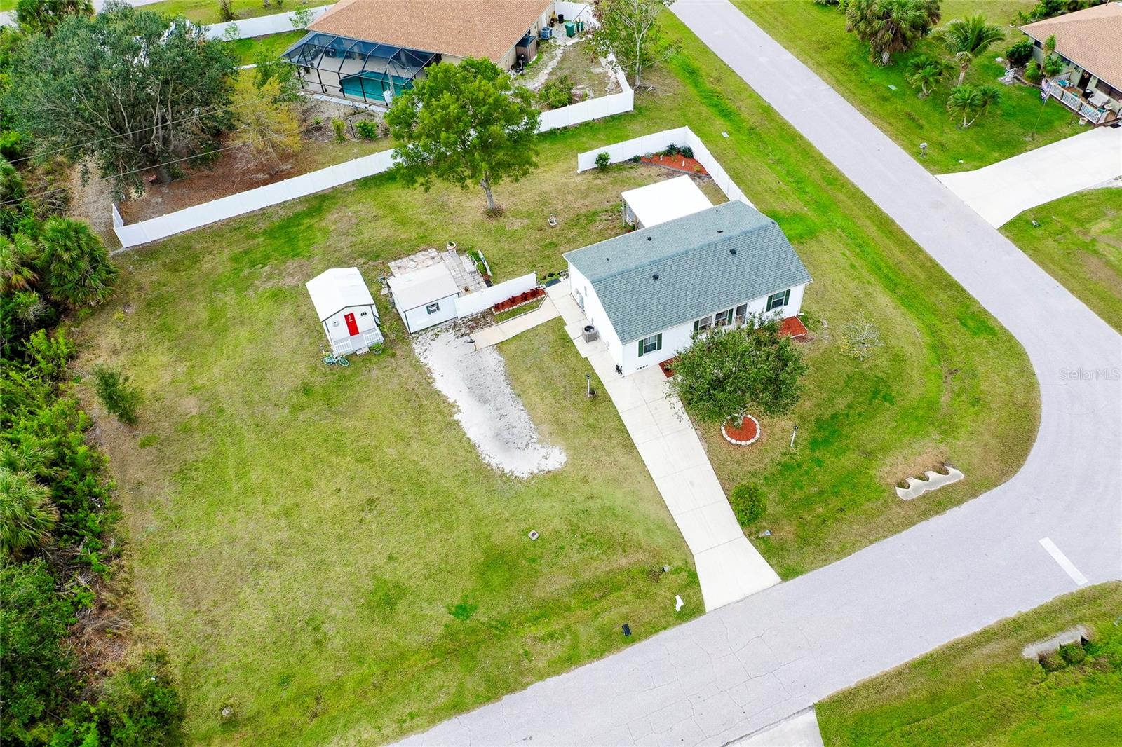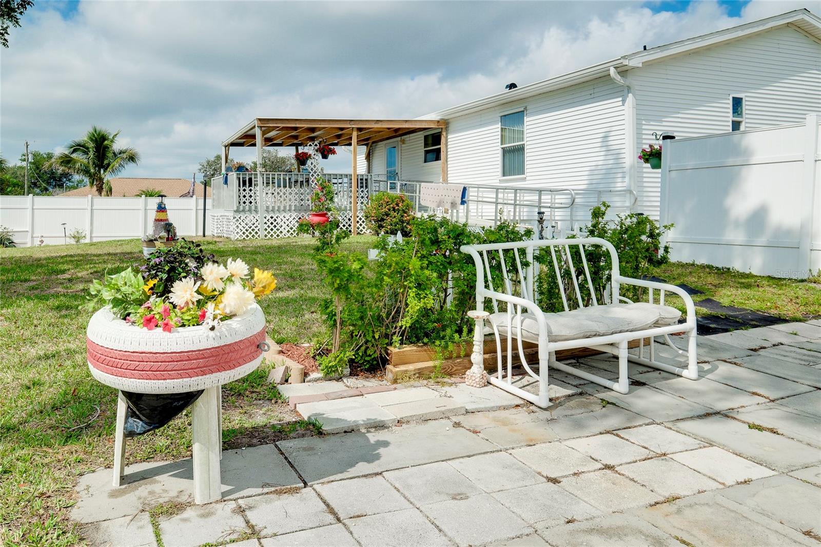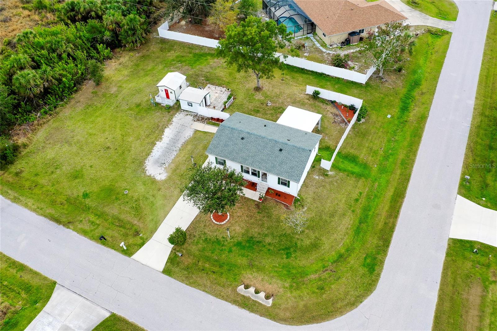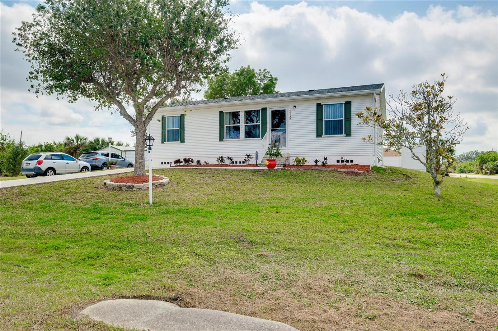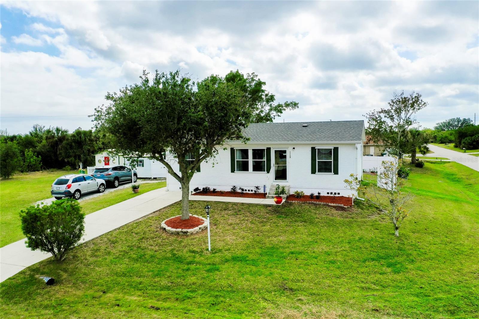 This charming 3-Bedroom Modular Home on a Double Corner Lot – Move-In Ready! Perfect Snowbird retreat or your perfect starter home. Discover this well-maintained 3-bedroom, 2-bathroom modular home, built in 2005 on a permanent foundation, situated on a spacious double corner lot in an established, quiet neighborhood. This home offers peace of mind with a new roof and new A/C in 2021, plus newer windows for energy efficiency this home was designed to withstand up to 150 mph wind. Inside, you'll find a vaulted ceiling in the main living area, creating a bright and open feel. The split floor plan provides privacy, while the open kitchen, dining, and living space makes entertaining a breeze. Enjoy outdoor living on the rear deck, complete with a wheelchair ramp on the side for easy access. Do you need space for hobbies? here are two workshops, one with A/C to work on your hobbies / Crafts. Fenced yard for privacy Located close to Port Charlotte, Englewood, North Port, and Venice as well as Wellen Park, top-rated hospitals, restaurants, shopping, and Gulf beaches—all within a 5-10 minute drive. Want to go to the Gulf beaches? You are only 10-minute drive. This property is not in a flood zone and sits on high elevation for added security. Don’t miss out on this fantastic opportunity! Call today for more details or to schedule a showing. Most of the furniture can be included