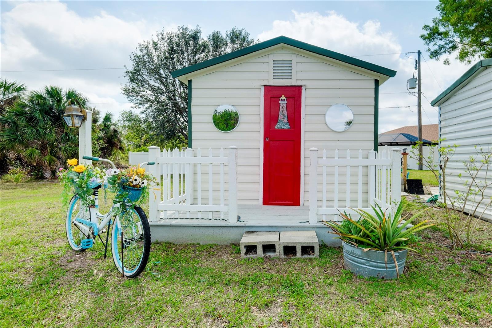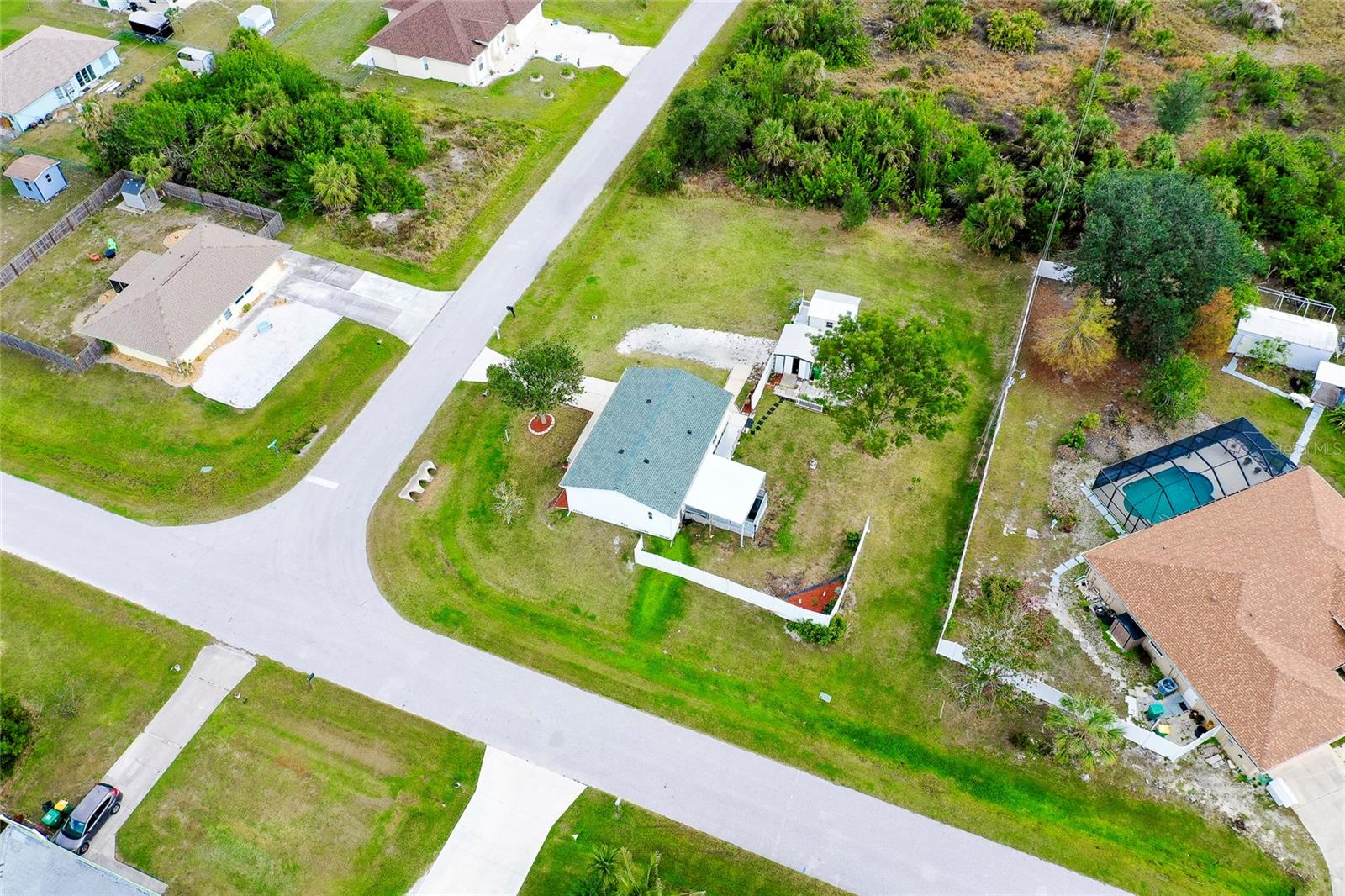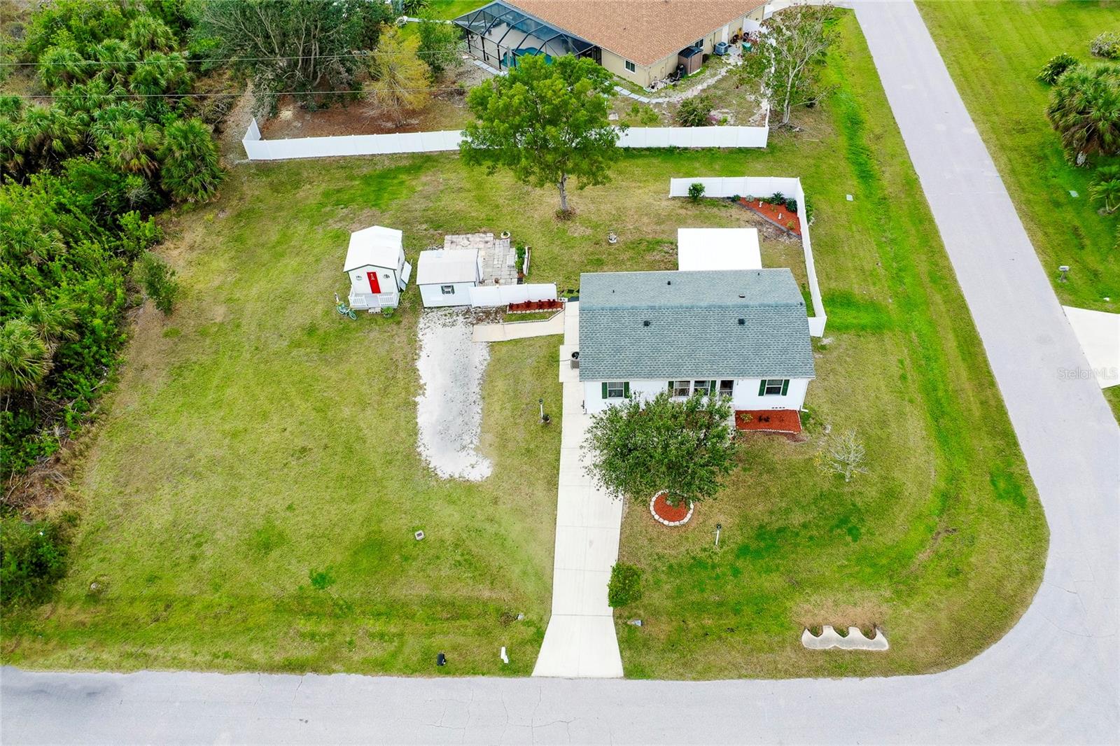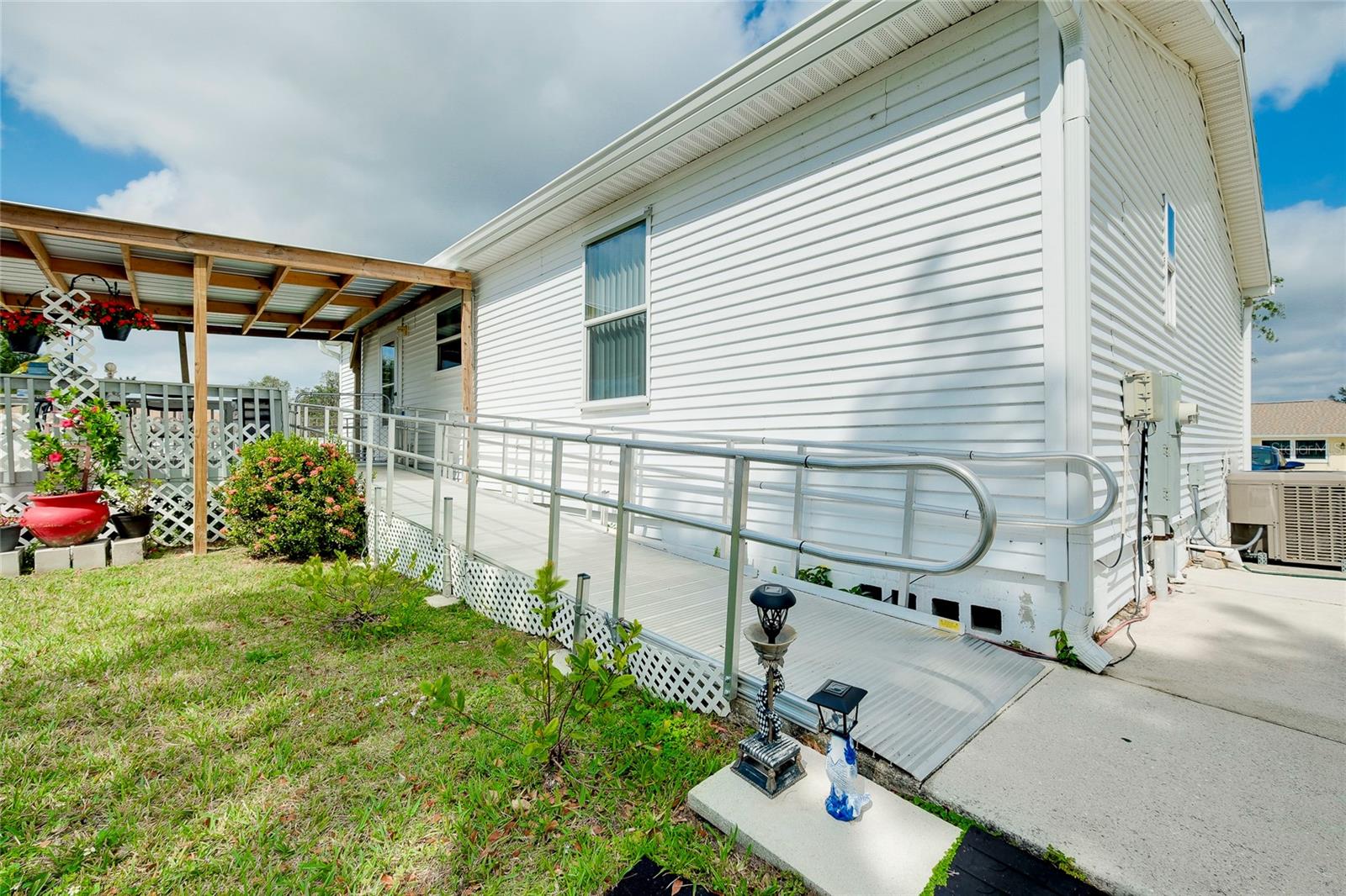 This charming 3-Bedroom Modular Home on a Double Corner Lot – Move-In Ready! Perfect Snowbird retreat or your perfect starter home. Discover this well-maintained 3-bedroom, 2-bathroom modular home, built in 2005 on a permanent foundation, situated on a spacious double corner lot in an established, quiet neighborhood. This home offers peace of mind with a new roof and new A/C in 2021, plus newer windows for energy efficiency this home was designed to withstand up to 150 mph wind. Inside, you'll find a vaulted ceiling in the main living area, creating a bright and open feel. The split floor plan provides privacy, while the open kitchen, dining, and living space makes entertaining a breeze. Enjoy outdoor living on the rear deck, complete with a wheelchair ramp on the side for easy access. Do you need space for hobbies? here are two workshops, one with A/C to work on your hobbies / Crafts. Fenced yard for privacy Located close to Port Charlotte, Englewood, North Port, and Venice as well as Wellen Park, top-rated hospitals, restaurants, shopping, and Gulf beaches—all within a 5-10 minute drive. Want to go to the Gulf beaches? You are only 10-minute drive. This property is not in a flood zone and sits on high elevation for added security. Don’t miss out on this fantastic opportunity! Call today for more details or to schedule a showing. Most of the furniture can be included