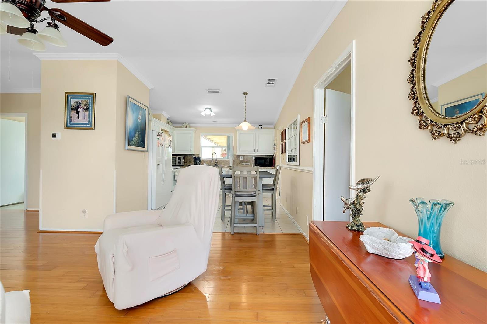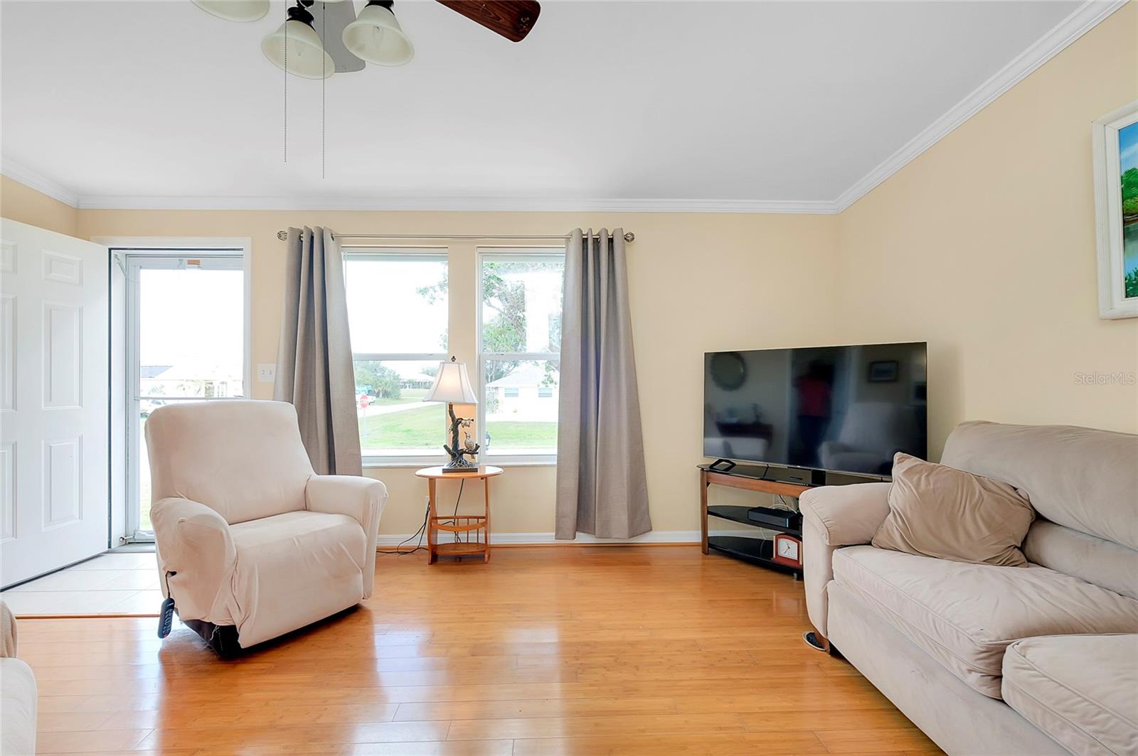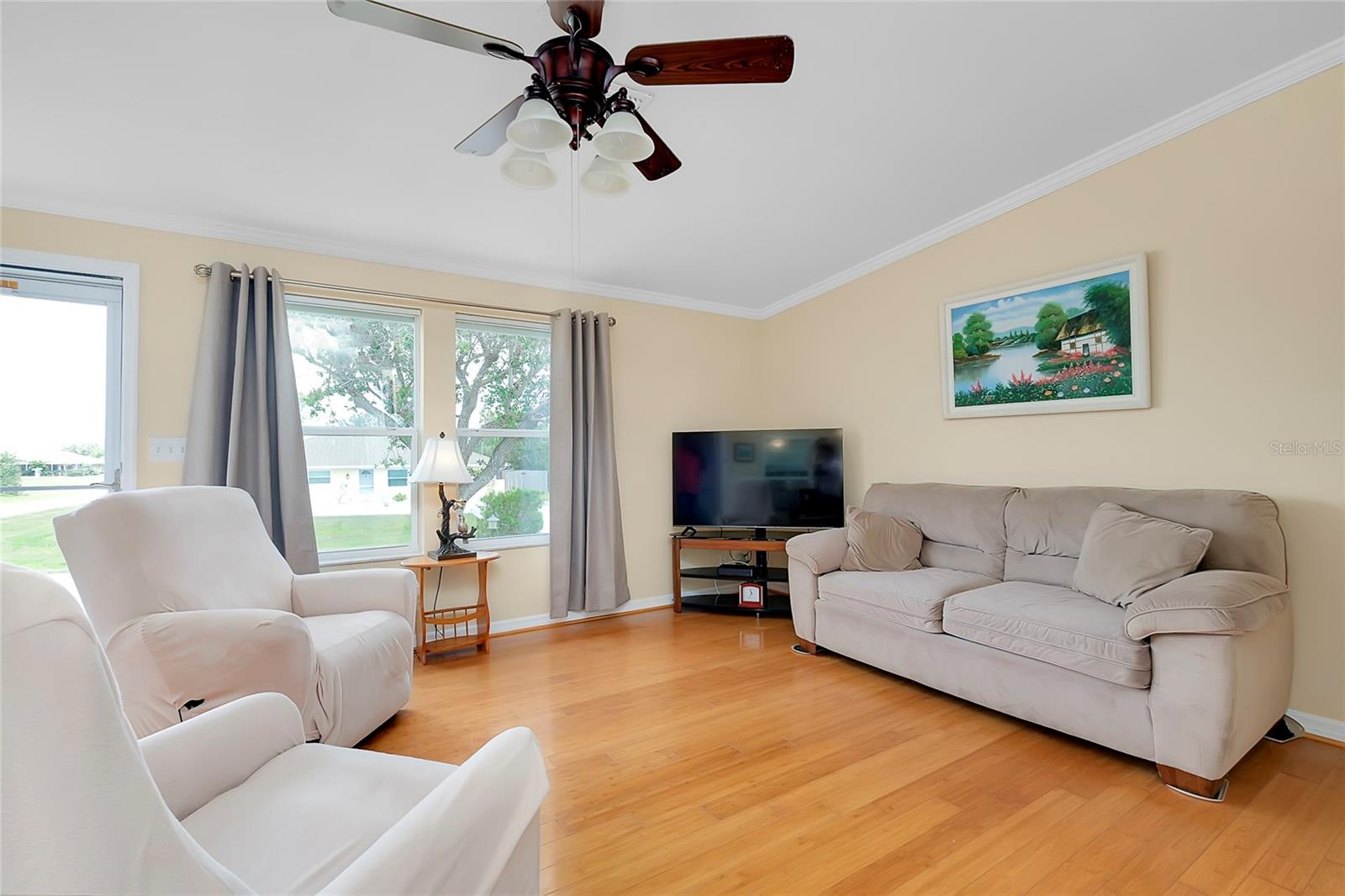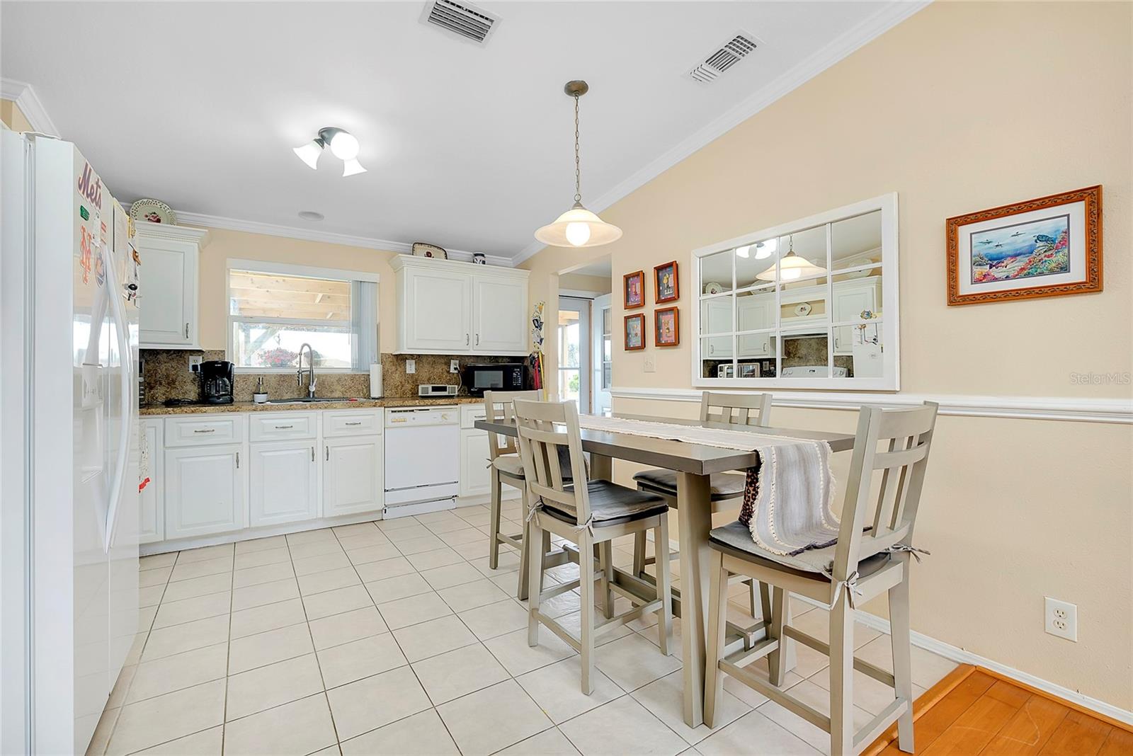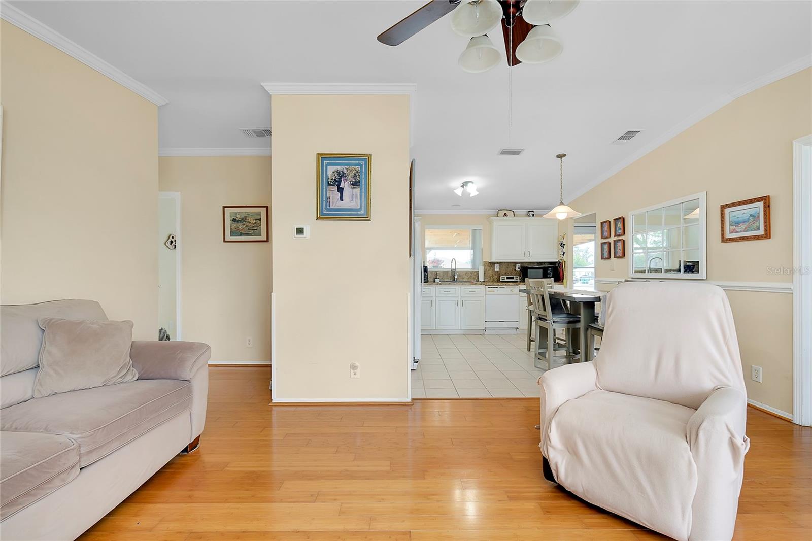This charming 3-Bedroom Modular Home on a Double Corner Lot – Move-In Ready! Perfect Snowbird retreat or your perfect starter home. Discover this well-maintained 3-bedroom, 2-bathroom modular home, built in 2005 on a permanent foundation, situated on a spacious double corner lot in an established, quiet neighborhood. This home offers peace of mind with a new roof and new A/C in 2021, plus newer windows for energy efficiency this home was designed to withstand up to 150 mph wind. Inside, you'll find a vaulted ceiling in the main living area, creating a bright and open feel. The split floor plan provides privacy, while the open kitchen, dining, and living space makes entertaining a breeze. Enjoy outdoor living on the rear deck, complete with a wheelchair ramp on the side for easy access. Do you need space for hobbies? here are two workshops, one with A/C to work on your hobbies / Crafts. Fenced yard for privacy Located close to Port Charlotte, Englewood, North Port, and Venice as well as Wellen Park, top-rated hospitals, restaurants, shopping, and Gulf beaches—all within a 5-10 minute drive. Want to go to the Gulf beaches? You are only 10-minute drive. This property is not in a flood zone and sits on high elevation for added security. Don’t miss out on this fantastic opportunity! Call today for more details or to schedule a showing. Most of the furniture can be included