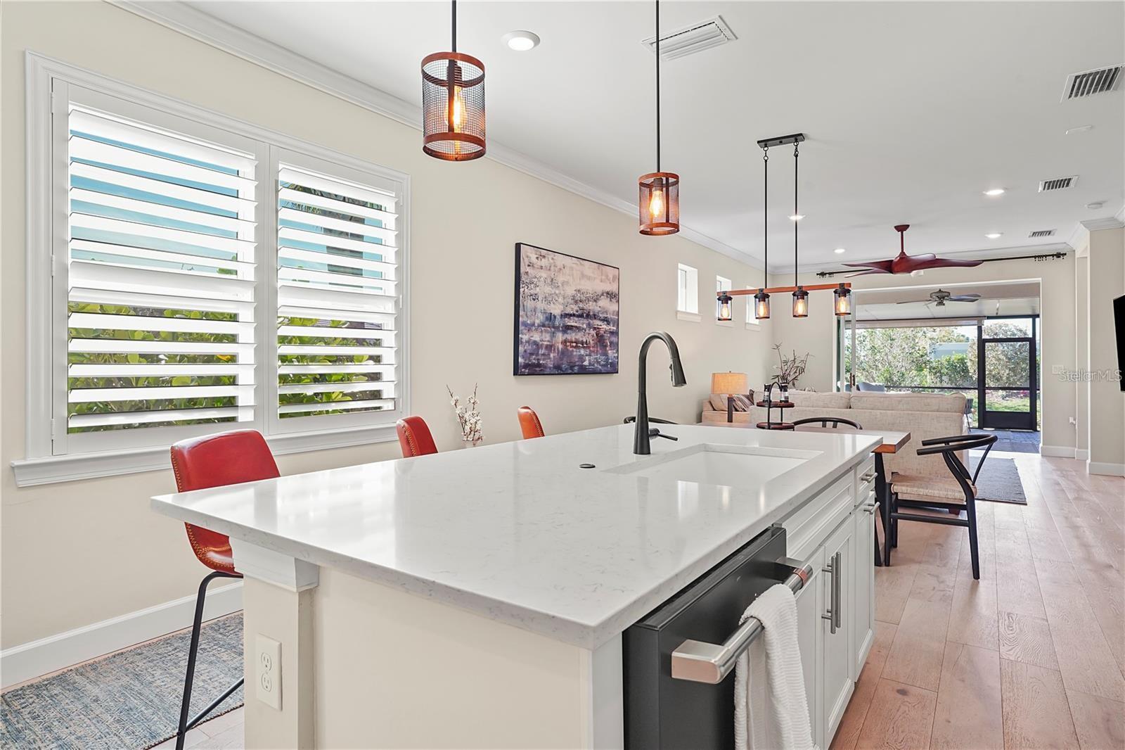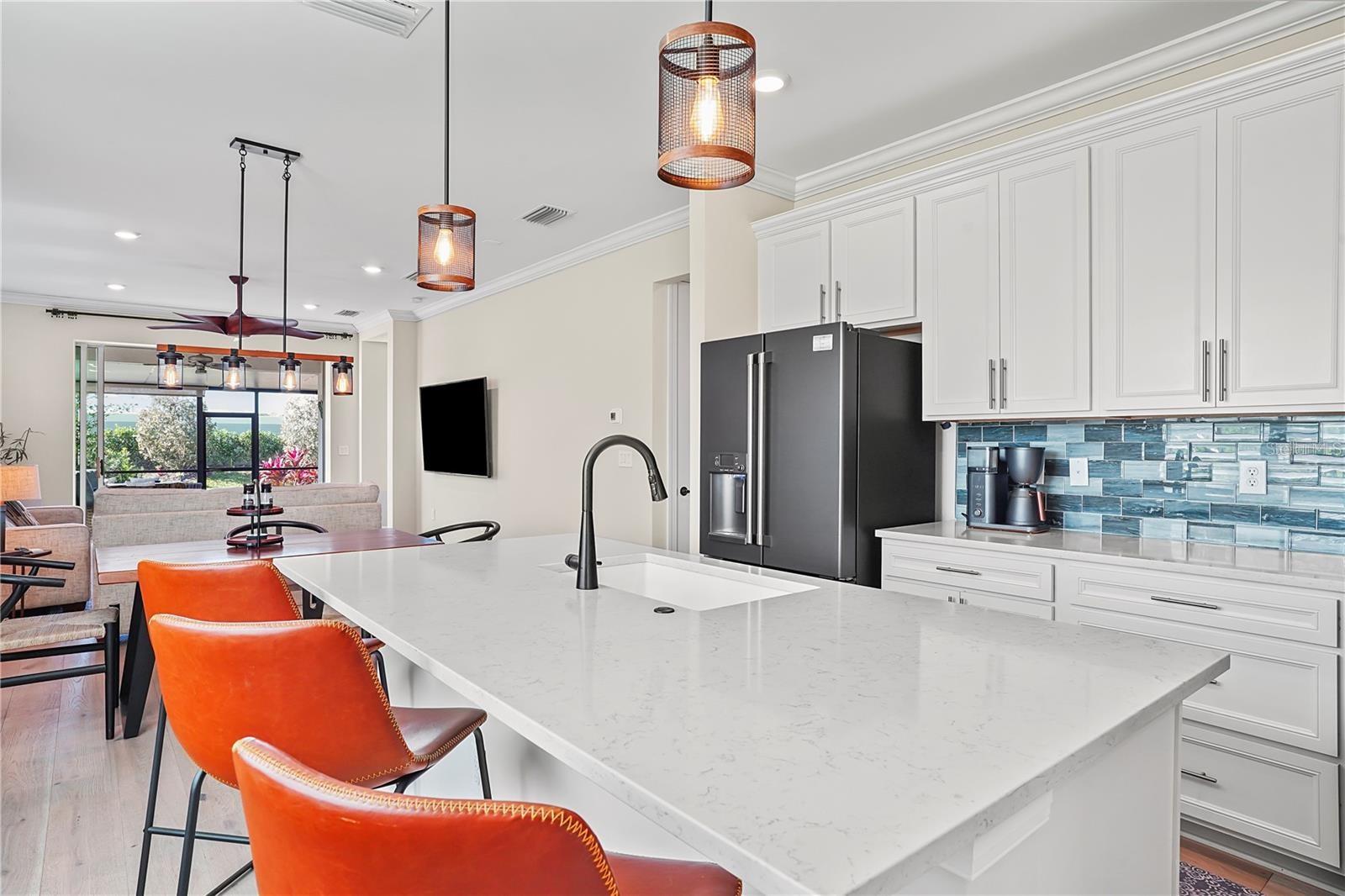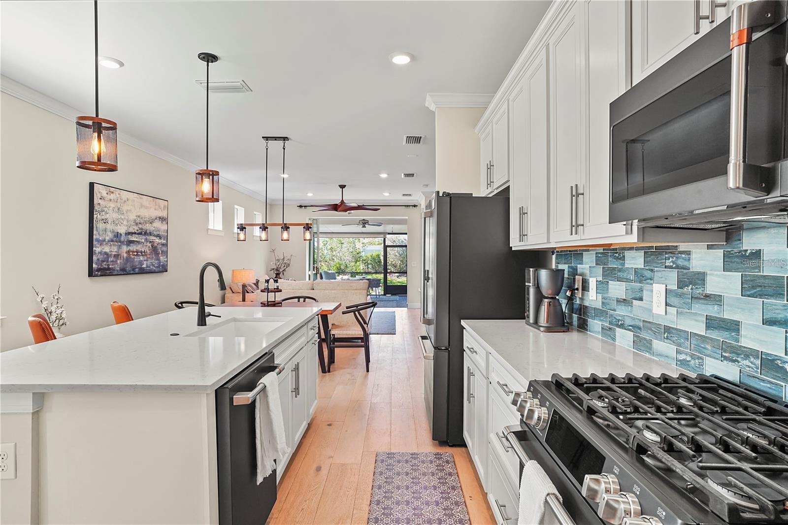 Florida living at its Best! Welcome home to this newer Hallmark model one story home built in 2022 in the desirable Beachwalk by Manasota Key gated community. ONLY 2.5 MILES TO THE BEACH. Don’t wait for new construction, enjoy this beautiful corner property 3 bedroom 2 bath home now! A plethora of upgrades including the gourmet kitchen with 42” white cabinets, Quartz countertops, custom glass tile backsplash, large center island, and a fully upgraded stainless steel appliance package. Enjoy the indoor/outdoor living space with the extended huge covered lanai and views of the lush landscaping. Perfect TV room or to watch the beautiful sunsets. The Flex/Den/Office room with glass French doors doubles as the 3rd bedroom. Comfortable living & dining areas round out the space. Retreat to the spacious owner’s ensuite featuring tray ceilings, big bathroom with double sinks, wall to ceiling tiles in the walk-in shower enclosure frameless glass doors and huge walk-in closet. The 2nd bedroom is great for all the guests that want to visit sunny Florida. Modernized laundry room complete with full size stackable washer & dryer, solid wood butcher block & beverage/wine cooler. Durable engineered hardwood flooring throughout the home. Gorgeous Plantation shutters. Smart Home. Crown moldings. Updated faucets. Ceiling Fans. Upgraded Wi-Fi. 2 car garage. Natural Gas. The Country Club style amenities cater to your own personality. Featuring the resort style pool with a waterfall, a beach entry and attached lap pool with multiple swim lanes. Take a stroll on the boardwalk overlooking the pool & the lake. Have food & cocktails at the spacious Tiki Bar with your neighbors. The community Restaurant will be open soon. Feeling adventurous? Play on one of 21 sports courts featuring Pickleball, Tennis & Bocce Ball The state of the art Fitness Center is perfect for the athlete in you. Also offering private exercise classes. The Café is perfect for lunch/snack. Don’t forget about your doggies, there is a small & large dog park. Community garden beds. A veteran’s memorial garden. Many miles of trails. All this and a FULL TIME ACTIVITY DIRECTOR. Close to shopping, delicious restaurants, beaches and all the activities SW Florida has to offer. Don’t miss out on living in paradise, please call for your private showing.
