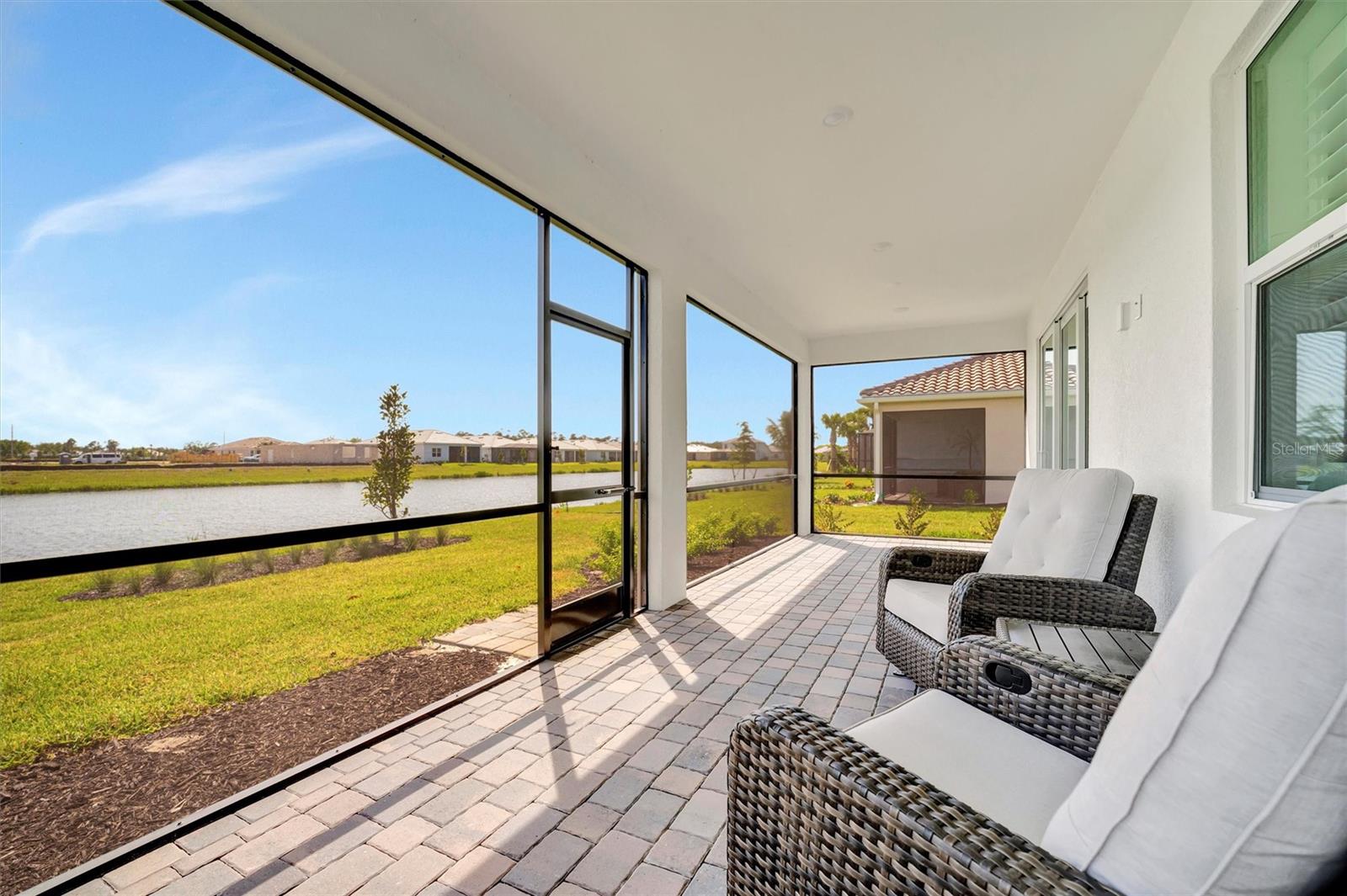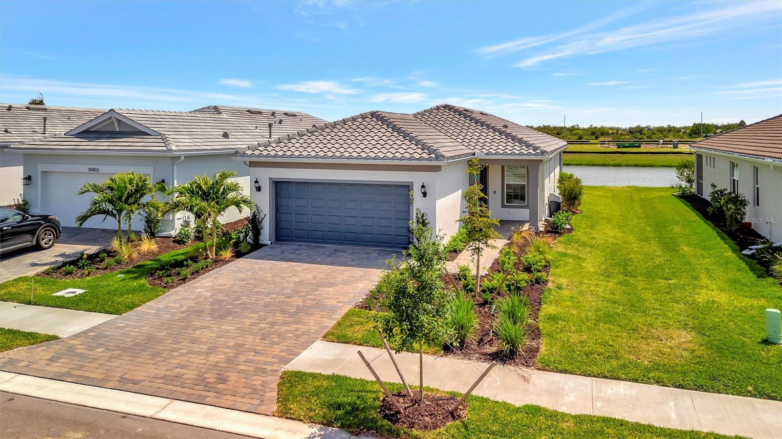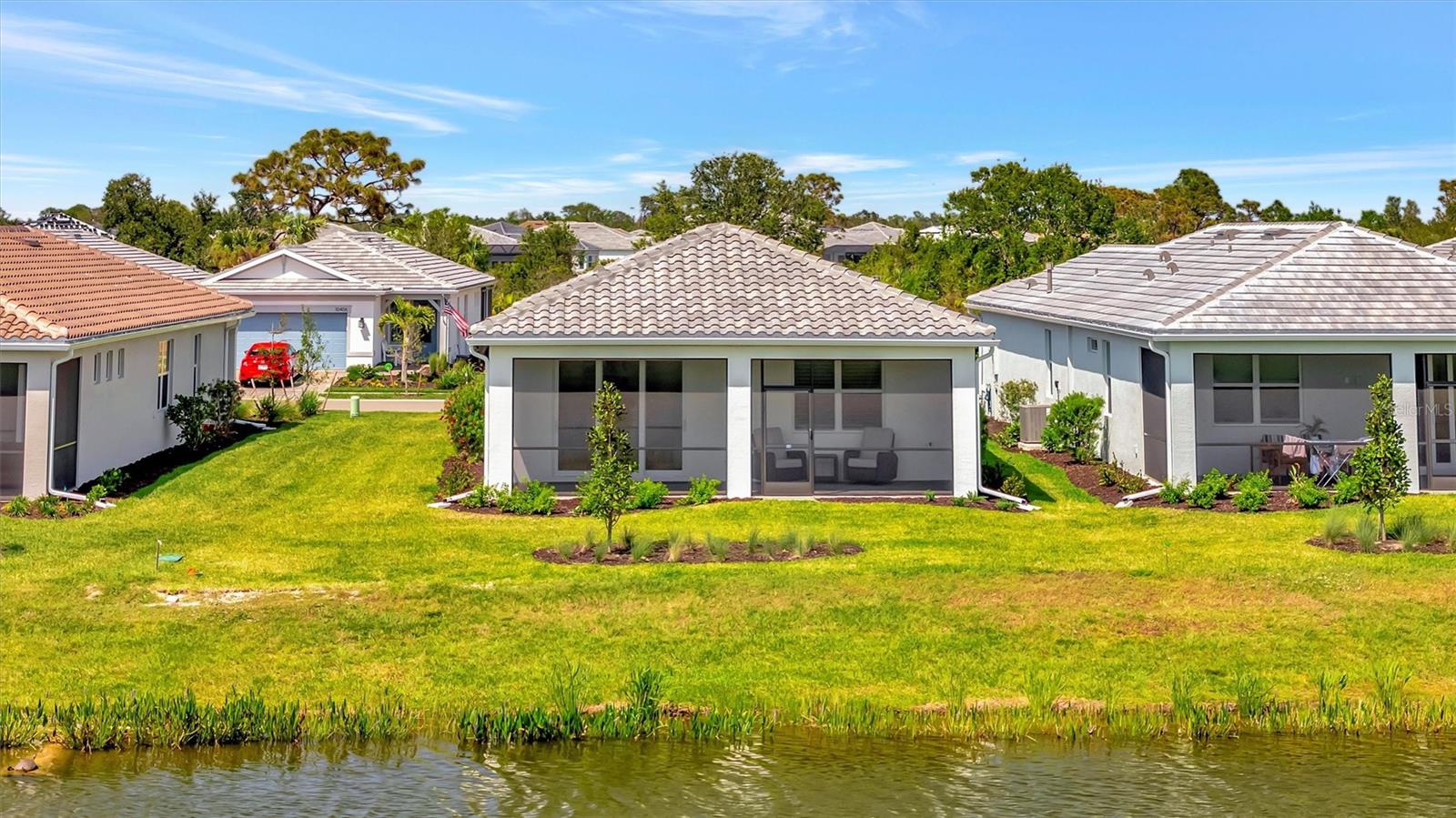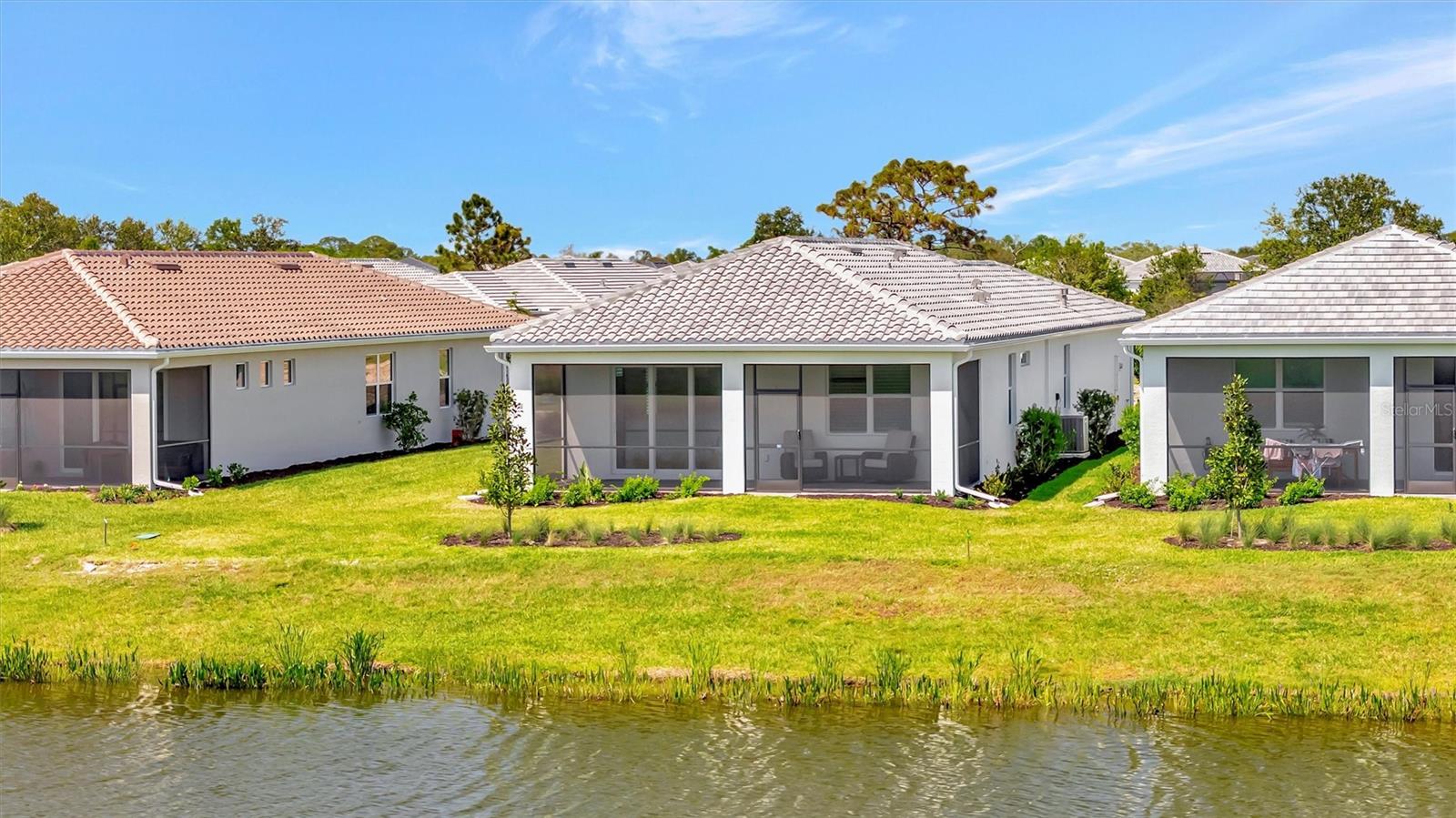 One or more photo(s) has been virtually staged. NEW TURNKEY DESIGNER WATERFRONT HOME for sale in the fabulous gated community, Beachwalk by Manasota Key, which is only a short bike ride to the beach or 5 minutes by car. This stunning, hurricane resilient, Contour model home (built December 2024) boasts 2 large bedrooms, 2 bathrooms, a Den/flex room, and an extended lanai. It also has an extra wide side yard between the neighboring homes. Enjoy many luxurious upgrades including a Chef's kitchen with quartz countertops, stainless steel appliances and a natural GAS stove/oven, a full-house water treatment/purification system, and plantation shutters. The house is listed furnished so you can move in on day one. As the day draws to a close, relax in the extended lanai, looking out over the lake and enjoy amazing sunsets or outdoor dining. The house is equipped with Smart Home technology and upgraded high speed internet access using fiber optics. Clean two-car garage for vehicles, with 4’ of bonus space for storage. Walking distance to the amazing community center with a resort-style pool with lap lanes, hot tub, pickleball, bocce and tennis courts and a state of the art fitness center including workout machines, free weights & a private workout room with classes. After that stop by the Cafe' for breakfast, snack or a smoothie. Plus a FULL TIME ACTIVITY DIRECTOR that organizes and manages all the fun activities and festivities. All this within this luxurious professional landscaped gated community. Meet new friends and enjoy lunch at the High Tide Tiki bar overlooking the pool & the big lake. Looking to stay close for dinner, well this community has it all including a PRIVATE RESTAURANT (opening in 2025/2026). Other community amenities include a dog park for large and small animals, Garden Boxes, Veterans Memorial garden and many walking trails. NO CDD. Beachwalk is centrally located to the grocery stores, shopping, great restaurants, and SW Florida's most beautiful beaches. Venture out to historic downtown Venice or Englewood or head to Wellen Park in approx 15 minutes. Remember this home is turnkey!! All you need to do is bring your clothes to live in Paradise! A great value & must see!