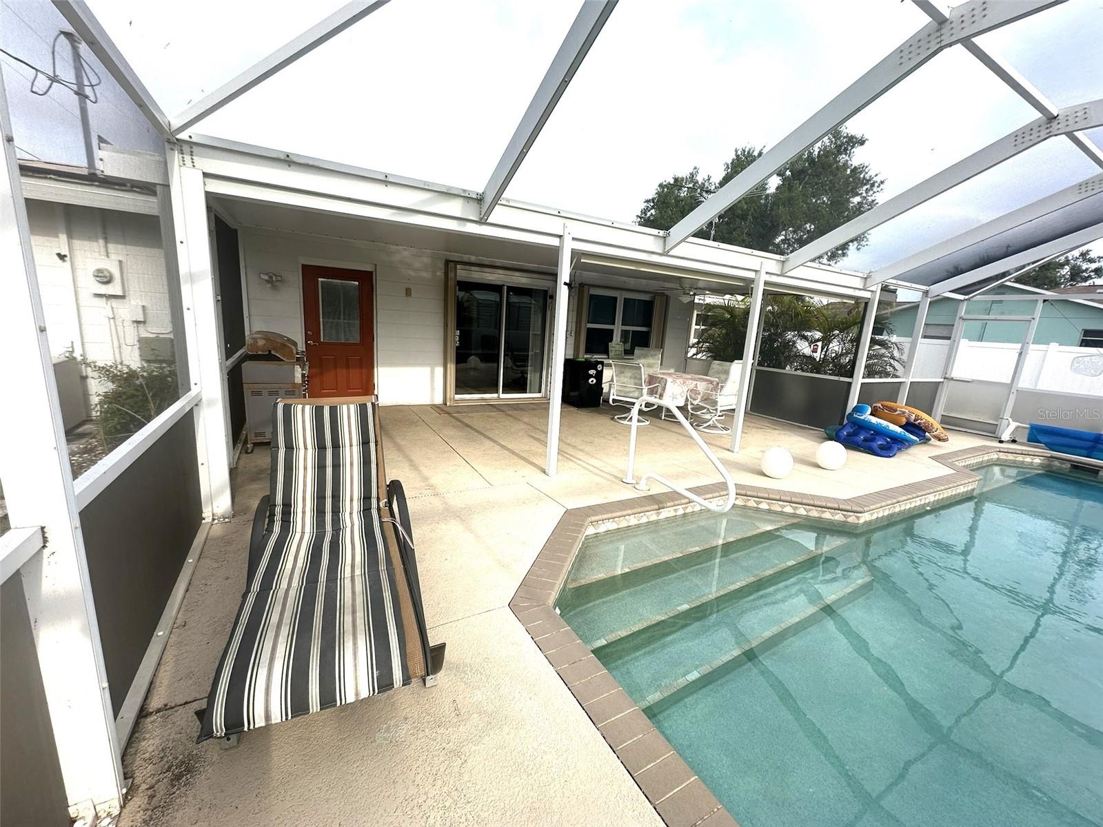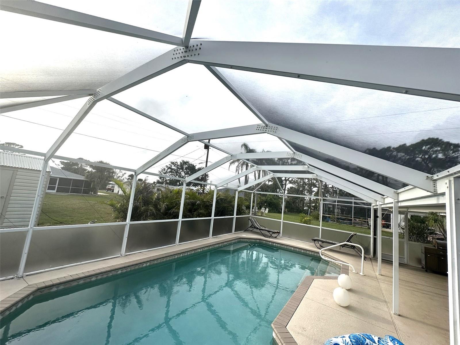 Location -Location! walking distance to the grocery store, retail businesses and restaurants, Beach is located 1.7 miles away - less than 5 minutes away. The street is extremely quiet with limited traffic, most of which are neighbors walking or biking in the area. Home is located in X flood plan, not requiring you to carry flood insurance for most mortgages companies This 2 Bedroom - 2 bath home has many updates including newer tile throughout most of the home. House comes fully finished, all you need is flip flops and swim suit, This home has a massive pool (12x27) great place to entertaining or relaxing. Living room has a bump out making more useable space. Home is well equipped for hurricane season with the steel roof and hurricane accordion shutters. Very little hurricane damages the past years. The one car garage is oversized (16x24) for extra storage, driveway has enlarged to accommodate extra vehicles. Has a 8x10 storage shed in the back yard. Once you see this home you will not want to leave - schedule today