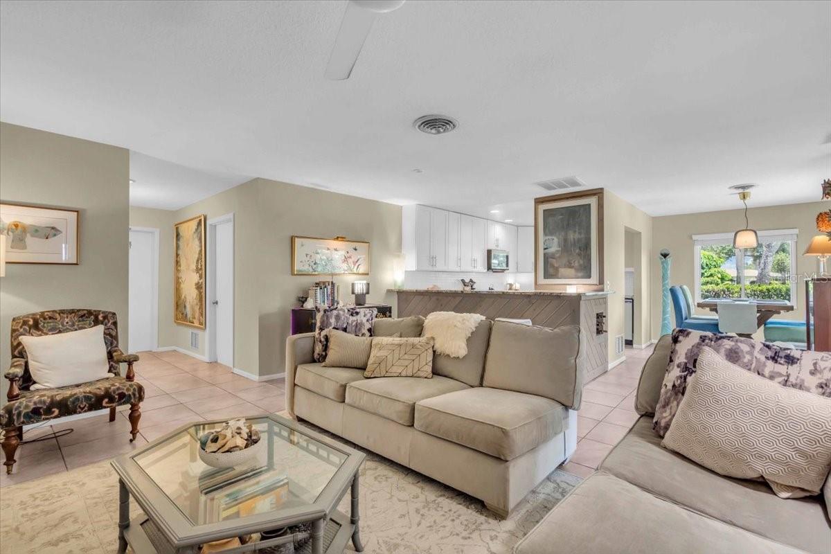 Dock Your Boat & Live the Dream! Located just steps from your private deeded boat dock with BRAND NEW SEAWALL, this home offers unparalleled convenience with a 40-ft dedicated seawall, perfectly suited for a boat lift. Seller paid the seawall assessment in full (January 2025, $8,400 cost!). Situated in the highly sought-after Englewood Isles boating community, this beautifully updated, free-standing, maintenance-free residence is a true gem. Best of all, there are no bridges to the bay, offering sailboat-friendly waters in a secure harbor environment—perfect for boating enthusiasts! The expansive two-car garage features an oversized laundry area with ample storage, and there’s generous space for both vehicles and recreational toys. Every inch of this home reflects thoughtful updates, including a complete remodel. Highlights include a stunning new kitchen, refreshed bathrooms, modern lighting fixtures, ceiling fans, and more. Tile flooring flows seamlessly throughout, complemented by fresh interior and exterior paint. The large Florida room opens to the spacious great room and includes a separate office space off the primary bedroom—offering both comfort and practicality. Inside, you’ll find two spacious bedrooms, two updated bathrooms, a cozy dining area, and a welcoming living room that extends into a lovely sitting area complete with a built-in breakfast bar. The chef-inspired kitchen features modern wood cabinetry, granite countertops, stainless steel appliances, and a thoughtful open design that flows effortlessly into the great room. Relax by the community pool (just steps from your back door) or take a quick ride to nearby Manasota Beach. Shopping, dining, golf, and additional sandy Gulf beaches are all just minutes away—everything you need is right at your fingertips. Make this extraordinary property your very own slice of paradise!