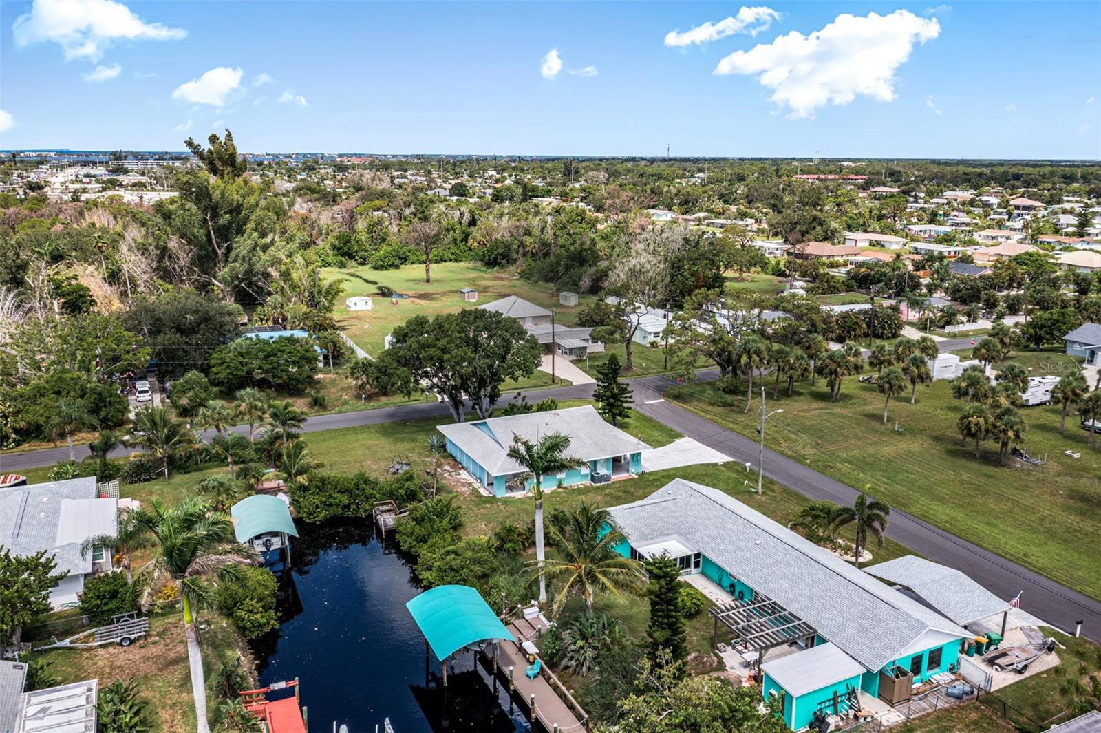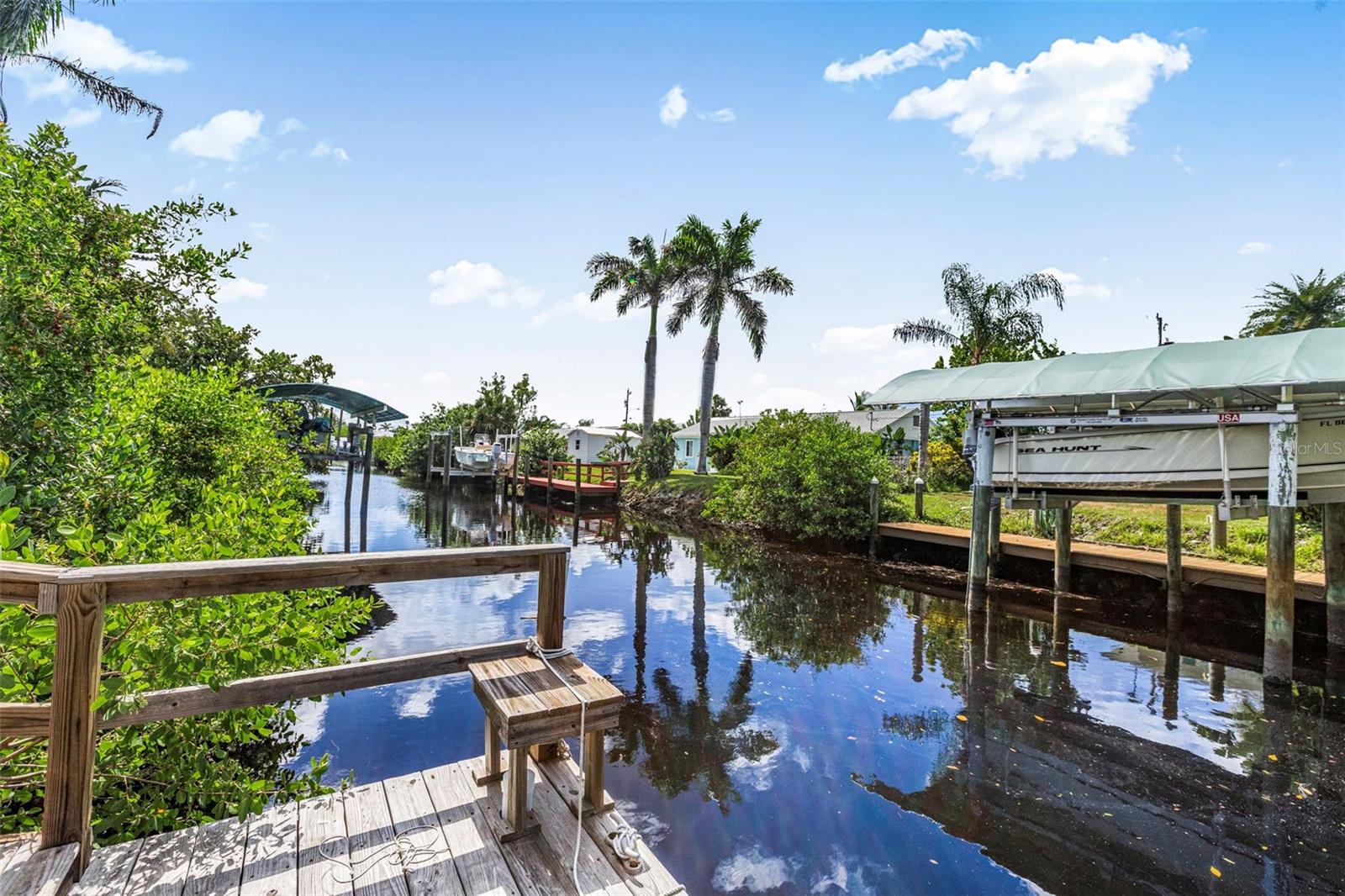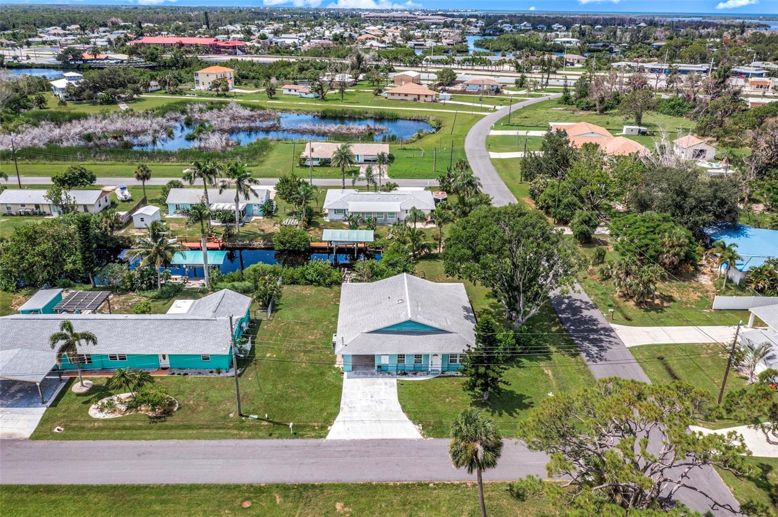 WATER ACCESS!!! Step back in time without sacrificing modern comfort in this beautifully preserved 1964 Kluge Florida home, nestled just minutes from the ICW on a canal off Ainger Creek from your personal dock. The original home has been added onto creating a larger living space from the original footprint. This property is a rare find in charming Englewood. It is your time to own a piece of historical architecture on an oversized corner lot with water access. Just two fixed bridges to the waters of the Intercoastal Waterway and the Gulf of Mexico. The kitchen has been updated with new cabinets, counter tops and appliances. Both bathrooms have also been updated to provide a more modern feel and comfort. In the bedrooms you will find ample closet spaces and other storage areas within the house including the oversized laundry room. The AC was replaced in 2021and the roof is 12 years old. The oversized cinder block carport is large enough for your cars or any Florida activity toys you may want to bring with you to enjoy Gulf Coast Living. Centrally located for easy access to beaches, restaurants and shopping and boat ramps. Dearborn street is just a few miles North with its restaurants, shops, music venue and events. Highlighted is the Thursday farmers market and classic car show. Want to explore farther? Venice to the North and Boca Grande to the South. This home blends the character and craftsmanship of the past with the ease of modern living on the coast of Florida. Ideal for those who appreciate history, coastal charm and water activities. Bring the boat, kayaks, fishing gear and explore the waters of Englewood and beyond.