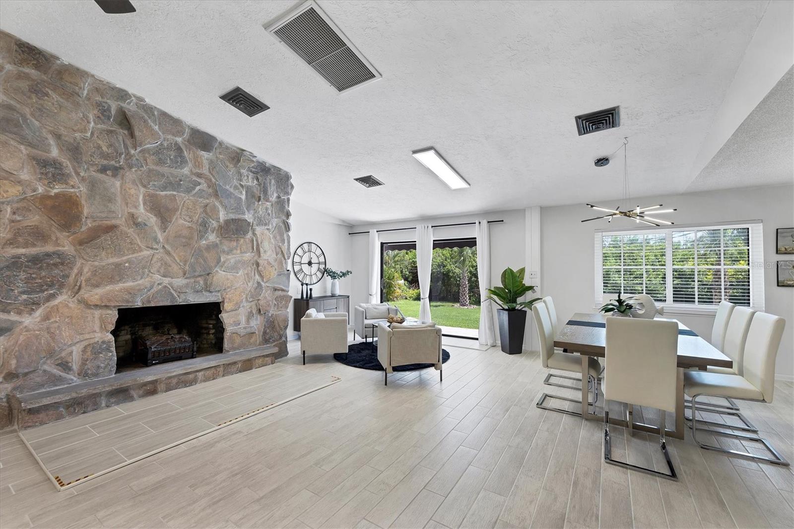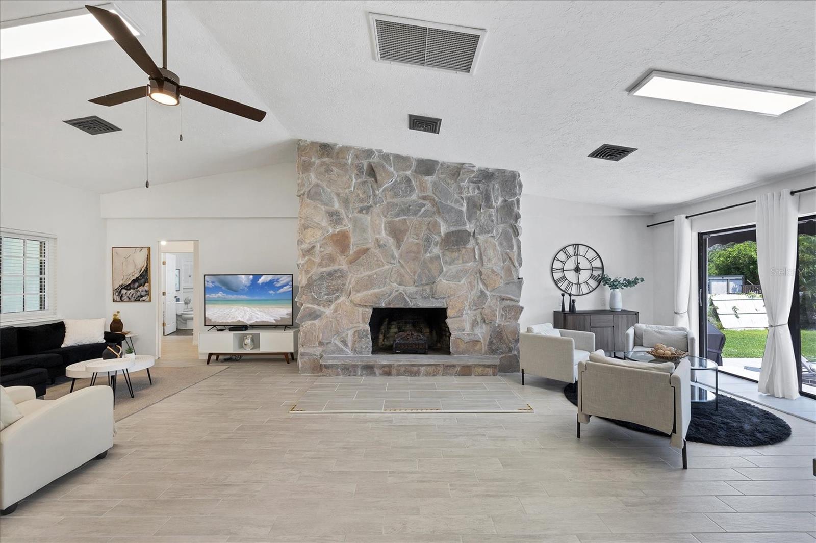 Your Florida home – with a sitcom legacy! Live where others vacation – in a home with Hollywood heritage. This charming single-family home in Englewood offers not only sunshine, beaches and space – but also a unique story: It was previously owned by Donald Martin, the son of Barney Martin – the actor who played Morty Seinfeld, Jerry's father on the legendary sitcom Seinfeld. So, take the chance and the rare opportunity to own a property that combines lifestyle, location and pop culture history. This three-bedroom, two-bathroom home sits on an expansive lot with lots of room for a pool and a tropical garden but you need to see the inside to appreciate this beautiful updated home. High ceiling, remodeled to a large open floor plan, a spacious kitchen that provides ample space of cabinets and counter space, tile flooring throughout the house, a striking wood-burning fireplace from the bottom to the ceiling, hurricane-rated windows, new screened-in front porch, large open deck in the fenced-in backyard. The garage was converted into a laundry room and a private gym. Beautifully furnished and decorated, this solid-built home with its timeless character is also a great home for an investment and comes with potential rental income. Peaceful location in Rock Creek Park, just minutes from pristine sandy beaches, breathtaking Gulf sunsets, shopping and historic Englewood's Dearborn Street, nature preserves, golf courses and the relaxed spirit of the Sunshine State – all just a short distance away. Whether you're looking for a primary residence, vacation retreat or smart investment, this home has everything it takes to become the star of your story. Schedule your showing today – before someone else takes the leading role.