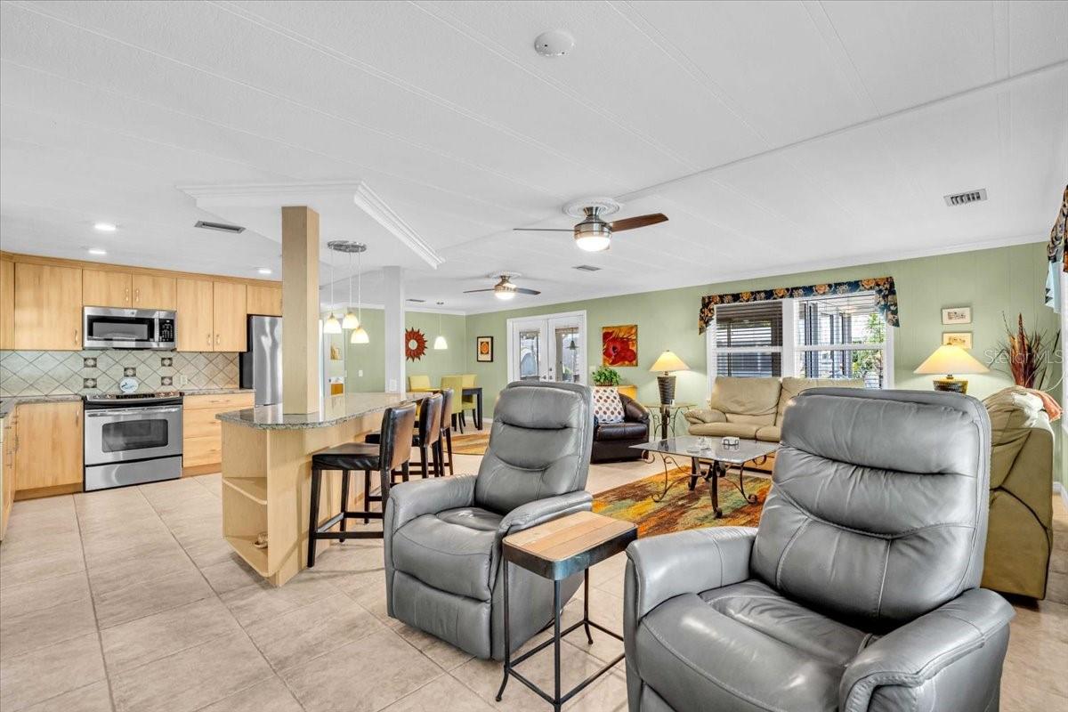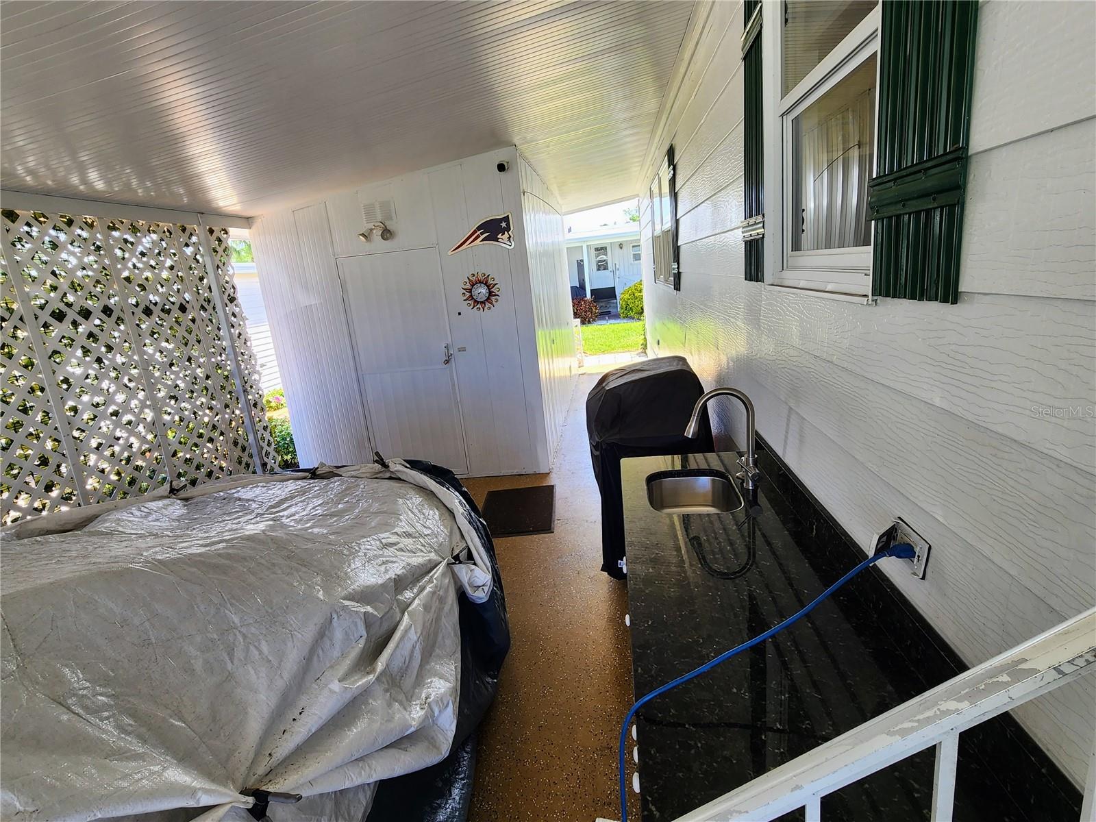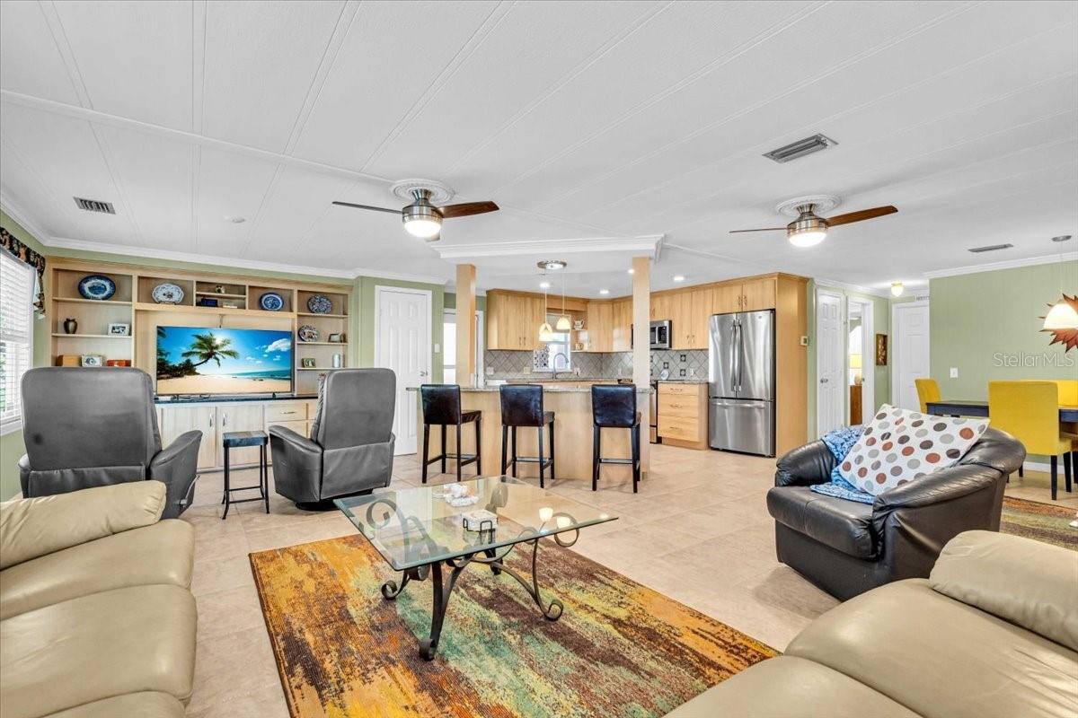 Absolutely jaw dropping beautiful. Minutes to the public beach this beautifully Updated & Fully Furnished Home in Sought-After Alameda Isles resort style waterfront community with 58 boat slips and direct access to the intracoastal waterway and the Gulf is available now. Welcome to this meticulously maintained and tastefully updated home in the highly desirable 55+ gated community of Alameda Isles being sold turnkey furnished. This home features a new roof and a York Ac unit with warranty in 2019, a hot water heater in 2018, a new electric panel with wiring and a new microwave in 2025. All appliances are 2017 or newer. It has no carpeting and all tile or Vinyl plank flooring has been installed throughout the home along with 6 panel doors, crown molding, new light fixtures and ceiling fans. You will love this custom-designed kitchen complete with granite countertops, a large island with wine rack, tile backsplash, stainless steel appliances, a hidden dishwasher, unique swing-out corner cabinet, and open-concept layout that flows seamlessly into the living and dining areas. The spacious enclosed Florida room features privacy-darkening windows and an electric fireplace, making it the perfect year-round retreat. This home is being sold fully furnished, turnkey—just bring your clothes and toothbrush! The furnishings are very nice. Enjoy comfortable seating with a sofa featuring dual recliners, a love seat with dual recliners, and two additional individual recliner chairs—ideal for relaxing or entertaining guests. Outside, the home the home is on a nice corner lot with beautiful palm trees and it is newly landscaped. There is an irrigation system on it's own well as well. There is an outdoor kitchen that has stainless steel sink with hot and cold water to it and a granite too. You'll love the newly painted driveway and a large shed with work bench as well as washer dryer. All extended roofs over carport and Florida room were reinforced in 2024. The location also provides Resort-Style Living at It's Best. Alameda Isles offers a wide array of thoughtfully designed amenities to support an active, social, and relaxed lifestyle like Heated swimming pool & therapeutic spa, Fitness center, and Courts for tennis, pickleball, bocce, and shuffleboard. There is a Beautifully landscaped private park with picnic areas, putting green, and golf driving cage as well as scenic walking trails along several lakes with breathtaking fountains. The community clubhouse serves as the heart of social life, offering: Free Wi-Fi, Full kitchen, Library, Craft and billiard rooms, Sauna, and an Expansive event hall overlooking the scenic marina. Enjoy year-round social events, clubs, and seasonal activities that foster a strong sense of community and connection. Additional Conveniences include a 58-slip marina with direct Gulf access, RV/boat storage yard, Woodworking shop, Scenic Walking trails and five tranquil lakes. Alameda Isles isn’t just a neighborhood—it’s a lifestyle. Don’t miss this opportunity to own a piece of paradise!