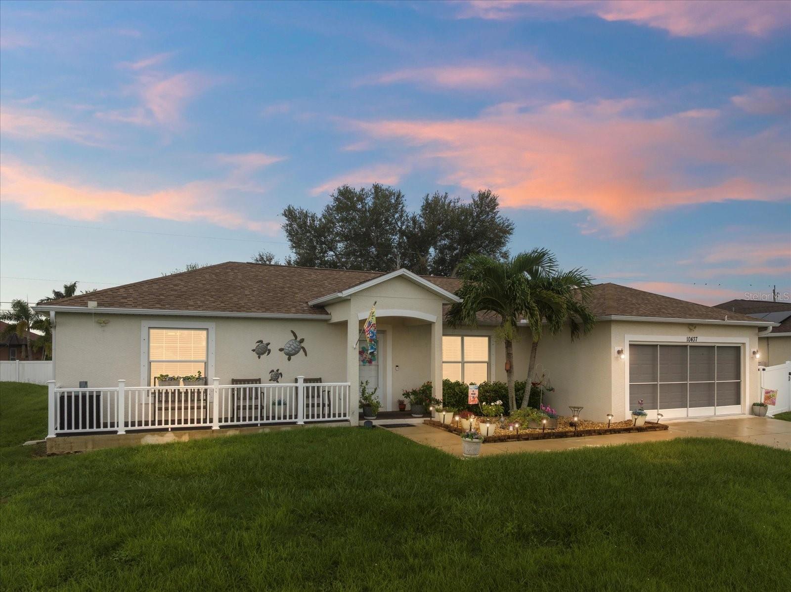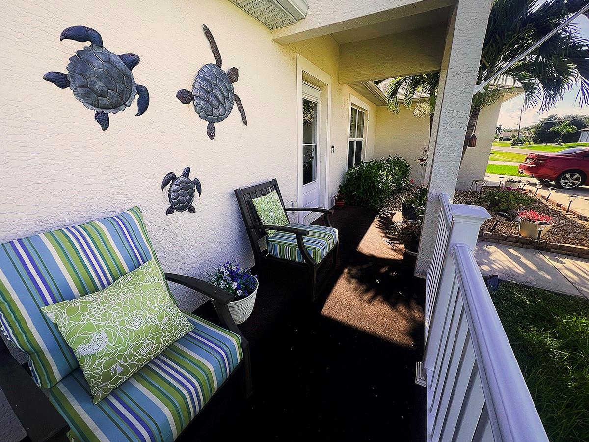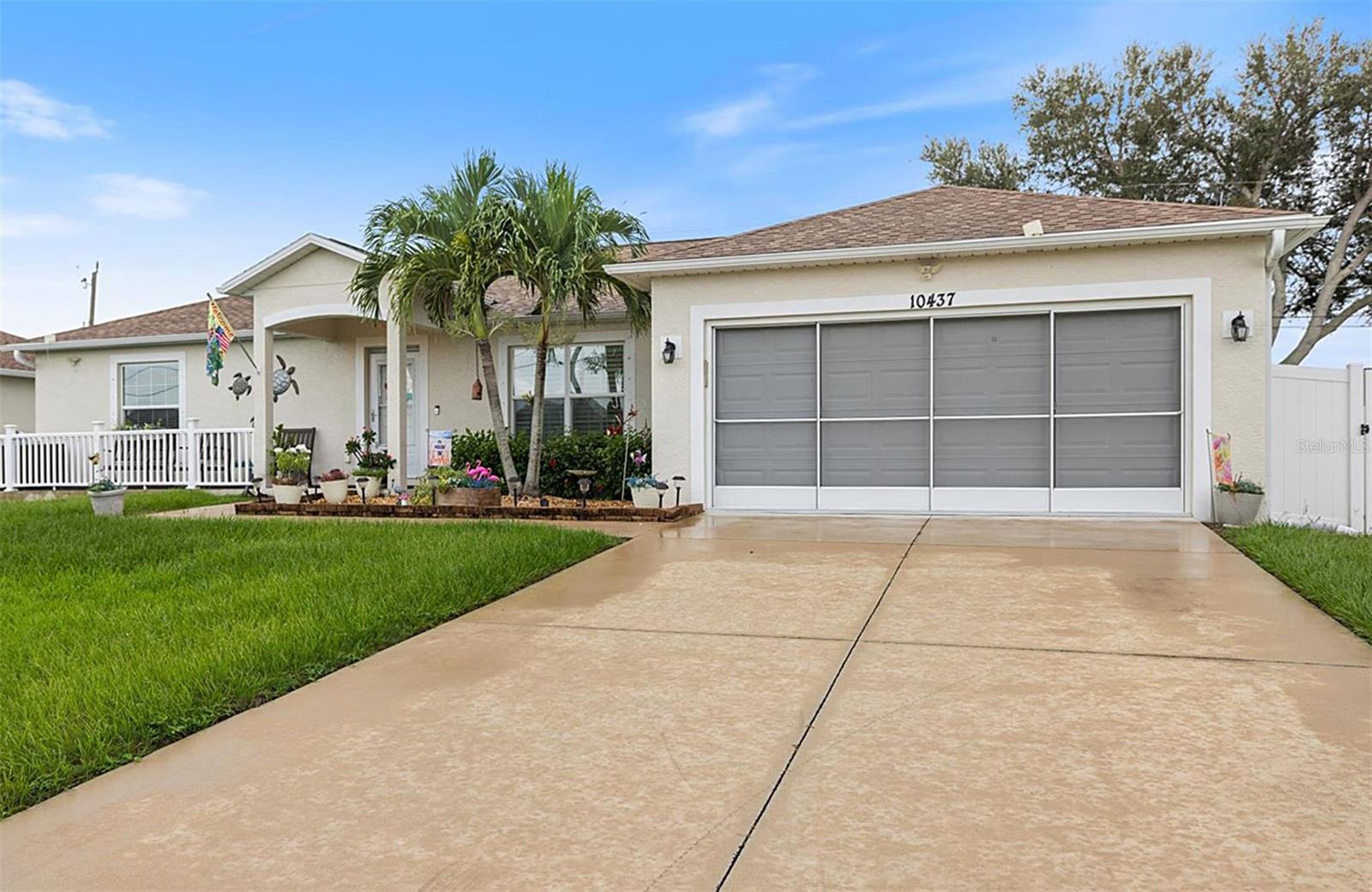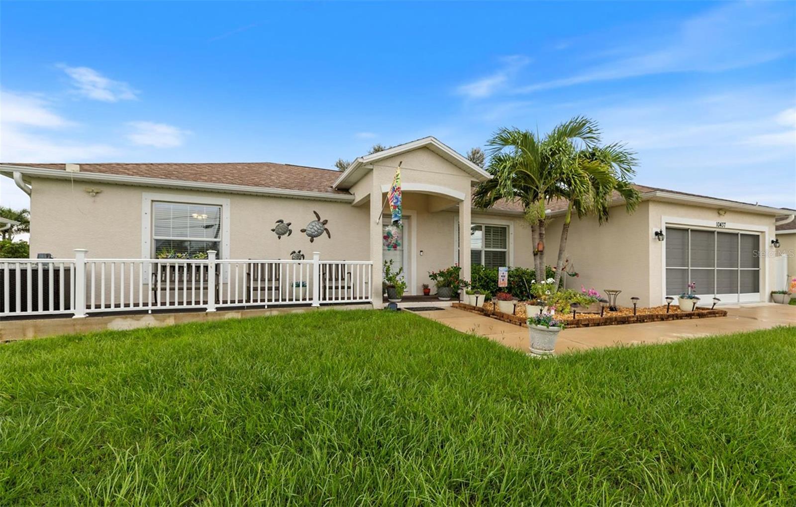 FANTASTIC 3 BEDROOM / 2 BATHROOM MOVE-IN READY FENCED HOME WITH MANY UPDATES! Home is LIKE-NEW, only 6 years old with a NEW 2022 ROOF, and NO FLOOD ZONE! ORIGINAL OWNER IS READY TO DOWNSIZE. This spacious 1600 sqft fenced home features ceramic tile throughout (NO CARPETING) and has been updated to reflect a beautiful beachy lifestyle with elegant planation shutters, and an adorable front porch has been added to enjoy a cup of coffee and say hello to your neighbors! This ideal SPLIT LAYOUT features 3 large bedrooms, 2 tiled shower bathrooms, an enormous extended lanai, an oversized 2-car garage, (with added garage slider screens), plus a backyard shed. The living room showcases vaulted ceilings with an open concept to the dining and kitchen area. Kitchen features gorgeous granite counters, breakfast for extra seating, and all stainless-steel appliances. The charming French doors lead to an enormous EXTENDED ENCLOSED LANAI overlooking a lovely landscaped FENCED BACKYARD, perfect for entertaining and grilling outdoors. This fabulous covered lanai also features a CONVEYING HOT TUB! The private backyard has been beautifully landscaped featuring an adorable pergola, pavers, eureka palms and a SHED! The master bedroom is exceptionally spacious with an en-suite tiled shower bathroom and a deep walk-in closet. The guest bedrooms have privacy on the opposite side, sharing another tiled shower bathroom. The interior laundry room offers a bonus utility sink. This home has been well-cared for and ALL the EXTRAS have been added for peace of mind! NO FLOOD ZONE, ROOF 2022, GUTTERS, HURRICANE SHUTTER PROTECTION, GENERATOR HOOK UP, SURGE PROTECTOR, SECURITY SENSOR LIGHTS, just so many more updates! This is an ideal Englewood location with Englewood Beach just 6 miles away, nearby library, medical, YMCA and much shopping! Schedule your tour today.