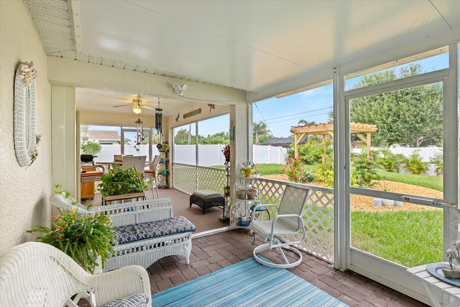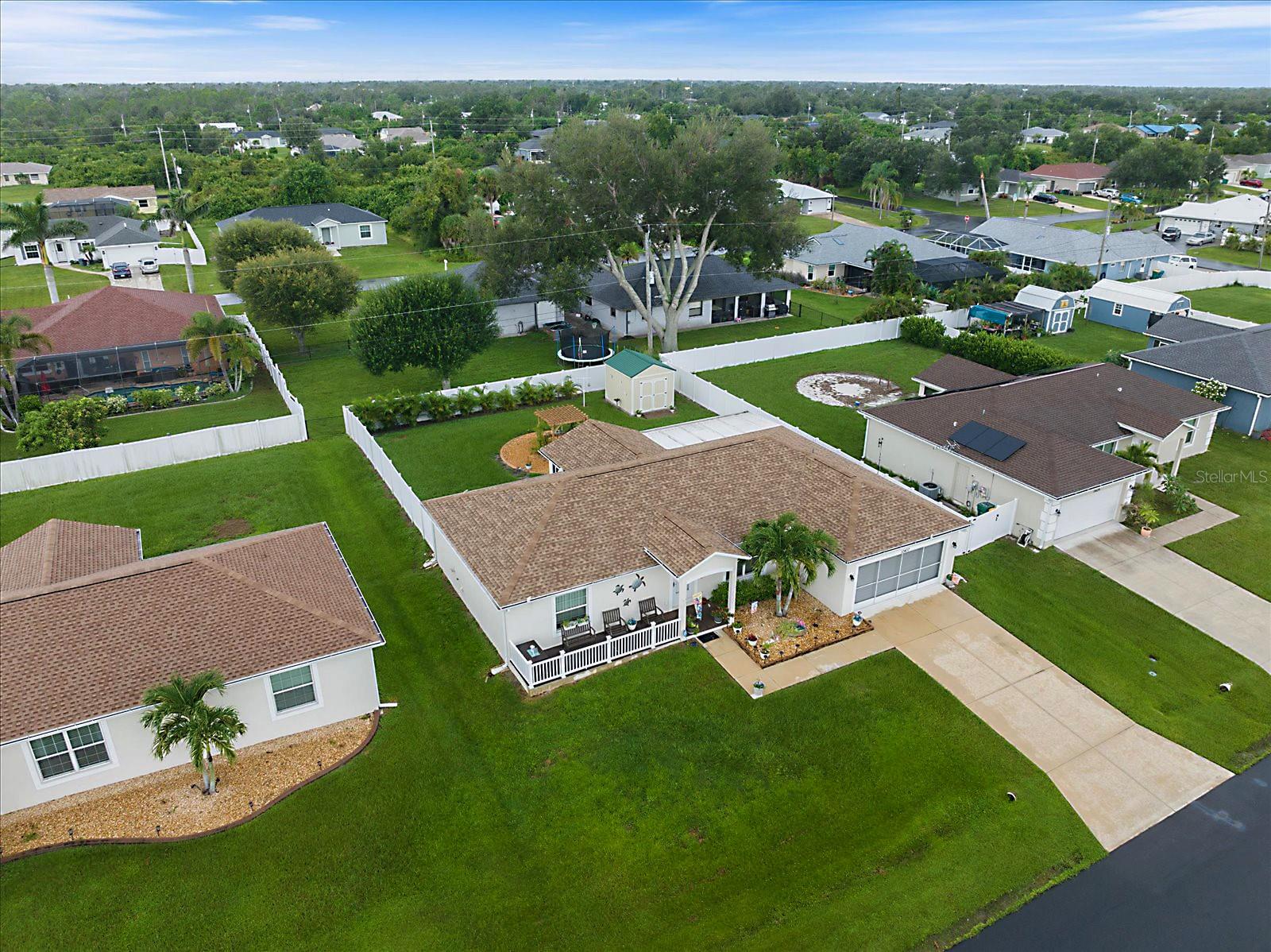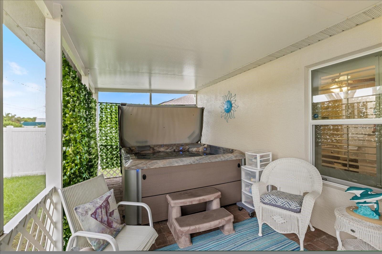 FANTASTIC 3 BEDROOM / 2 BATHROOM MOVE-IN READY FENCED HOME WITH MANY UPDATES! Home is LIKE-NEW, only 6 years old with a NEW 2022 ROOF, and NO FLOOD ZONE! ORIGINAL OWNER IS READY TO DOWNSIZE. This spacious 1600 sqft fenced home features ceramic tile throughout (NO CARPETING) and has been updated to reflect a beautiful beachy lifestyle with elegant planation shutters, and an adorable front porch has been added to enjoy a cup of coffee and say hello to your neighbors! This ideal SPLIT LAYOUT features 3 large bedrooms, 2 tiled shower bathrooms, an enormous extended lanai, an oversized 2-car garage, (with added garage slider screens), plus a backyard shed. The living room showcases vaulted ceilings with an open concept to the dining and kitchen area. Kitchen features gorgeous granite counters, breakfast for extra seating, and all stainless-steel appliances. The charming French doors lead to an enormous EXTENDED ENCLOSED LANAI overlooking a lovely landscaped FENCED BACKYARD, perfect for entertaining and grilling outdoors. This fabulous covered lanai also features a CONVEYING HOT TUB! The private backyard has been beautifully landscaped featuring an adorable pergola, pavers, eureka palms and a SHED! The master bedroom is exceptionally spacious with an en-suite tiled shower bathroom and a deep walk-in closet. The guest bedrooms have privacy on the opposite side, sharing another tiled shower bathroom. The interior laundry room offers a bonus utility sink. This home has been well-cared for and ALL the EXTRAS have been added for peace of mind! NO FLOOD ZONE, ROOF 2022, GUTTERS, HURRICANE SHUTTER PROTECTION, GENERATOR HOOK UP, SURGE PROTECTOR, SECURITY SENSOR LIGHTS, just so many more updates! This is an ideal Englewood location with Englewood Beach just 6 miles away, nearby library, medical, YMCA and much shopping! Schedule your tour today.