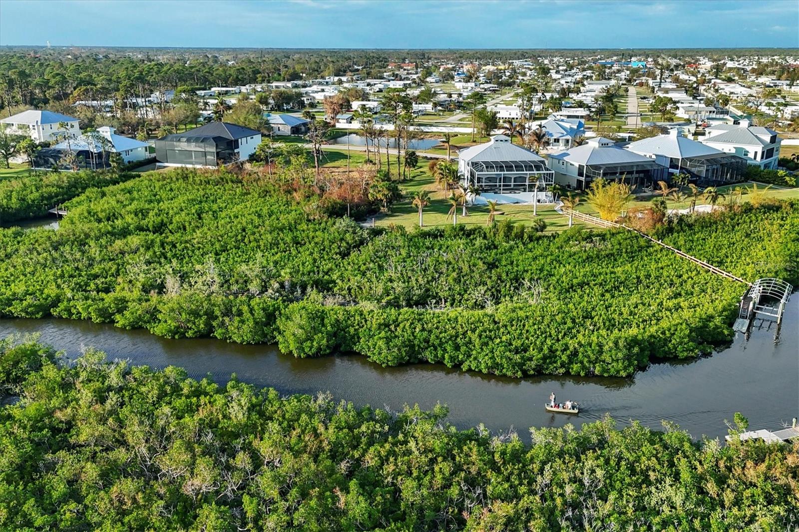 Motivated Seller! A Luxury Statement of Waterfront Living! POOL HOME! FULLY FURNISHED! Public Water and Public Sewer! GREAT ELEVATION! GATED!ONE OF THE KIND!It is located in Hidden Waters, a gated waterfront subdivision on Oyster Creek. NEW impeccable 2-Story Key West Style Beauty nestled along Oyster Creek behind the gates of the exclusive Hidden Waters Subdivision. Spacious custom 4 BR, 3½ BA home with contemporary flair built to the newest hurricane and energy efficiency standards. Solid concrete foundation with fully enclosed 2+ car garage. Elegant split entry stairs leading to spacious, wide open living area with gas fireplace and glass sliders opening to the huge 56x13 ft. A 2-story cage embraces the heated 34-foot pool, Jacuzzi & outdoor gas fire pit. Kitchen with bar island next to dining area. Also on main floor: office with French doors, powder room, large laundry and a spacious master suite with drop-dead gorgeous bath w/shower & tub, plus two custom WICs. Downstairs are 3 guest bedrooms, 2 bath & a lounge. All downstairs bedrooms with custom WIC & direct access to pool & large sundeck. Same neutral 20” tile throughout the whole house, all doors and sliders 8 ft. high, & all bedrooms with tray ceilings. There is a little beach area with Coconut Palms, a bond fire pit, & a long walk way leading through a mangrove belt to the private boat dock with a new 7000 LB boatlift. Short 3600-foot boat ride to the Intracoastal Waterway & beaches. Discover the nearby pristine Gulf beaches, where you can bask in the sun, partake in water activities, or simply relish the tranquility of the ocean. Embark on nautical adventures from the conveniently located marinas, allowing you to explore the region's captivating waterways and nearby islands. Fishing enthusiasts will delight in the world-class fishing opportunities, while golf enthusiasts can indulge in a variety of renowned golf courses.Englewood is known for its thriving shopping and dining scene, featuring a diverse range of retail centers, boutiques, and restaurants. Immerse yourself in the vibrant downtown area, boasting charming shops, art galleries, and entertainment venues. The city hosts numerous cultural events, festivals, and community gatherings throughout the year, ensuring there's always something exciting happening. Beyond the city's amenities, this vacant lot offers proximity to breathtaking nature parks and preserves. Englewood also boasts excellent educational institutions, reliable medical facilities, and convenient transportation options. The city's welcoming community and strong sense of belonging make it an ideal place to establish roots and create lasting memories. Experience the best of Florida living, with nearby beaches, golf courses, and outdoor recreational activities just a short drive away. Don't miss out on the chance to own this extraordinary home.