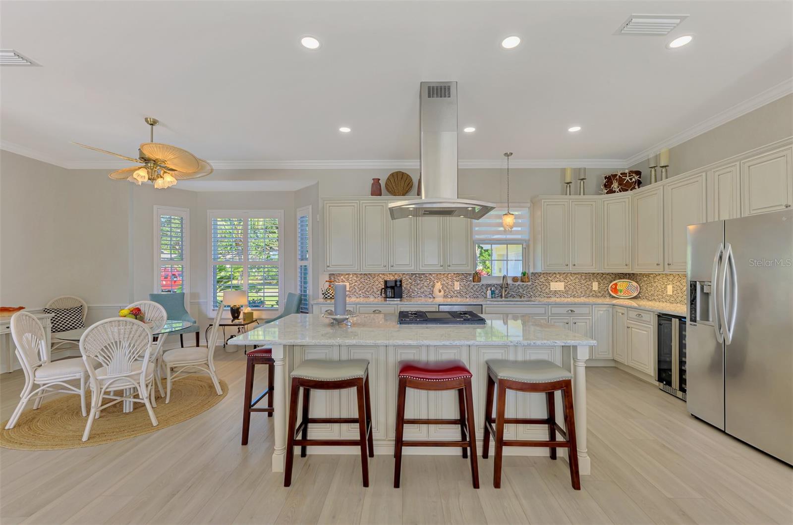 Offering one of the best golf course views in the gated community of Boca Royale, this lovely 3-bedroom, 2 1/2 bathroom with oversized 2-car garage provides everything you could imagine for living the country club lifestyle in Florida. You are greeted by a new Tremron brick paver driveway as you arrive and then a marble entry. Upon entering this spacious custom built home you will notice the high ceilings, sliding glass doors and an abundance of windows, filling this south-facing home with sunlight providing an open and airy setting. Greeting you as you step into the foyer is a captivating view across the open renovated living space to the pool and golf course behind. The home features four sets of pocketing sliding glass doors which open to the oversized 11x38 covered lanai area, creating a seamless flow from indoor to outdoor living. The recently resurfaced, oversized heated pool is approximately 34ft in length and includes an attached spa and brand new Built Right pool heater. Recent kitchen upgrades include wood cabinets, kitchen island, quartz countertops, including large kitchen island and stainless appliances. The primary bedroom suite includes two separate walk-in closets and immediate access to the covered lanai and pool area through the sliding glass doors. The ensuite bathroom includes a double sink vanity and a new tiled fully curbless walk-in shower. Two additional bedrooms and a fully renovated bathroom, with double sinks and a tub are situated on the opposite end of the home, offering privacy for other residents or guests. A lovely, new powder bath completes the picture for endless entertaining. There is a dedicated laundry room with Samsung Active Waterjet washing machine and a Samsung Moister Sensing dryer, vanity with stainless utility sink, drying racks and rail for hanging dry clothing. Plus, a Bodega 150 bottle 2-zone wine cooler with two refrigeration drawers is included. Other notable features include an oversized 2-car garage with an electric vehicle charging station, mudroom, NEW TRANE heat pump HVAC SYSTEM (2025), NEW POOL HEATER (2025), Epoxy garage floor (2025), pool cage (2018), screens replaced (2022), AC ductwork (2022). This residence has plantation shutters over new Renewal by Anderson windows in 2024 and is hurricane-ready with motorized storm shutters and storm-rated doors for both garage door and person door in rear. The 2019 EZ-GO RXY golf cart with sound bar, convertible rear 2-person seat, approved for Boca Royale golf course is included. Located in the Legacy section of Boca Royale, this home has a phenomenal golf course view, including lakes, and the 18th green and 17th tee of the 18-hole fully Championship course with fully renovated course and clubhouse. Upon entering the community, you'll find winding roads, dedicated fenced dog parks, tropical preserves with stately oak trees, mature landscaping, and extensive shaded areas for walking, running or biking. Residents enjoy the community's semi-private golf course, fitness center, clay tennis and pickle ball courts, clubhouse, restaurant, social activities and more. Membership to the community resort pool is also available to this home. Minutes from beautiful Gulf Coast beaches, numerous golf courses, restaurants, shopping, parks and outdoor recreation opportunities. Schedule a showing today!
