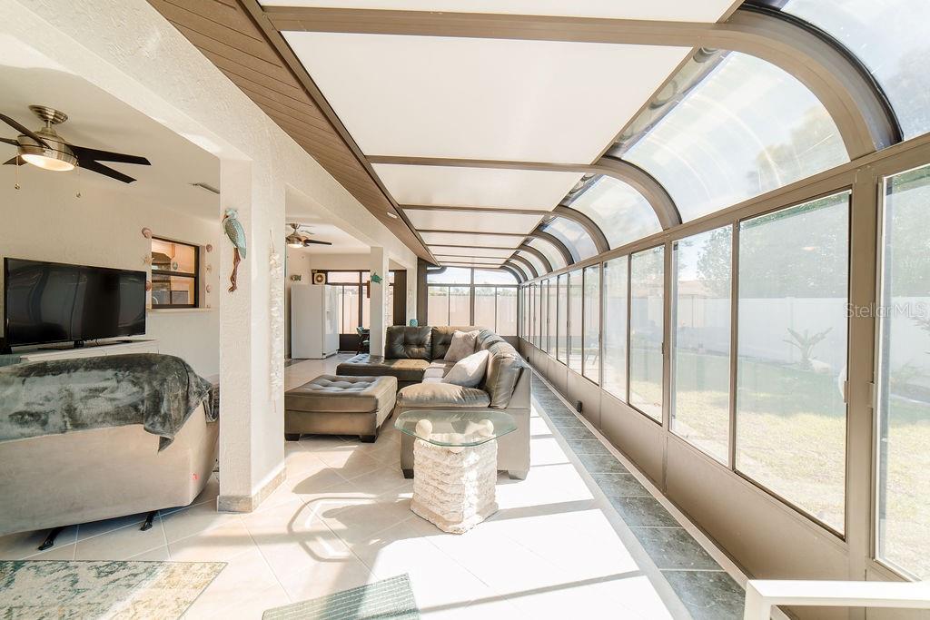 Welcome to this beautifully maintained 2 bedroom, 2-and-a-half bathroom home offering 2,126 SF of living space and an inviting open floorplan, perfectly situated in Flood Zone X with NO HOA. A new roof (2023), along with an HVAC system and water heater less than 5 years old, provide peace of mind and long-term value. The exterior showcases attractive rock landscaping surrounding the entire home, enhancing curb appeal and low-maintenance living. Including a HURRICANE strength garage door, inside you’ll find a spacious primary suite with a LARGE walk-in closet, an ADT security system, and a utility room complete with a wash tub for added convenience. One of the standout features is the HUGE Florida room, lined with curved windows reaching toward the sky—all operable with screens to invite in refreshing breezes. This space also offers direct access to a convenient half-bath, making it ideal for entertaining. Additional highlights include an enclosed screened front porch, accordion-style hurricane shutters, and a fully fenced private backyard with a storage shed and outdoor shower. The 2-car garage is complemented by extra parking space ideal for a boat or RV. Located just minutes from Ann & Chuck Dever Regional Park pool, and close to the charm of Dearborn Street, local beaches, golf courses, shopping, and dining, this home offers the best of Florida living—privacy, convenience, and lifestyle all in one exceptional package.