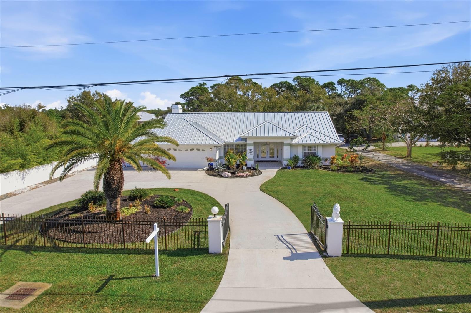 Experience the ultimate Florida lifestyle at this stunning estate located at 2123 Manasota Beach Road in Englewood. This exceptional property is perfectly situated just 0.7 miles from the pristine sands of Manasota Beach and the natural beauty of the Lemon Bay boat ramp. Nestled on nearly an acre of lush, mature landscaping, this home offers 3,464 sq. ft. of thoughtfully designed interior living space between the Main Home and the Guest Suite. The Estate features 5 spacious bedrooms and 4 full bathrooms, providing plenty of room for family and guests. A car enthusiast's dream, the 3-car attached garage and the 3 car oversized detached garage are both fully climate-controlled. The detached garage boasts a new humidity-controlled A/C and includes a built-in workshop and full bath. Above the garage enjoy a spacious 2 bed, 2 bath living space with a fully equipped kitchen, living space and indoor laundry room. Relax by the heated pool and spa on those days you do not want to make the short trek to Manasota Beach. Guests will enjoy a private entrance to the pool area in this split floor plan home. Take your boat, kayaks or SUPs down to the boat ramp and enjoy Gulf Coast living at finest. Have a chilly evening? Sit around the Gas fireplace in the charming living room while entertaining in the open kitchen. The 0.92-acre lot is fully fenced for privacy and features a charming gazebo with electricity, a storage shed, new and mature foliage. The Guest house has its own entrance and gate and the main home has two gates and a turn around driveway. Additionally, the property features a dedicated RV Pad with electricity and pump out. Peace of mind with a new roof (4 years), new pool heater (4 years), new exterior painting, new gutters, two irrigation systems, new electrical panel and so much more. You have to see the Feature Sheet! This is more than a home, it is a private compound. With its rare 5-bedroom layout and extensive climate-controlled 6 garage spaces, it is one of the most versatile properties currently available in the Manasota Beach corridor. Call me today and do not wait to see this home for your very best Gulf Coast Lifestyle!