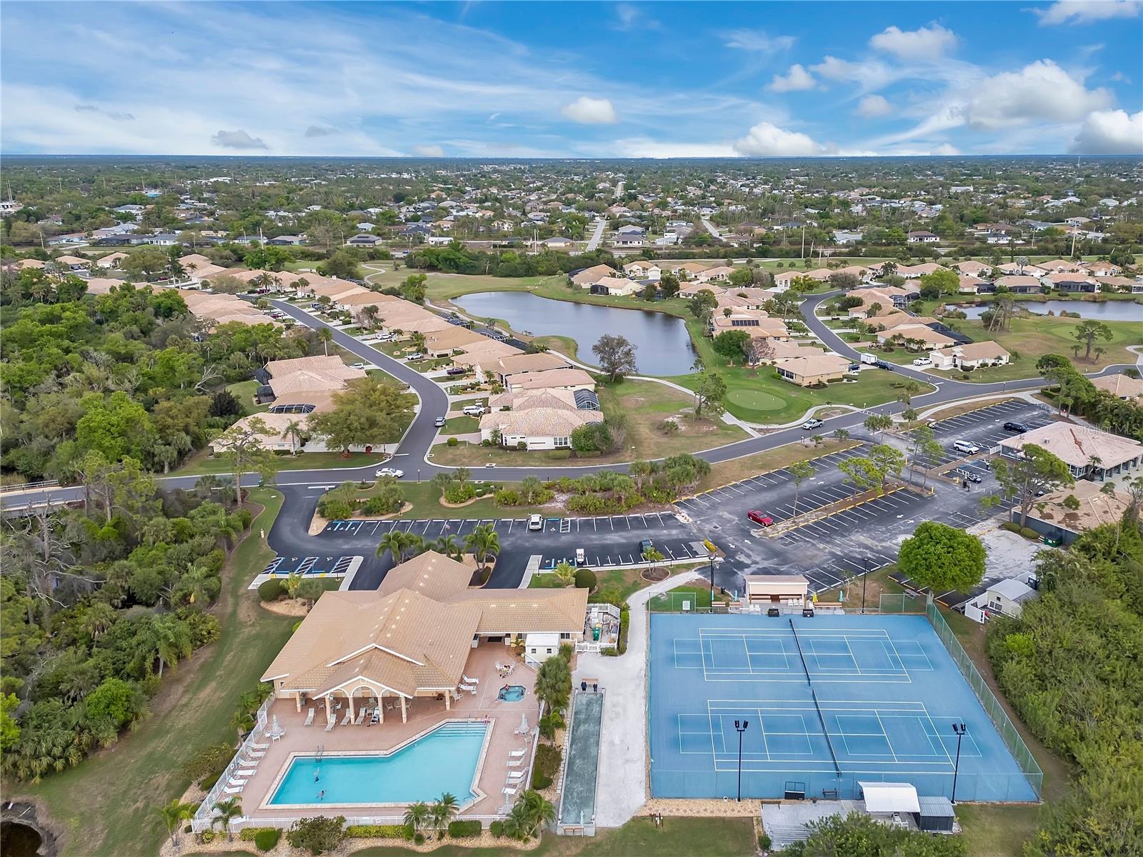 Welcome to your private Florida oasis in the highly sought-after gated community of Oyster Creek! This beautifully updated 3-bedroom, 3-bathroom pool home offers over 2,100 square feet of living space, thoughtfully designed for both comfort and entertaining. Enjoy peace of mind with major upgrades already completed, including a new tile roof (2023), newer HVAC (2020), water heater (2022), and updated pool equipment (heater 2024, pump 2023). Inside, the home has been refreshed with luxury vinyl plank flooring, quartz countertops and modern updates throughout. Enjoy privacy with this homes rare courtyard-style layout, where your private heated pool and spa are tucked inside the home, creating a secluded retreat perfect for relaxing or hosting guests, along with an outdoor bar set-up for hosting. Adding even more flexibility, the property includes a detached 1 bed / 1 bath guest suite - ideal for visitors, multi-generational living, or potential rental income. Situated on a quiet cul-de-sac, the property also offers golf course views, allowing you to enjoy serene green space right from your backyard. Oyster Creek is a maintenance-free, gated golf course community with optional membership, a manned guard gate, and golf cart-friendly streets. Located just minutes from shopping, dining, medical facilities, and the beautiful beaches of Manasota Key, this home offers the perfect blend of privacy, convenience, and lifestyle. This is a rare opportunity to own one of the most unique floor plans in the neighborhood- don’t miss it!