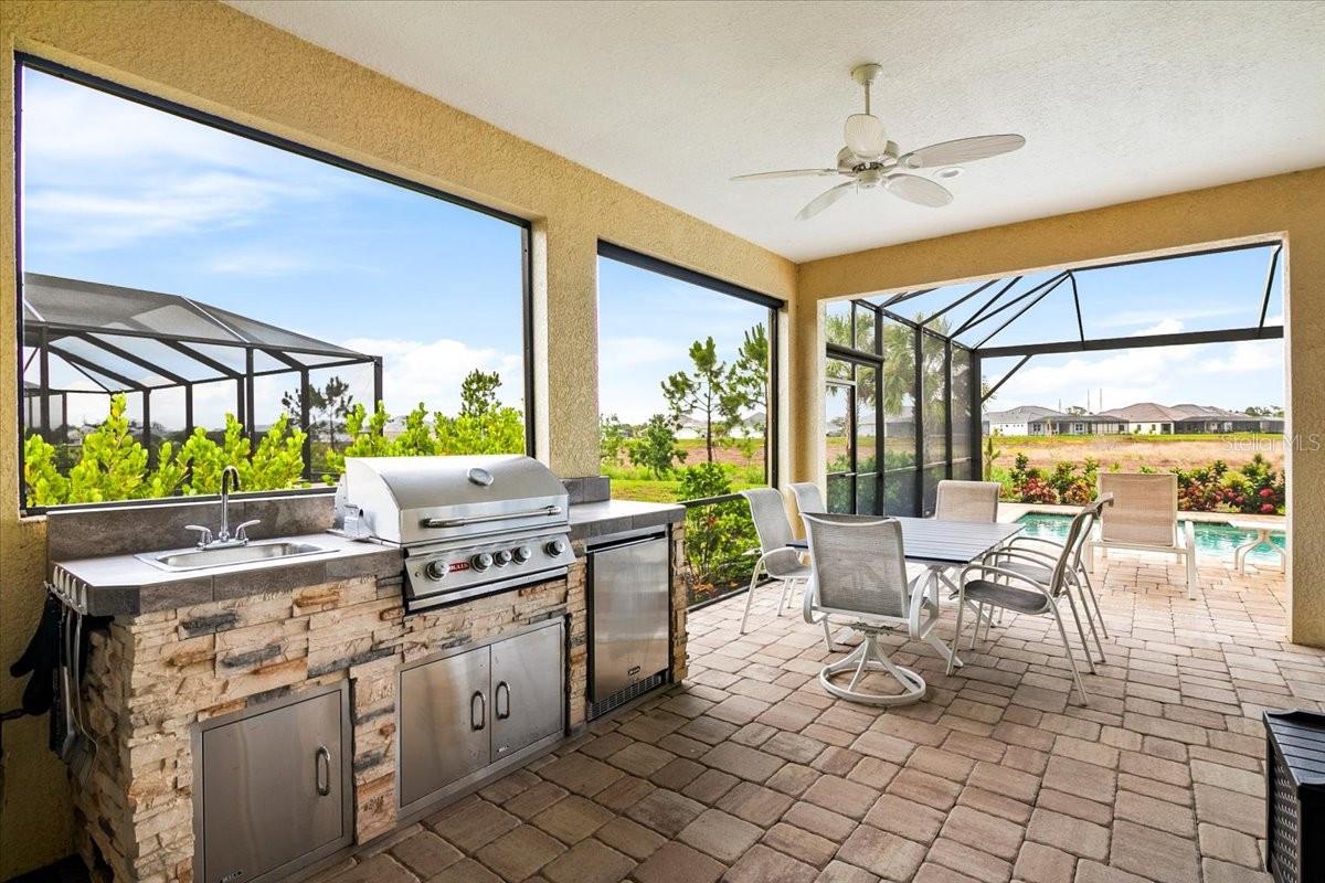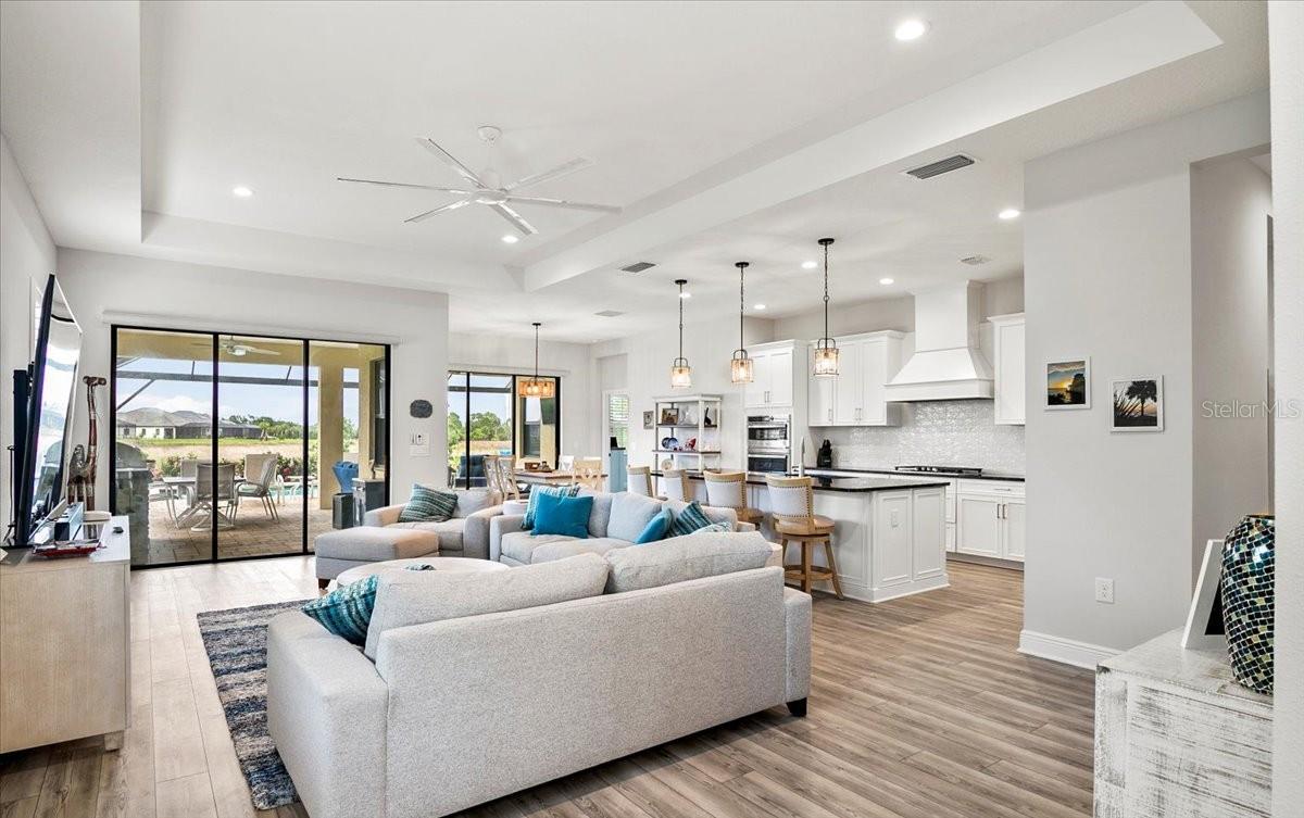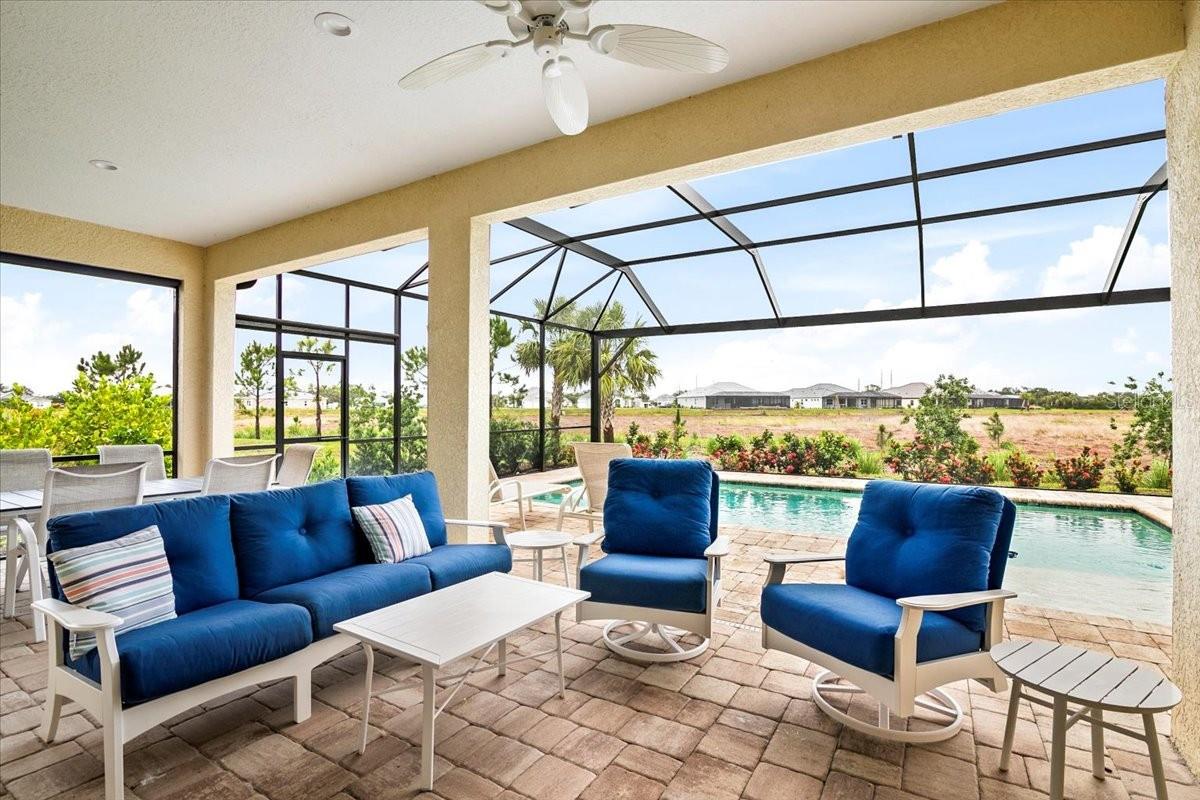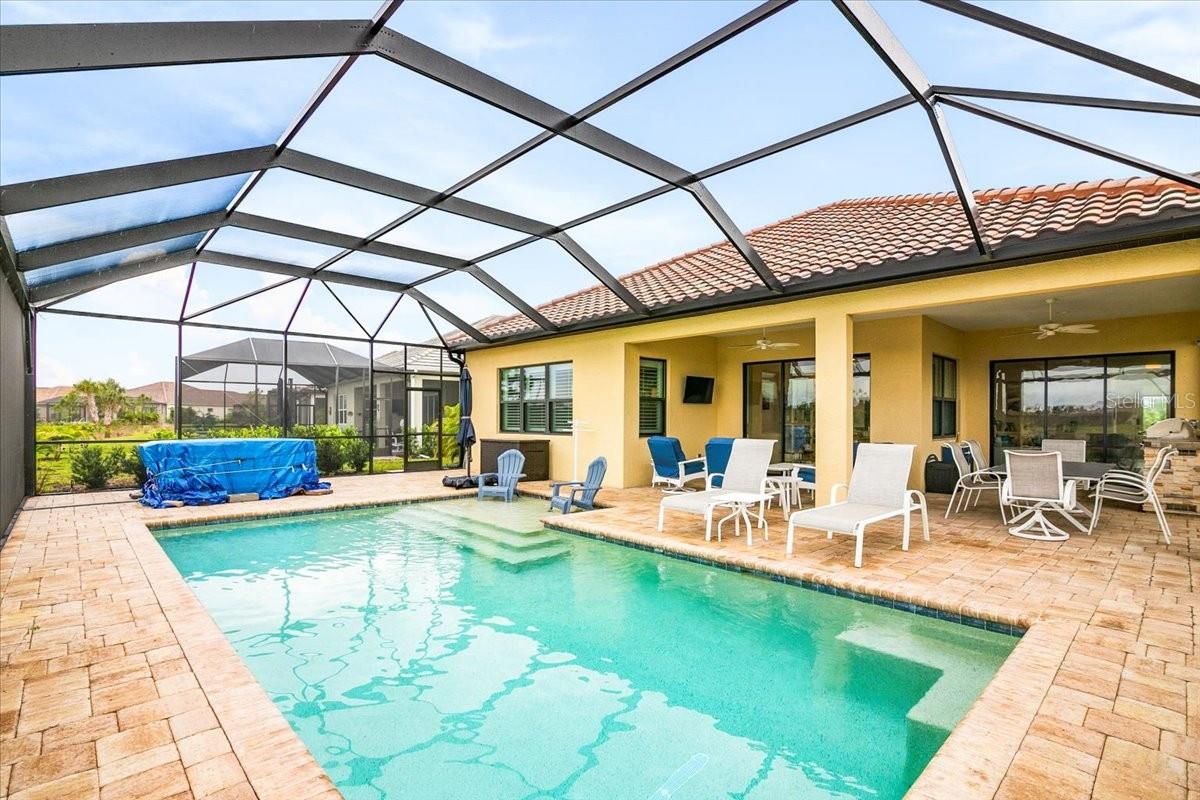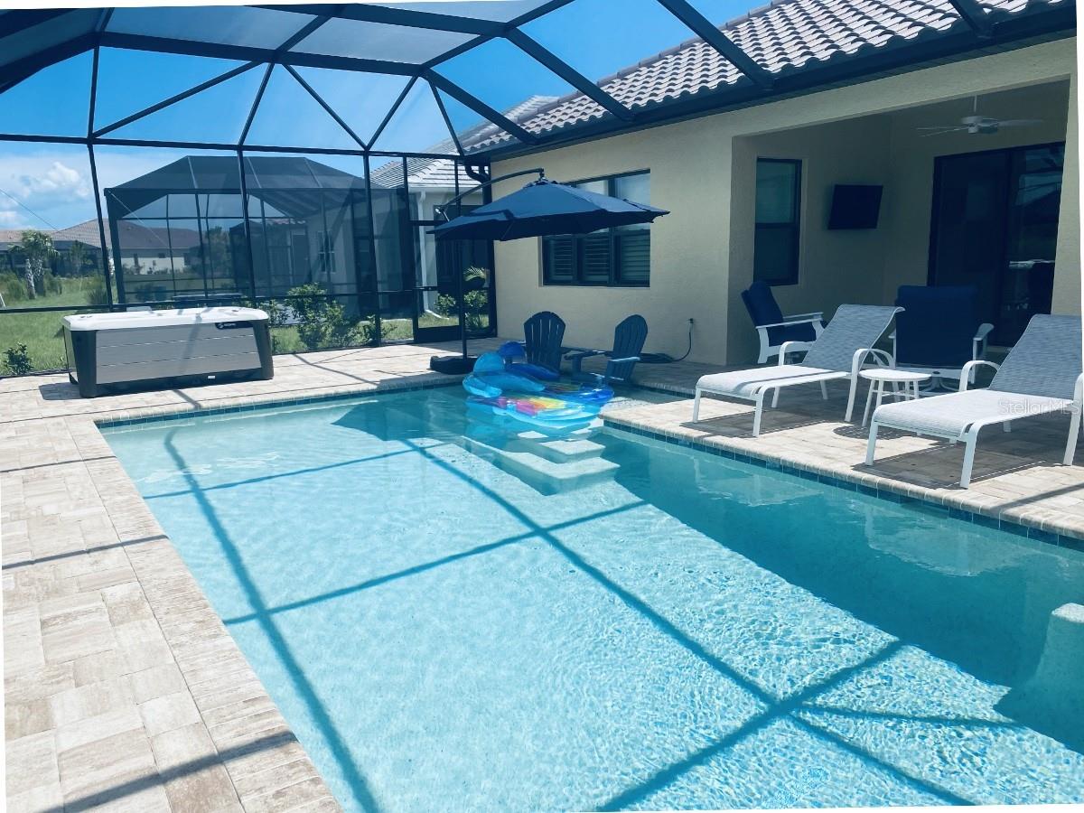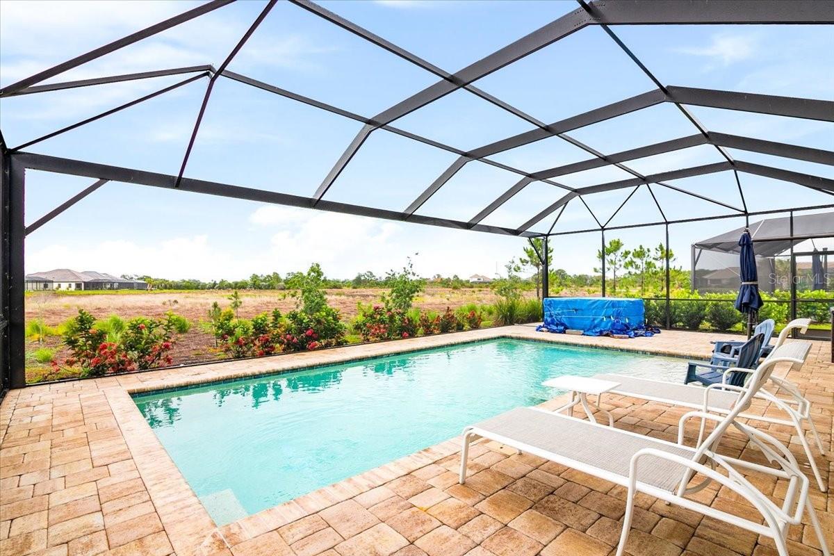 Welcome to this stunning property located at 26628 Irwin Dr, Englewood, FL. This beautiful home was built in 2022 and boasts a modern design with high-end finishes throughout. This Single Family home features 2 full bathrooms and 1 half bathroom (2.5 bathrooms), providing ample space for a growing family or for those who love to entertain guests. With a total finished area of 2,427 sq.ft., there is plenty of room to spread out and make this house your own. Situated on a spacious lot size of 8,952 sq.ft., this property offers a generous outdoor space for enjoying the Florida sunshine. The landscaping has been meticulously maintained, adding to the overall curb appeal of the home. Step inside to discover a bright and open floor plan that is perfect for everyday living. The kitchen is a chef's dream with stainless steel appliances, gas range, microwave and convection oven, granite countertops, and plenty of cabinet space for storage, and a walk-in pantry. The living room is spacious and inviting, making it the ideal spot to relax and unwind after a long day. The master bedroom is a true retreat with a walk-in closet and a luxurious en-suite bathroom featuring dual vanities, and a separate shower. The additional bedrooms are generously sized, one has a walk-in closet, and the other has built-in closet space. There is plenty of closet space for all your storage needs. Just inside the spacious front entry is a large office/den/media room with a street view window. The laundry room, just inside the house close to garage access, includes a washer/dryer, a sink and cabinet, and extra cabinets for storage and a rack for hanging clothes. There is plenty of space for ironing, storage, and other items. Outside, you will find a large covered lanai with a pool, above ground HotSpring spa, and outdoor kitchen. Enjoy morning breakfast or coffee watching the wall mounted TV under the covered lanai. You will have beautiful views out the 45 ft. panoramic lanai screen with a conservation area backdrop. Located in the desirable Englewood area, this home is close to schools, shopping, dining, and the beautiful beaches of the Gulf Coast. Don't miss your chance to make this stunning property your new forever home – schedule a showing today!. The home was built in 2022 and has many extras including: plantation shutters, epoxy garage floor, above ground spa, privacy landscaping close to the lanai, inside roll down electric shutters on the two sliding windows, extra roll down shutters located on both sides of the lanai outside, outdoor kitchen, panoramic 45 ft. front lanai screen, rare 24 ft. length 3 car garage, fans throughout house and lanai, security cams, and luxury vinyl floors.