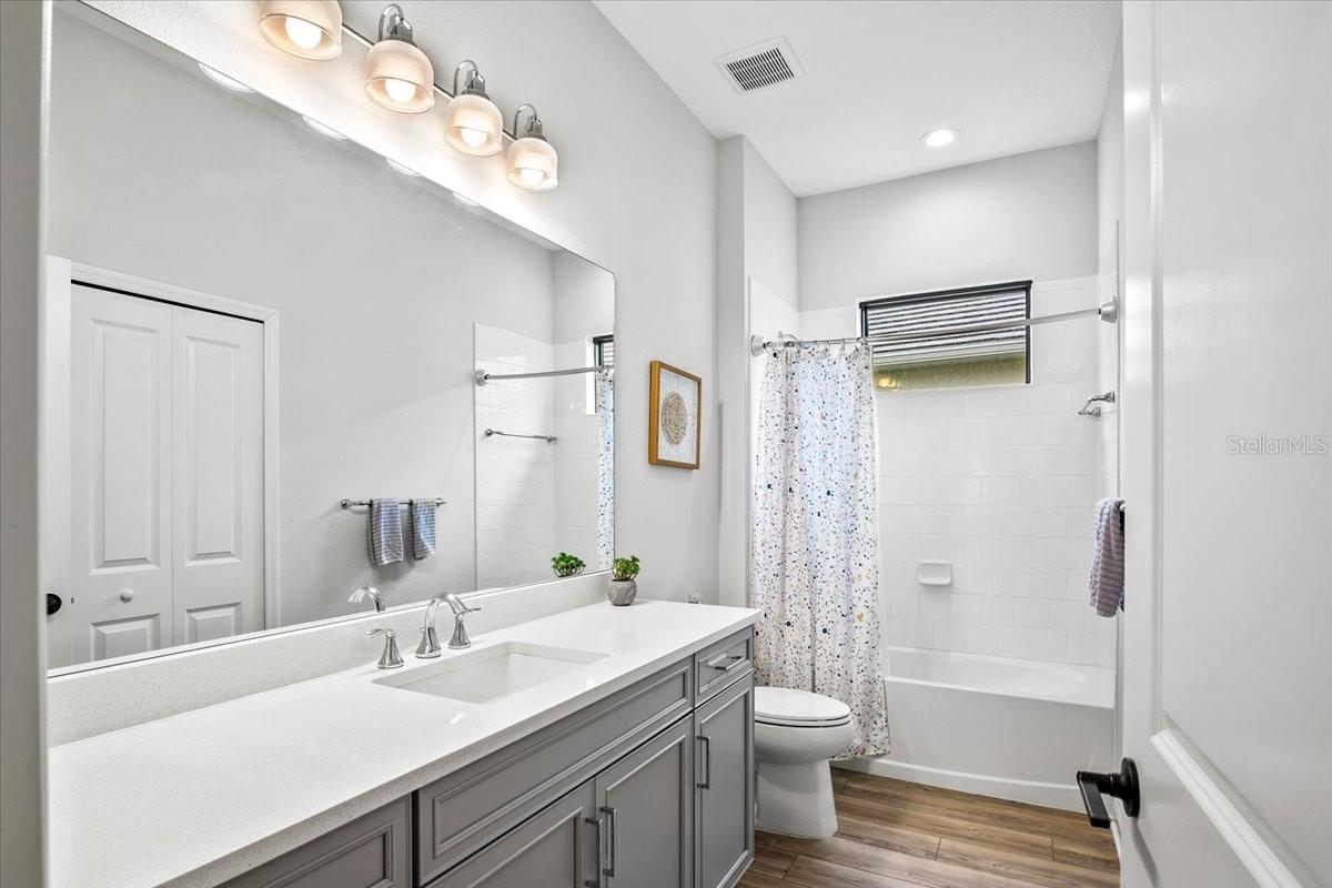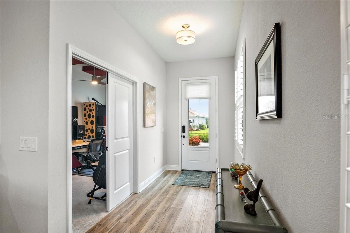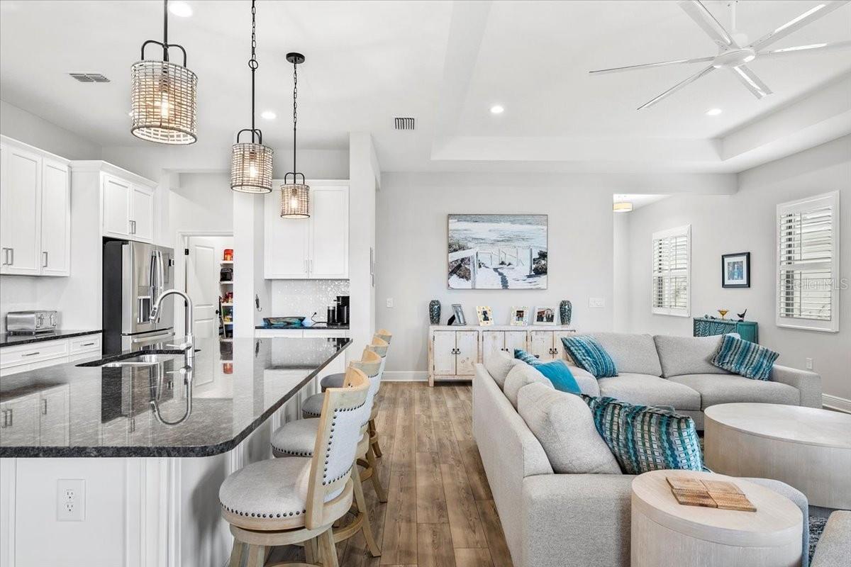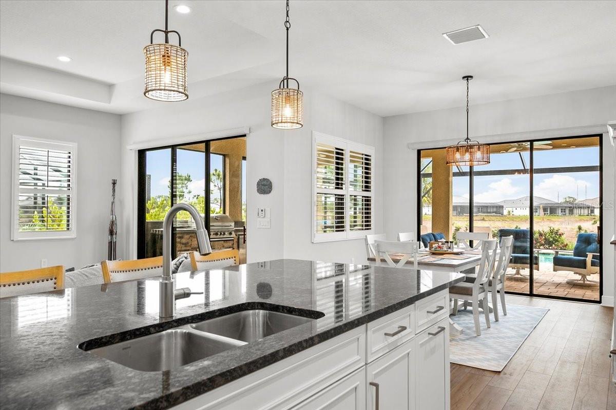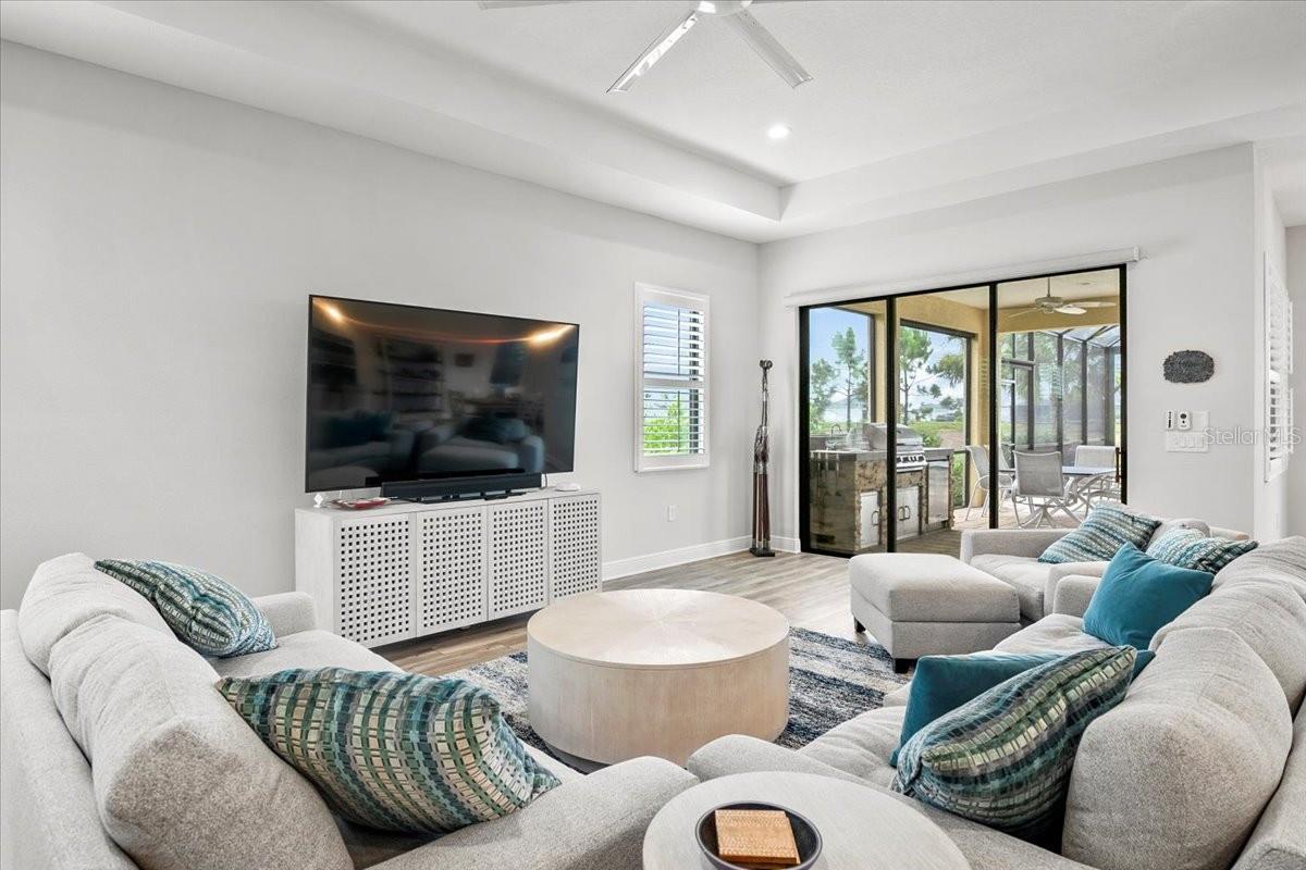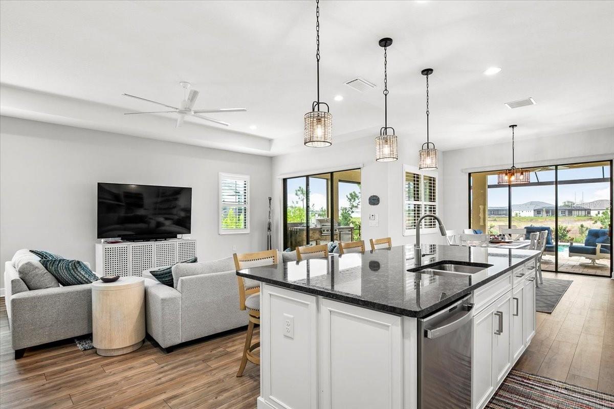 Welcome to this stunning property located at 26628 Irwin Dr, Englewood, FL. This beautiful home was built in 2022 and boasts a modern design with high-end finishes throughout. This Single Family home features 2 full bathrooms and 1 half bathroom (2.5 bathrooms), providing ample space for a growing family or for those who love to entertain guests. With a total finished area of 2,427 sq.ft., there is plenty of room to spread out and make this house your own. Situated on a spacious lot size of 8,952 sq.ft., this property offers a generous outdoor space for enjoying the Florida sunshine. The landscaping has been meticulously maintained, adding to the overall curb appeal of the home. Step inside to discover a bright and open floor plan that is perfect for everyday living. The kitchen is a chef's dream with stainless steel appliances, gas range, microwave and convection oven, granite countertops, and plenty of cabinet space for storage, and a walk-in pantry. The living room is spacious and inviting, making it the ideal spot to relax and unwind after a long day. The master bedroom is a true retreat with a walk-in closet and a luxurious en-suite bathroom featuring dual vanities, and a separate shower. The additional bedrooms are generously sized, one has a walk-in closet, and the other has built-in closet space. There is plenty of closet space for all your storage needs. Just inside the spacious front entry is a large office/den/media room with a street view window. The laundry room, just inside the house close to garage access, includes a washer/dryer, a sink and cabinet, and extra cabinets for storage and a rack for hanging clothes. There is plenty of space for ironing, storage, and other items. Outside, you will find a large covered lanai with a pool, above ground HotSpring spa, and outdoor kitchen. Enjoy morning breakfast or coffee watching the wall mounted TV under the covered lanai. You will have beautiful views out the 45 ft. panoramic lanai screen with a conservation area backdrop. Located in the desirable Englewood area, this home is close to schools, shopping, dining, and the beautiful beaches of the Gulf Coast. Don't miss your chance to make this stunning property your new forever home – schedule a showing today!. The home was built in 2022 and has many extras including: plantation shutters, epoxy garage floor, above ground spa, privacy landscaping close to the lanai, inside roll down electric shutters on the two sliding windows, extra roll down shutters located on both sides of the lanai outside, outdoor kitchen, panoramic 45 ft. front lanai screen, rare 24 ft. length 3 car garage, fans throughout house and lanai, security cams, and luxury vinyl floors.